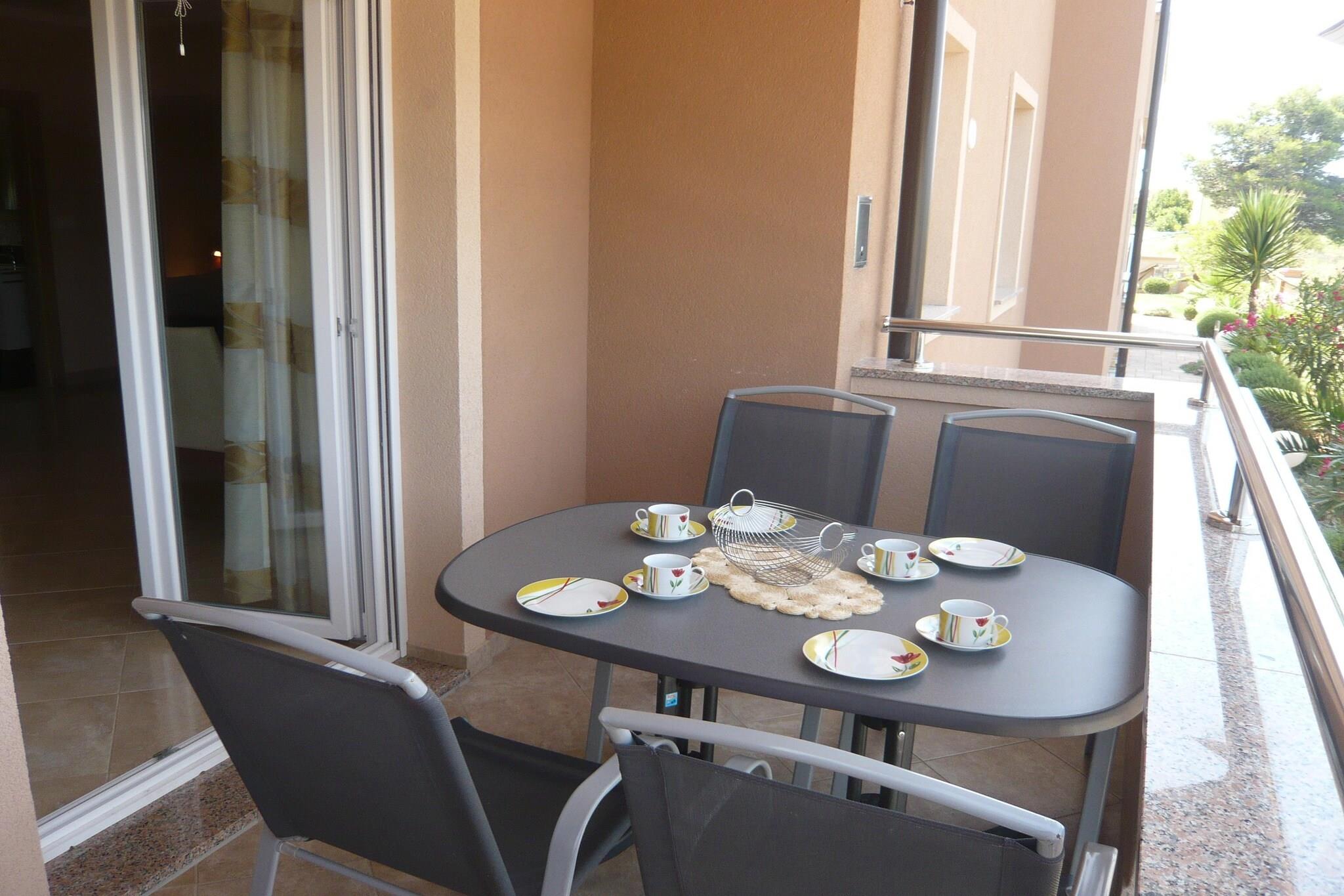 Smukt, velholdt privat hus med 2 lejligheder i en fremragende beliggenhed meget tæt på den flade sand- og stenstrand i det populære feriested Zaton nær Nin. De to lejligheder i stueetagen og på øverste etage har hver 2 soveværelser, stue med åbent køkken og en skøn terrasse med fortelt og havudsigt. Det velkendte Zaton Holiday Resort ligger i nærheden og tilbyder også gæster uden for feriestedet (mod betaling) mange sports-, fritids- og underholdningsmuligheder. Et vandsportscenter med dykkerskole, tennisbaner, en lille golfbane og minigolf, trampoliner og rutsjebaner er en del af tilbuddet samt et par restauranter og barer. Du kan gå til alt vigtigt på få minutter fra ferielejligheden: strand, indkøb, caféer, vandre- og cykelstier. Den historiske lille by Nin ligger 2 km væk, og der er også nogle større supermarkeder til shopping. Centrum af det nordlige Dalmatien, havnebyen Zadar og lufthavnen kan nås på få minutter i bil fra Zaton. Højdepunkter inkluderet: energiomkostninger, sengelinned, håndklæder, WiFi, aircondition, parkering på ejendommen, turistskat. Aktiviteter i nærheden: bådture til Kornati Island National Park, vandsport såsom dykning og kitesurfing, tennisbaner med tennisskole, cykling og meget mere. Der er et stort udvalg af overvejende flade sand- og stenstrande i området omkring Nin, hvor du kan tilbringe dine badedage varieret. Mobilitet: ikke egnet til personer med begrænset mobilitet.