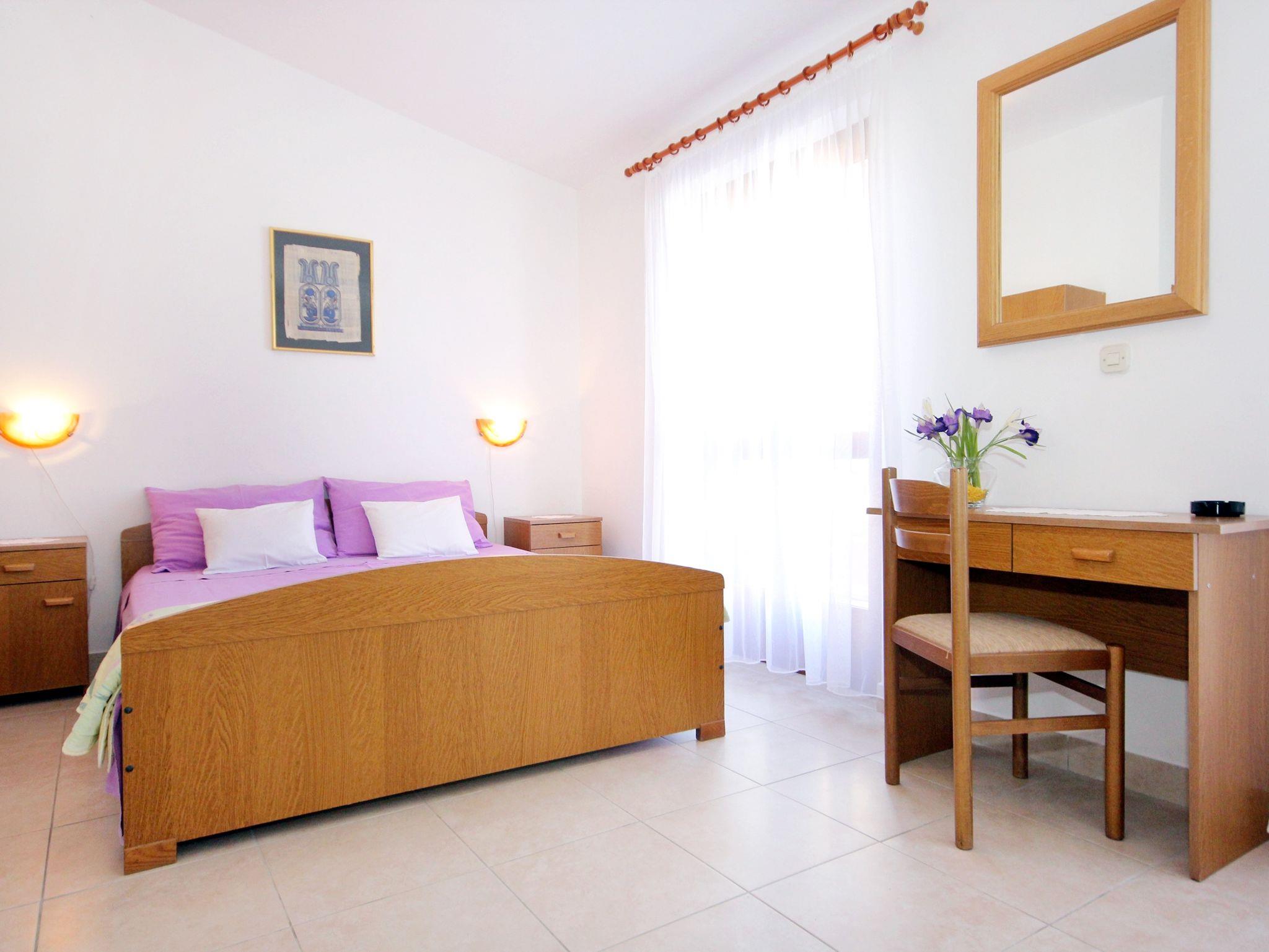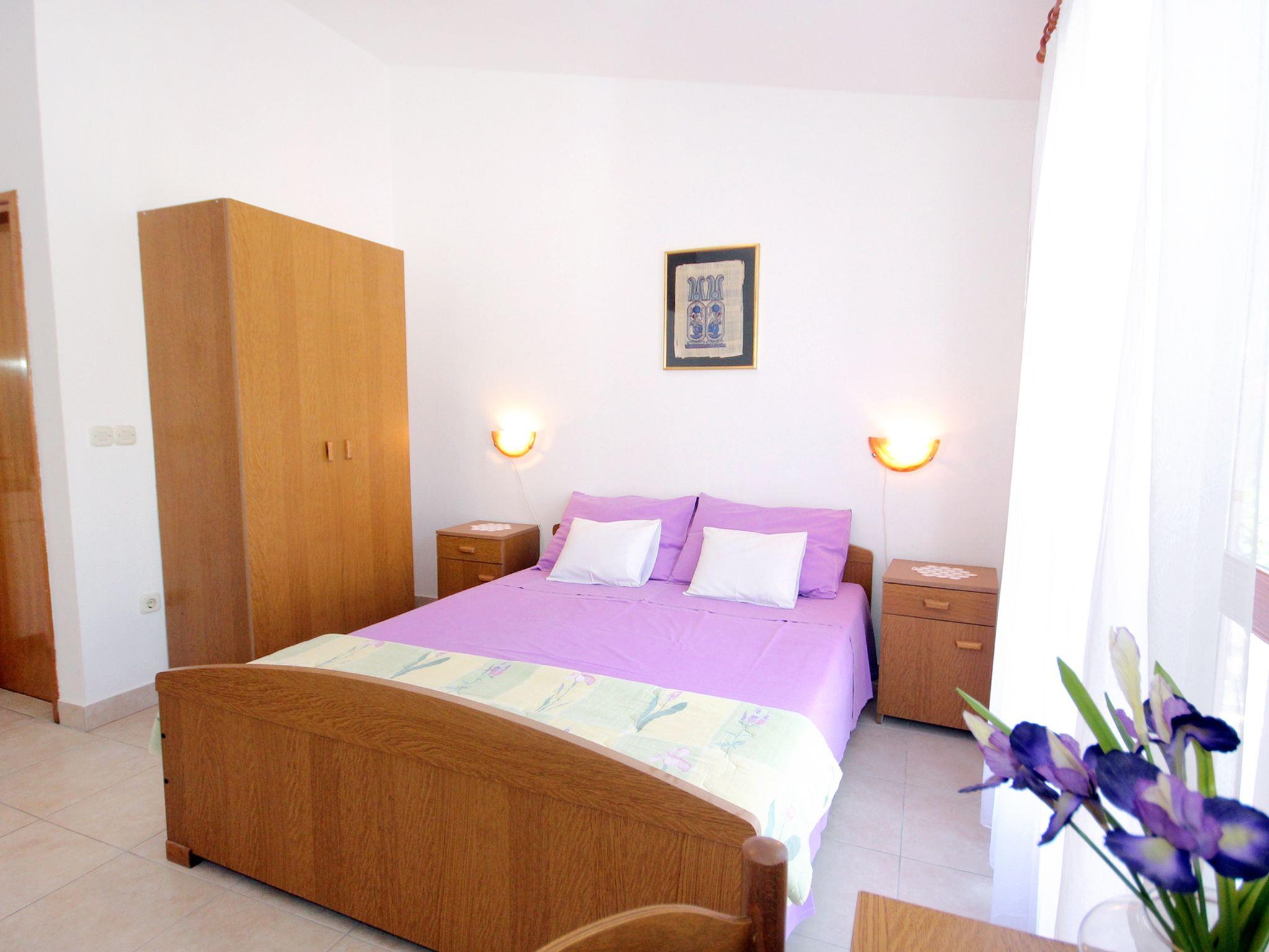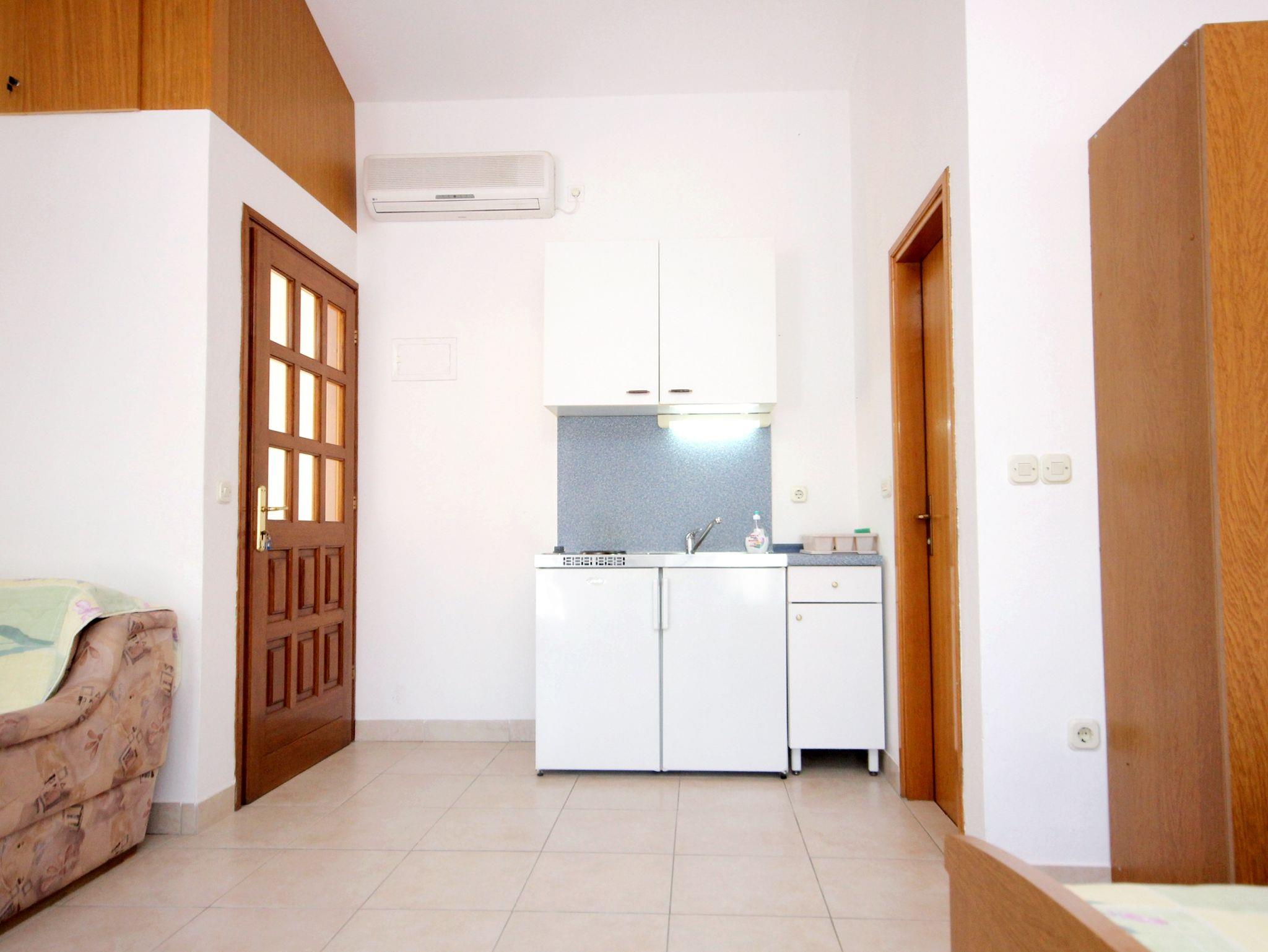Studio bietet Platz für 3 Gäste. Die Betten sind in Schlafzimmern, die es 1 gibt, innerhalb einer Gesamtfläche von 23m2, angeordnet. Die Gäste haben eine eigene Terrasse zur Verfügung, auf der sie in warmen Sommernächten genießen können. Das Studio-Apartment bietet Meerblick. Es ist erlaubt, Speisen auf dem Gemeinschafts-Grill vorzubereiten. IM PREIS INBEGRIFFEN: Kurtaxe, Endreinigung, Klimatisierung, Parkplatz, Internet, Bootsanlegeplatz, Zusatzbett. VERBINDLICHE ZUSÄTZLICHE KOSTEN: Aufzahlung für Kurzaufenthalte (prozentualer Zuschlag pro Nächtigungsanzahl: 30% - 1, 20% - 2, 10% - 3). Die Verfügbarkeit zusätzlicher Dienstleistungen in Ihrem reservierten Termin und die Preise derselben (falls nicht aufgeführt) müssen im Voraus überprüft werden. Zusätzliche Dienstleistungen die in der Zahlungsaufforderung nicht aufgeführt sind werden direkt beim Vermieter bezahlt, angenommen der Gast nutzt auch diese.