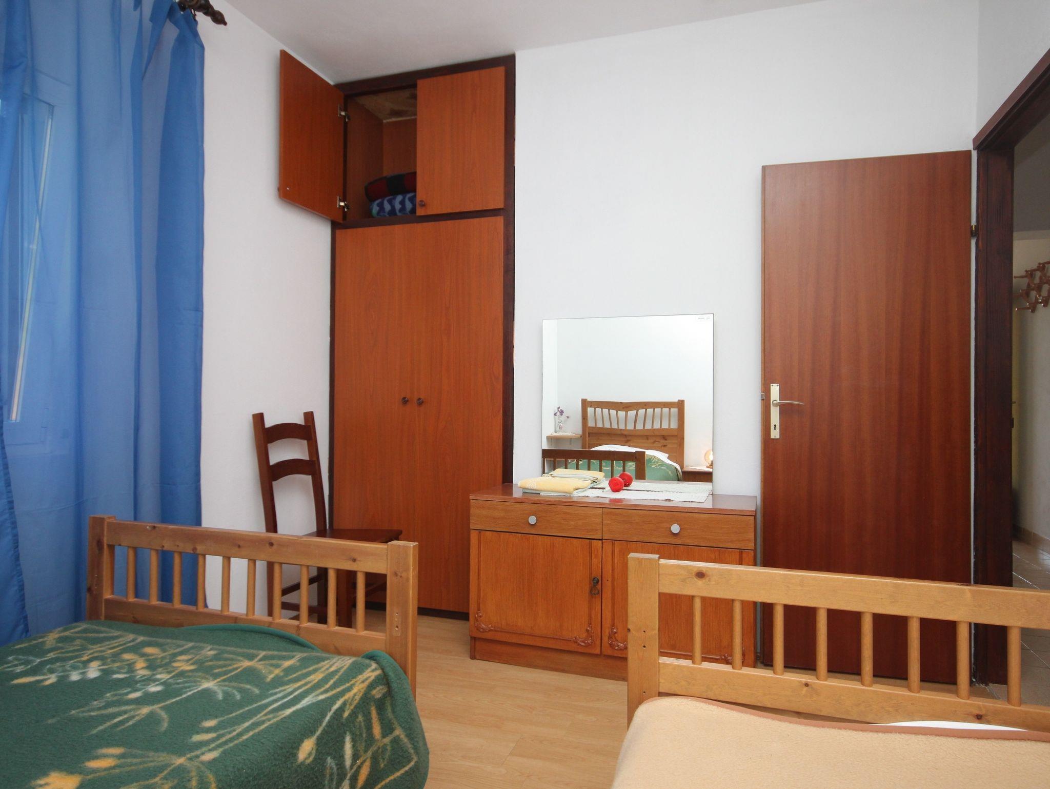 Ferienwohnung bietet Platz für 5 Gäste. Die Betten sind in Schlafzimmern, die es 2 gibt, innerhalb einer Gesamtfläche von 46m2, angeordnet. Die Gäste haben eine eigene Terrasse zur Verfügung, auf der sie in warmen Sommernächten genießen können. Das Apartment bietet Meerblick. Es ist erlaubt, Speisen auf dem Gemeinschafts-Grill vorzubereiten. In der Unterkunftseinheit besteht die Möglichkeit des Mitbringens von Haustieren gegen Aufpreis. IM PREIS INBEGRIFFEN: Kurtaxe, Endreinigung, Klimatisierung, Parkplatz, Internet, Bootsanlegeplatz, Bügeleisen, tragbarer Grill. VERBINDLICHE ZUSÄTZLICHE KOSTEN: Aufzahlung für Kurzaufenthalte (prozentualer Zuschlag pro Nächtigungsanzahl: 30% - 1, 20% - 2, 10% - 3). UNVERBINDLICHE ZUSÄTZLICHE KOSTEN: Haustiere (5,00 € pro Nacht). Die Verfügbarkeit zusätzlicher Dienstleistungen in Ihrem reservierten Termin und die Preise derselben (falls nicht aufgeführt) müssen im Voraus überprüft werden. Zusätzliche Dienstleistungen die in der Zahlungsaufforderung nicht aufgeführt sind werden direkt beim Vermieter bezahlt, angenommen der Gast nutzt auch diese.