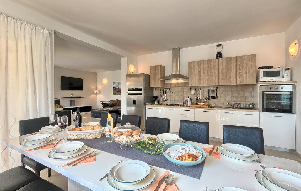 Dette rummelige og moderne feriehus ligger i et roligt område og er ideelt til en ferie med flere familier eller en gruppe venner. Huset strækker sig over to etager, som er forbundet med indvendige trapper. Med 5 soveværelser og 6 badeværelser er der garanteret ikke pladsproblemer. Jeres 2 kæledyr er også velkomne.