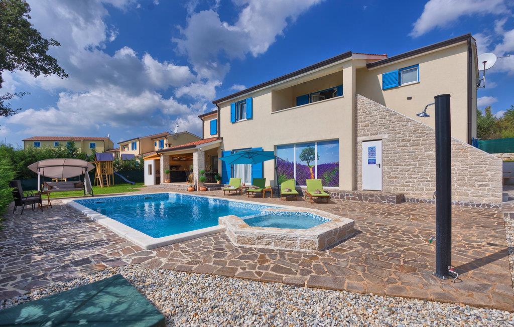 Udenfor er der en stor pool med en lille børnepool og bænk, hvor I kan tilbringe mange timer i vandet. Det bliver garanteret ikke kedeligt på den indhegnede ejendom med mange børne- og sportsfaciliteter: gynger, klatrestativer, rutsjebaner, trampoliner, bordtennis osv. står til jeres rådighed her. Efter en spændende feriedag med masser af aktiviteter kan I afslutte dagen på den overdækkede terrasse med grill og udendørs pejs.