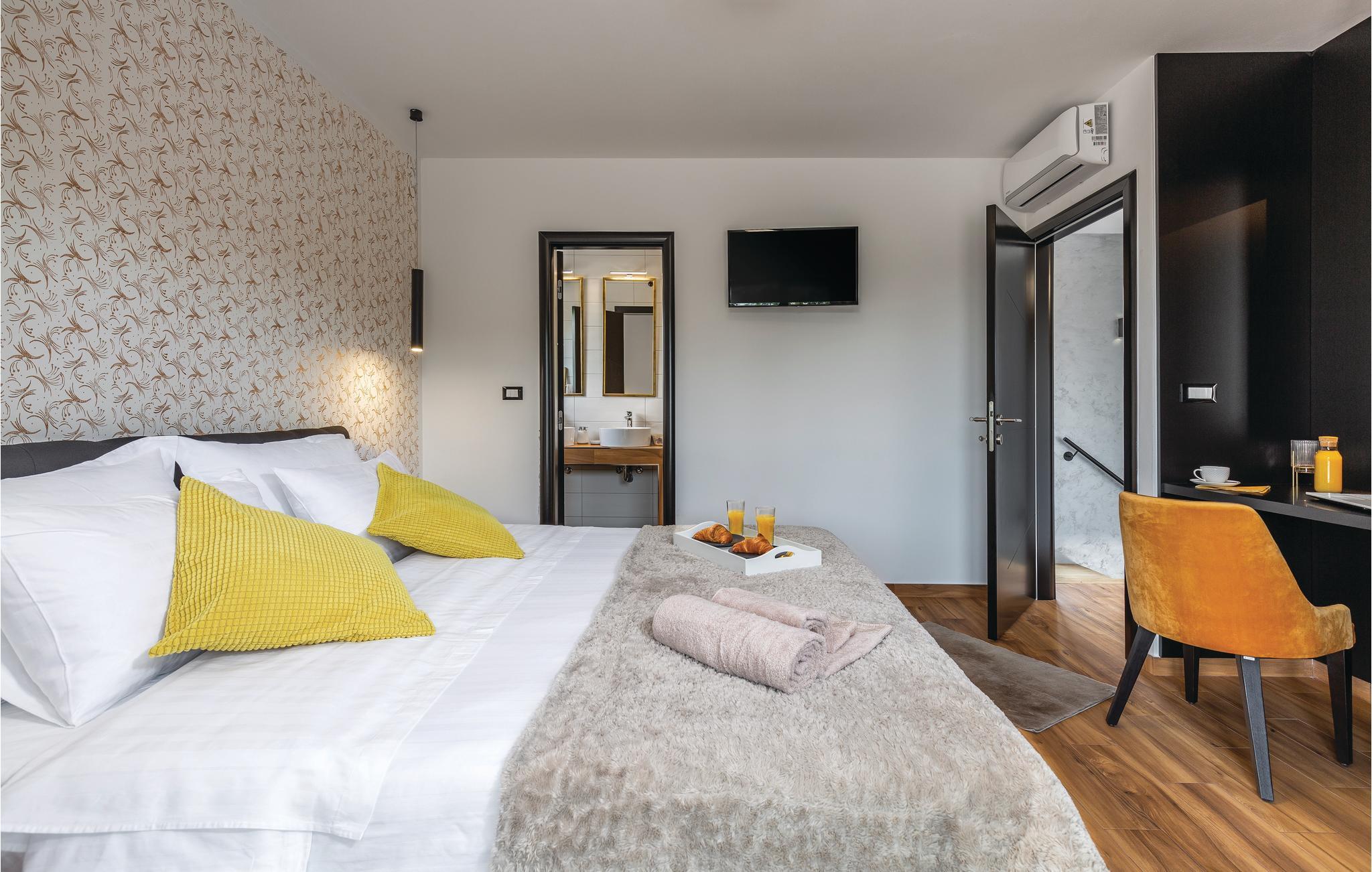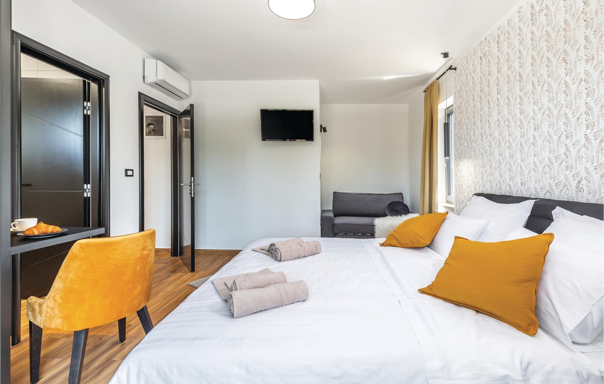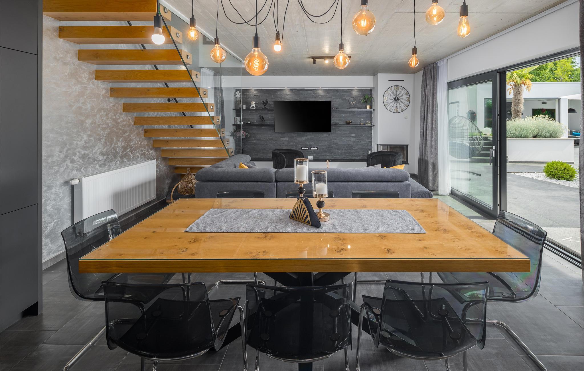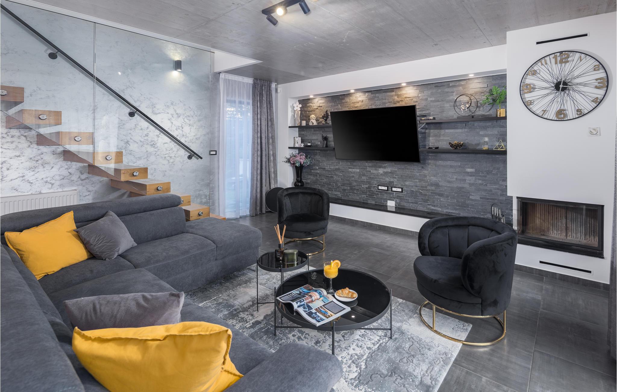 Den imponerende ferievilla er moderne designet til en komfortabel ferie. Denne smukke villa er ikke kun visuelt tiltalende, men også indrettet med alle former for komfort. Den ligger i det indre Istrien, omgivet af grønne områder, på en ca. 1000 m² stor og indhegnet grund, med en høj grad af fred og privatliv. Interiøret strækker sig over stueetagen og første sal. Det store lyse indre består af en stor stue med pejs, køkken og spiseplads, mens hvert soveværelse har eget badeværelse med aircondition og fjernsyn. Kæmpe glasflader oversvømmer værelserne med lys og giver direkte adgang til terrasserne, der vender ud mod haven og poolområdet. I haven finder ligger den forfriskende pool med område til solbad og der er et udendørs køkken ved siden af en hyggelig lounge. Selv de små gæster vil ikke kede sig i dette drømmehus, er mange muligheder for leg og sjov.
