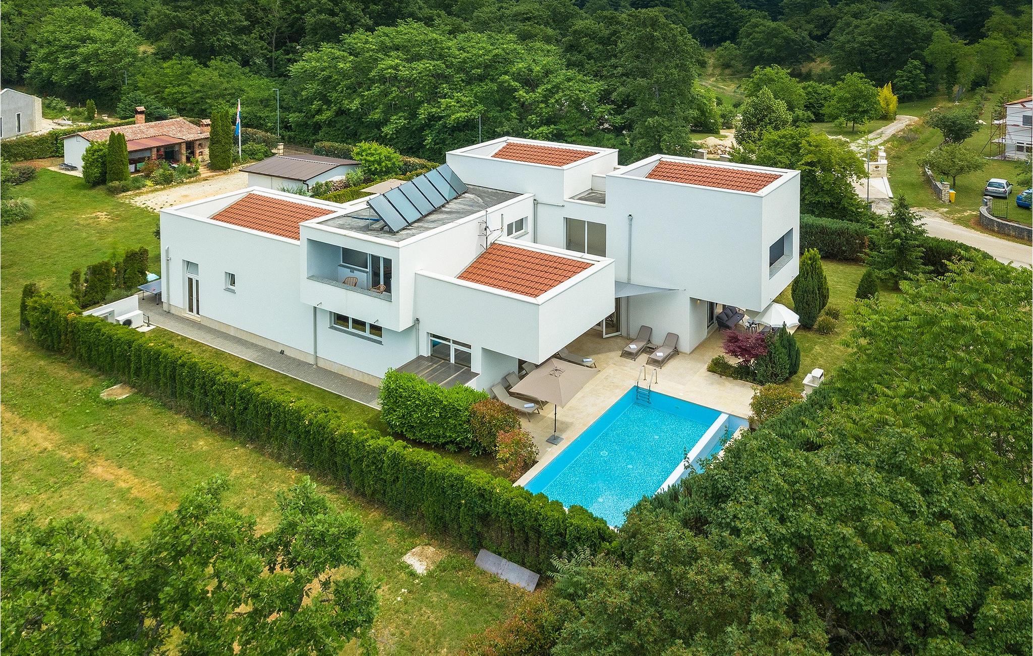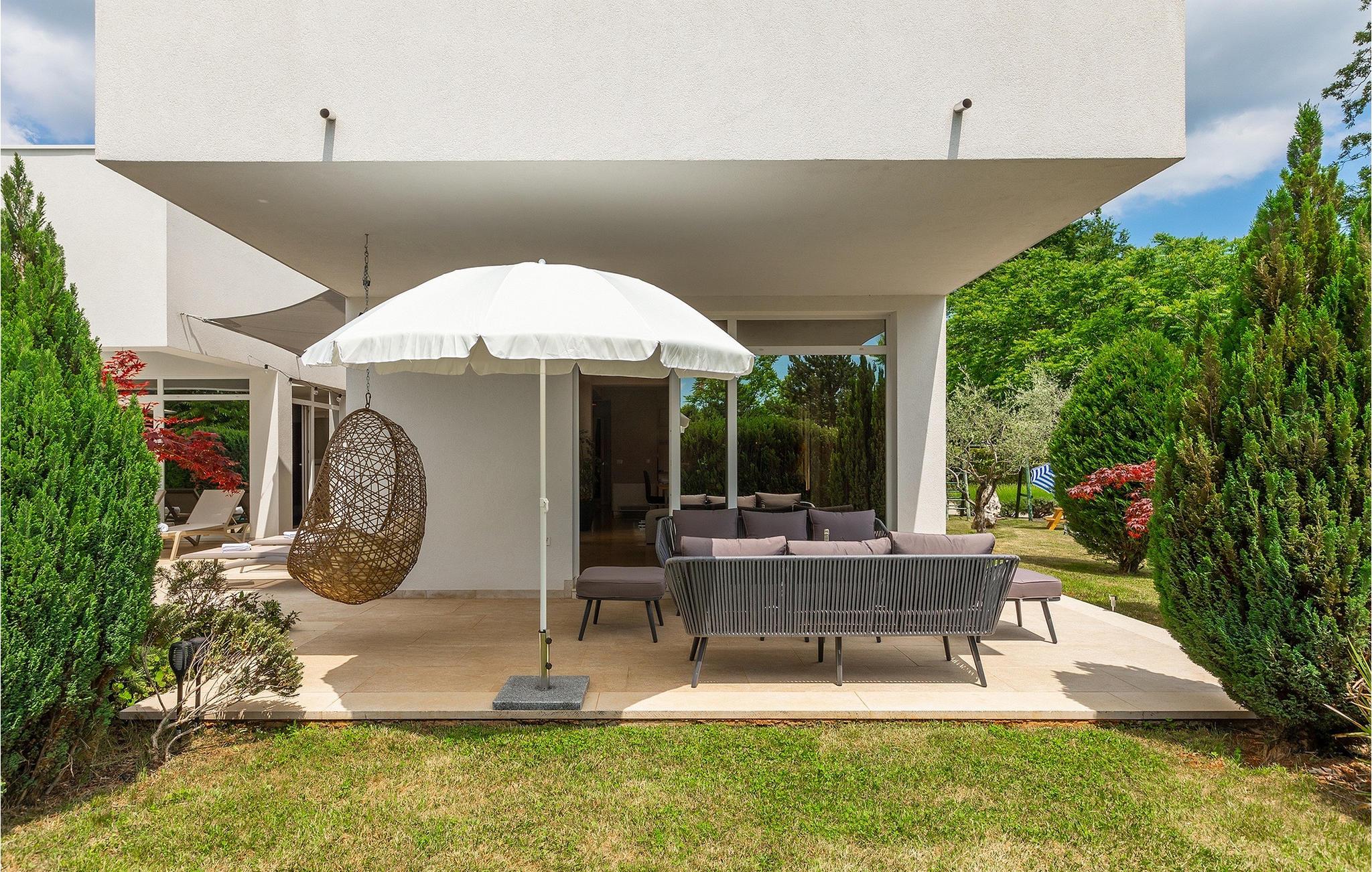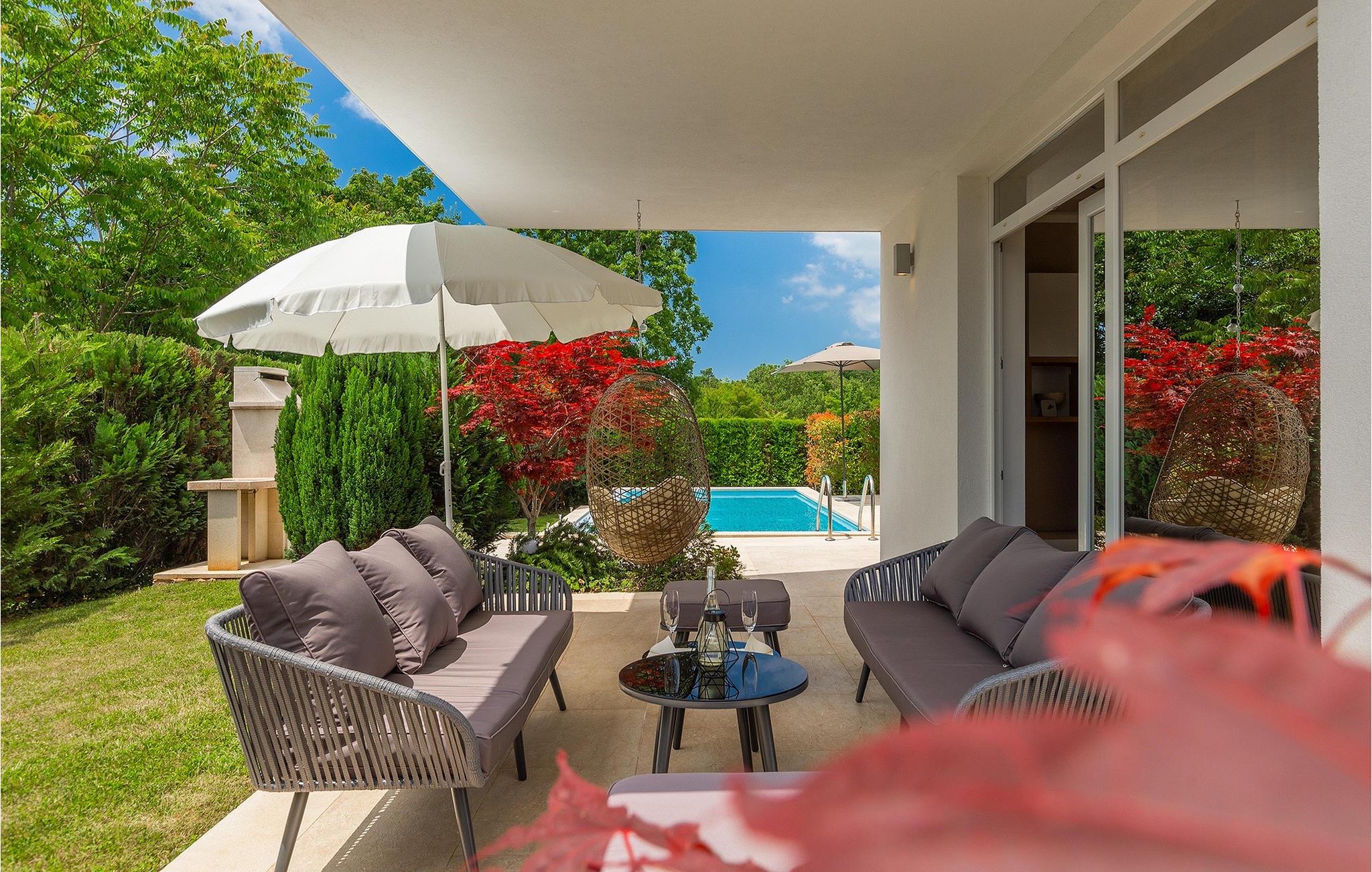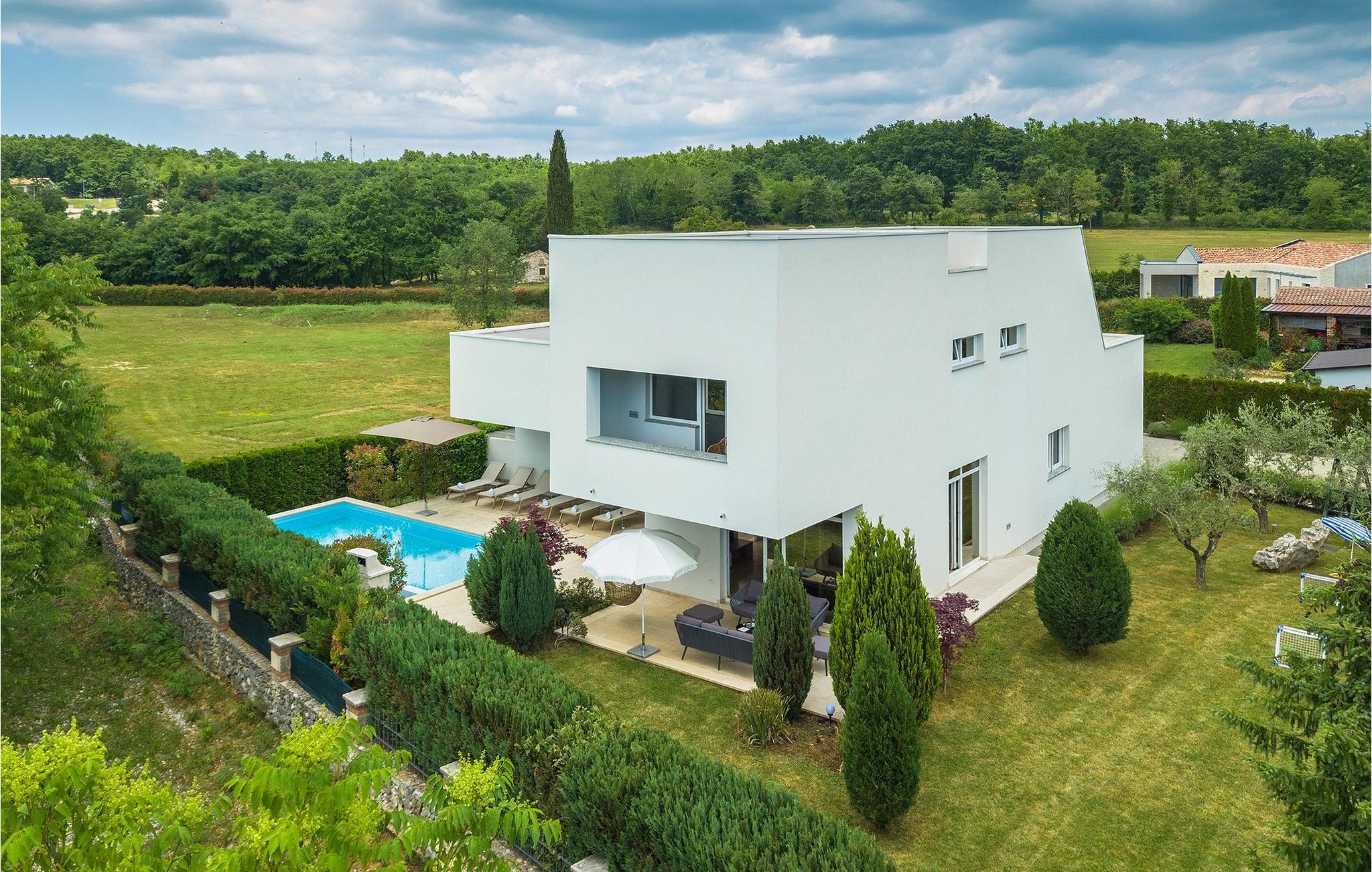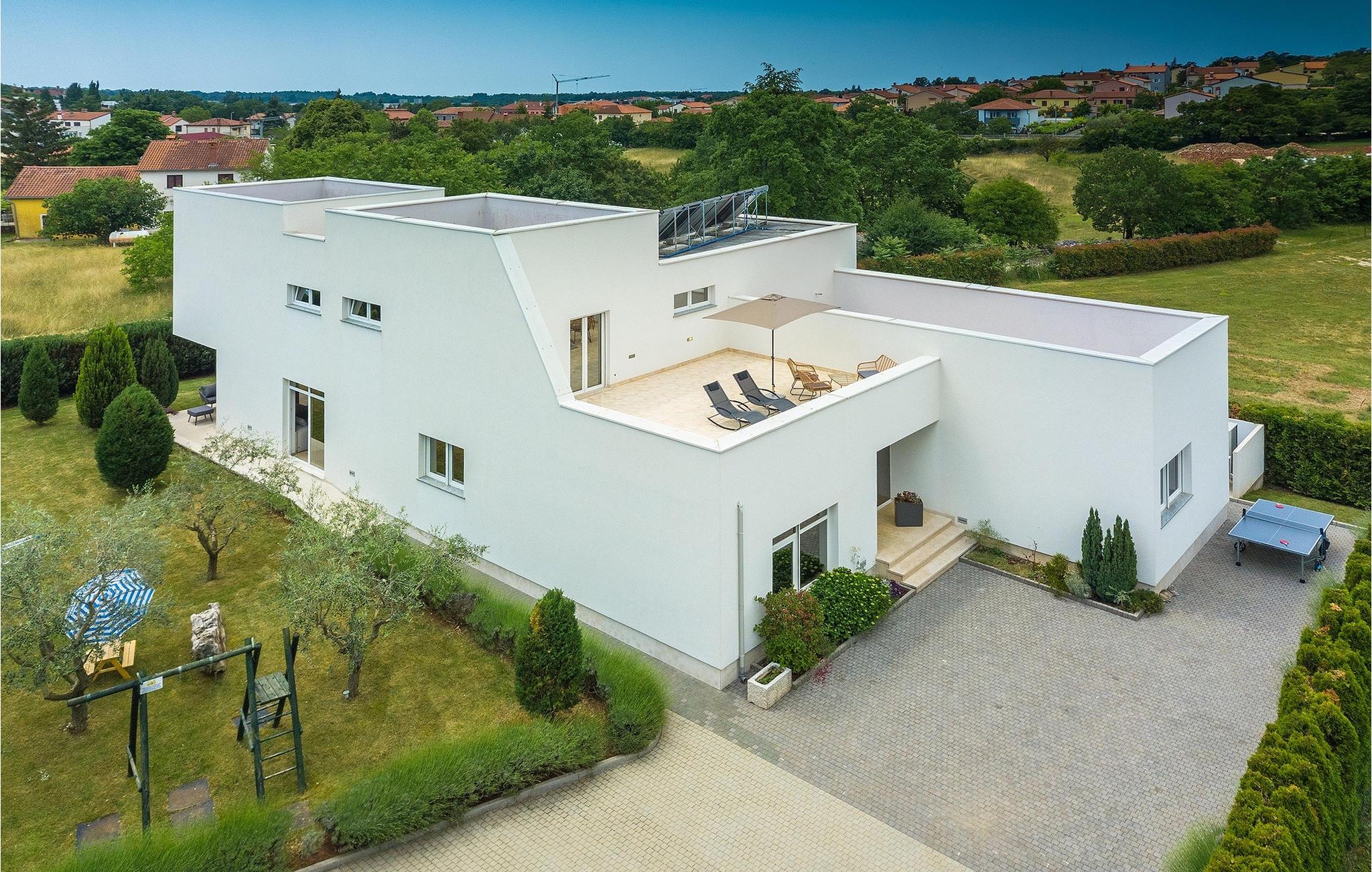 Möchten Sie Ihren Urlaub in einer Villa in Zentralistrien, mit privatem Pool, 4 Schlafzimmern und idyllischem Ambiente genießen? Dies und noch einiges mehr erwartet Sie in der Villa Kate. Auf dem Grundstück werden Sie gleich den wunderschönen Garten samt Spielplatz für Spaß und Freude erblicken. Draußen werden Sie auch den erfrischenden Pool mit Sonnenliegen entdecken, wo Sie besonders entspannende Momente erleben können. In der Villa heißen Sie dann die zeitlos eingerichteten Räume willkommen. Lassen Sie sich von den hellen Farbtönen beeindrucken, welche eine besonders gemütliche Atmosphäre schaffen. Im Erdgeschoss befindet sich ein offener, lichtdurchfluteter Raum mit Küche, Wohn- und Essbereich, von wo aus Sie direkt auf die Terrasse treten können. Auf der Terrasse haben Sie die Möglichkeit sowohl im Essbereich im Freien zu speisen, nachdem Sie Ihre köstlichen Speisen auf dem Grill zubereitet haben, als auch in der Lounge-Ecke zu entspannen. Eines der komfortablen Schlafzimmer finden Sie im Erdgeschoss, während die anderen 3 im Obergeschoss auf Sie warten - 2 von Ihnen sogar mit Balkon. Um einen wundervollen Blick auf die Umgebung zu bekommen, begeben Sie sich auf die Dachterrasse. Besonders erwähnenswert ist jedoch, dass sich in dieser Villa zwei Highlights verstecken - ein Spielzimmer mit Kickertisch sowie ein Wellnessbereich mit Sauna und beheizbarem Innenpool, was sich als wahre Ruheoase anbietet. Verbringen Sie einen erholsamen Urlaub und reservieren Sie die Villa KateVilla Kate liegt im kleinen Dorf Žminj im Zentrum der istrischen Halbinsel. In der Nähe sollten Sie jedenfalls die Überreste der Stadtmauern aus dem 15. Jahrhundert sowie die Kirche des Hl. Mihovil besuchen. Generell gesehen gilt Zentralistrien als ideale Umgebung für alle Liebhaber der Gastronomie und des aktiven Tourismus. Außerdem können Sie dort viele interessante Städte besichtigen, die unberührte Natur bewundern und verschiedenen Sportmöglichkeiten, wie Zip-Line, Reiten, Wandern und Radfahren nachgehen. Lassen Sie sich nicht die Möglichkeit entgehen und verbringen Sie auch einen Tag an einem der schönen Strände Rovinjs. Spazieren Sie durch die Straßen Rovinjs, einer beliebten Destination, genießen Sie deren Charme und die wundervolle Aussicht auf das offene Meer.