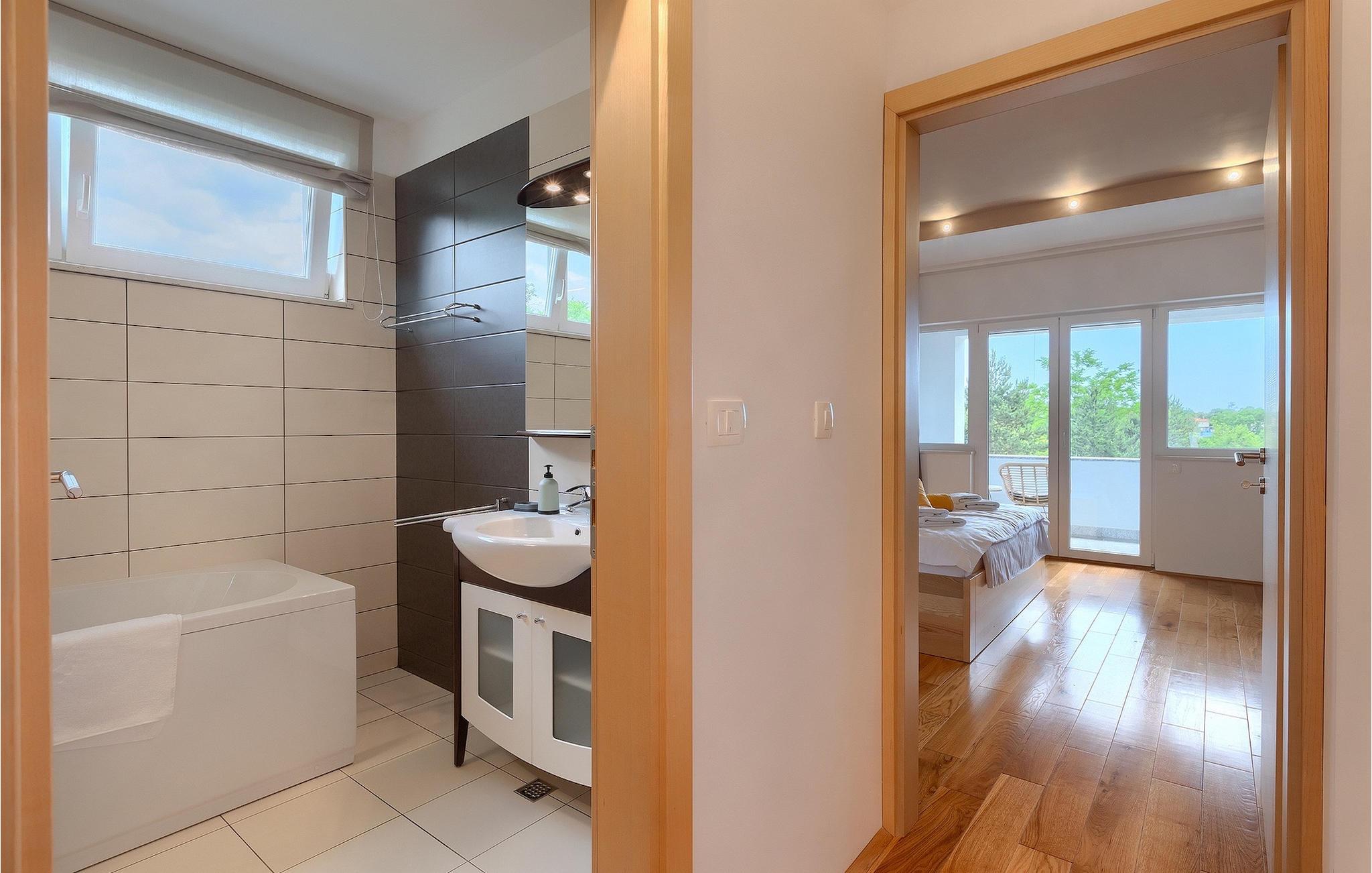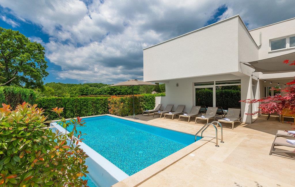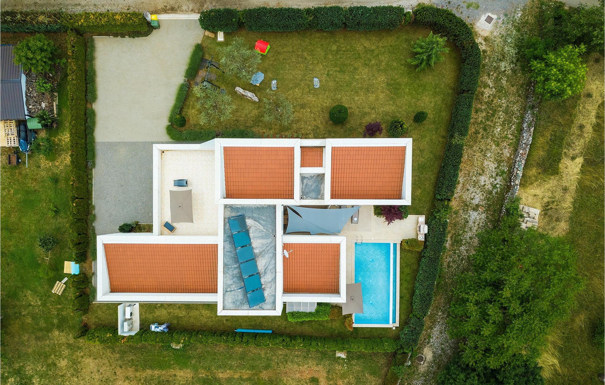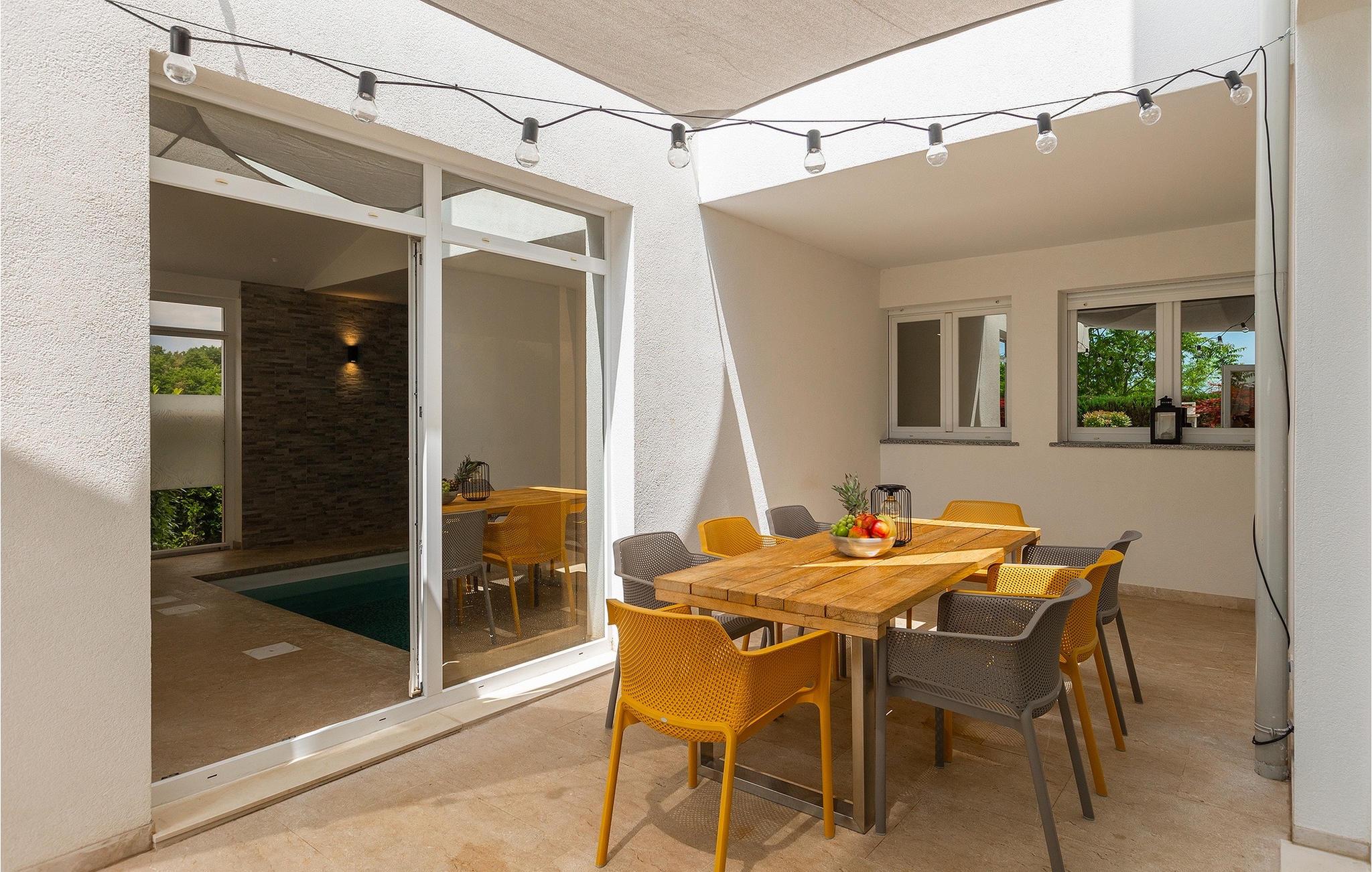 Möchten Sie Ihren Urlaub in einer Villa in Zentralistrien, mit privatem Pool, 4 Schlafzimmern und idyllischem Ambiente genießen? Dies und noch einiges mehr erwartet Sie in der Villa Kate. Auf dem Grundstück werden Sie gleich den wunderschönen Garten samt Spielplatz für Spaß und Freude erblicken. Draußen werden Sie auch den erfrischenden Pool mit Sonnenliegen entdecken, wo Sie besonders entspannende Momente erleben können. In der Villa heißen Sie dann die zeitlos eingerichteten Räume willkommen. Lassen Sie sich von den hellen Farbtönen beeindrucken, welche eine besonders gemütliche Atmosphäre schaffen. Im Erdgeschoss befindet sich ein offener, lichtdurchfluteter Raum mit Küche, Wohn- und Essbereich, von wo aus Sie direkt auf die Terrasse treten können. Auf der Terrasse haben Sie die Möglichkeit sowohl im Essbereich im Freien zu speisen, nachdem Sie Ihre köstlichen Speisen auf dem Grill zubereitet haben, als auch in der Lounge-Ecke zu entspannen. Eines der komfortablen Schlafzimmer finden Sie im Erdgeschoss, während die anderen 3 im Obergeschoss auf Sie warten - 2 von Ihnen sogar mit Balkon. Um einen wundervollen Blick auf die Umgebung zu bekommen, begeben Sie sich auf die Dachterrasse. Besonders erwähnenswert ist jedoch, dass sich in dieser Villa zwei Highlights verstecken - ein Spielzimmer mit Kickertisch sowie ein Wellnessbereich mit Sauna und beheizbarem Innenpool, was sich als wahre Ruheoase anbietet. Verbringen Sie einen erholsamen Urlaub und reservieren Sie die Villa KateVilla Kate liegt im kleinen Dorf Žminj im Zentrum der istrischen Halbinsel. In der Nähe sollten Sie jedenfalls die Überreste der Stadtmauern aus dem 15. Jahrhundert sowie die Kirche des Hl. Mihovil besuchen. Generell gesehen gilt Zentralistrien als ideale Umgebung für alle Liebhaber der Gastronomie und des aktiven Tourismus. Außerdem können Sie dort viele interessante Städte besichtigen, die unberührte Natur bewundern und verschiedenen Sportmöglichkeiten, wie Zip-Line, Reiten, Wandern und Radfahren nachgehen. Lassen Sie sich nicht die Möglichkeit entgehen und verbringen Sie auch einen Tag an einem der schönen Strände Rovinjs. Spazieren Sie durch die Straßen Rovinjs, einer beliebten Destination, genießen Sie deren Charme und die wundervolle Aussicht auf das offene Meer.