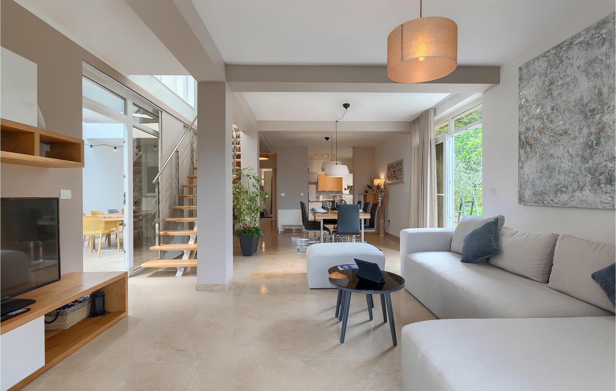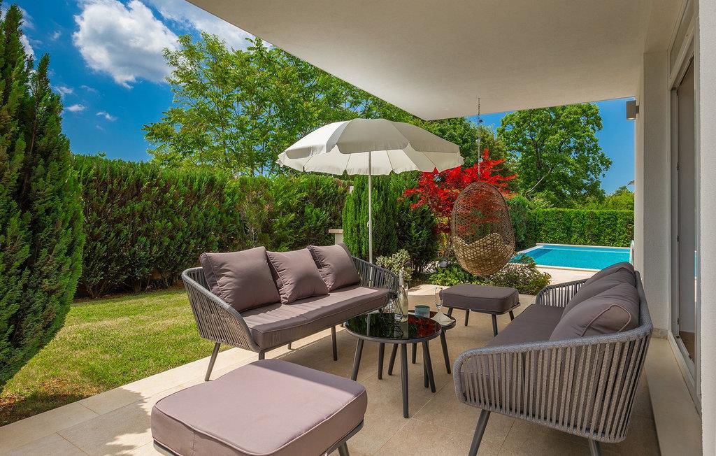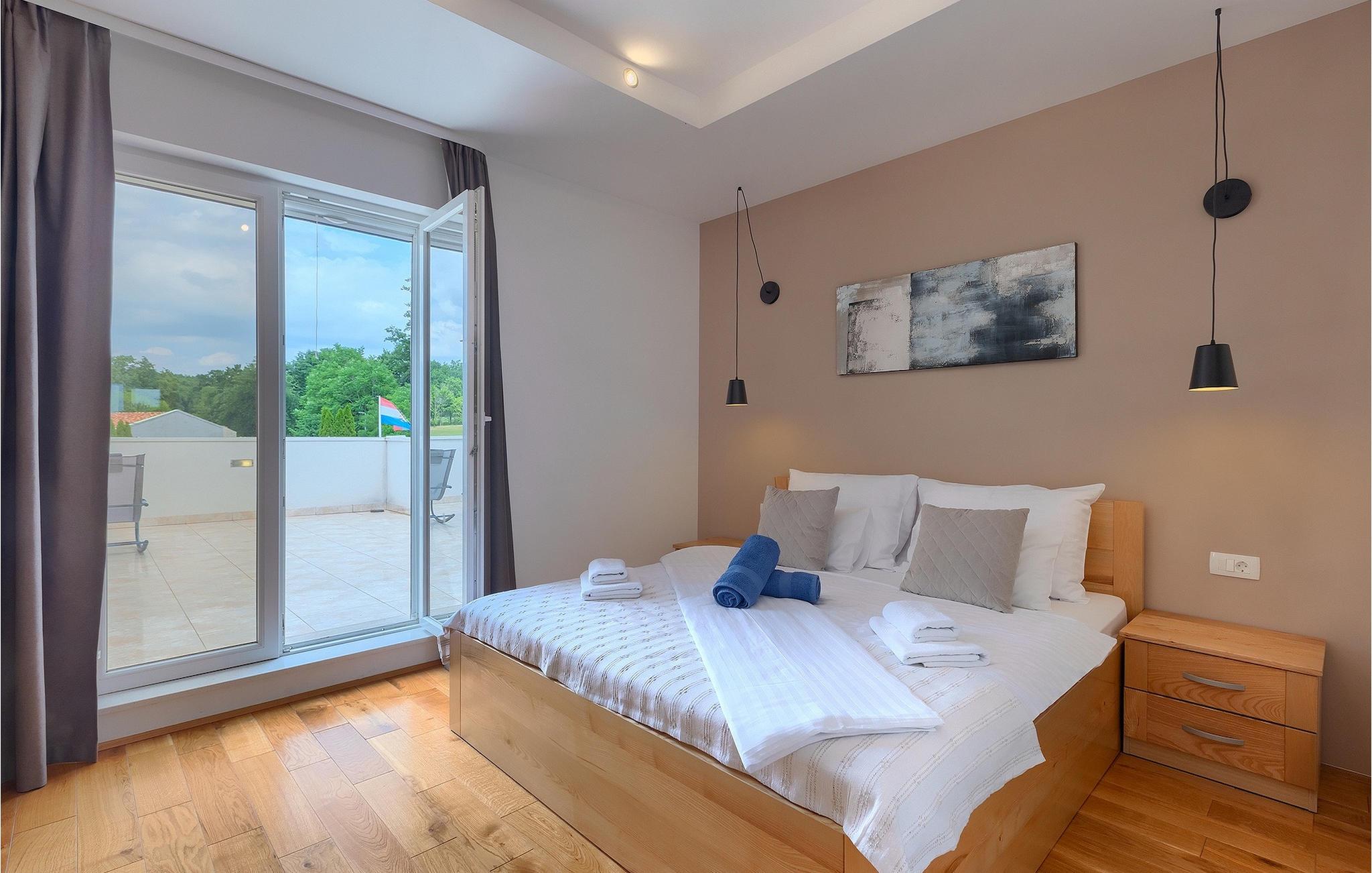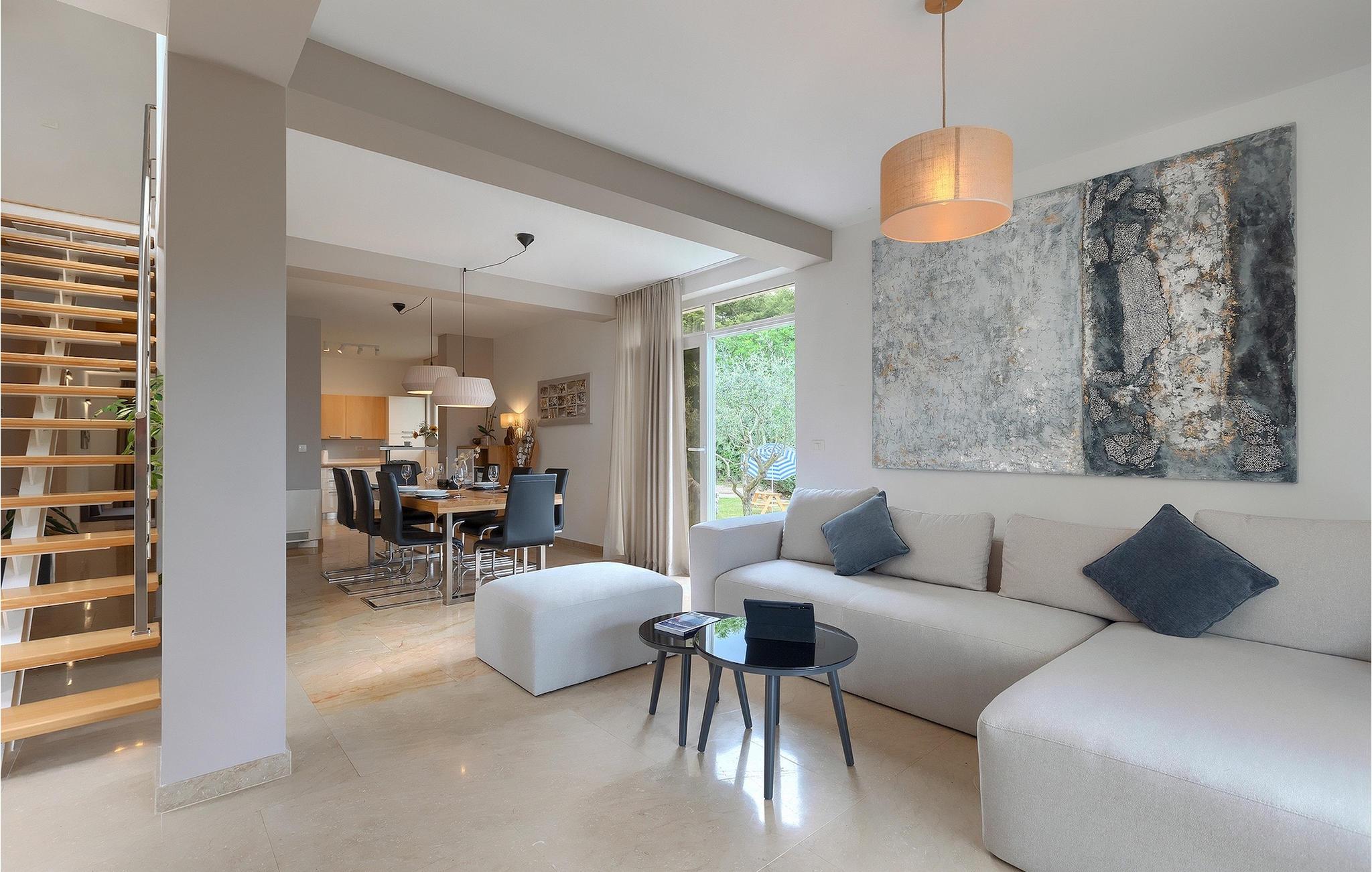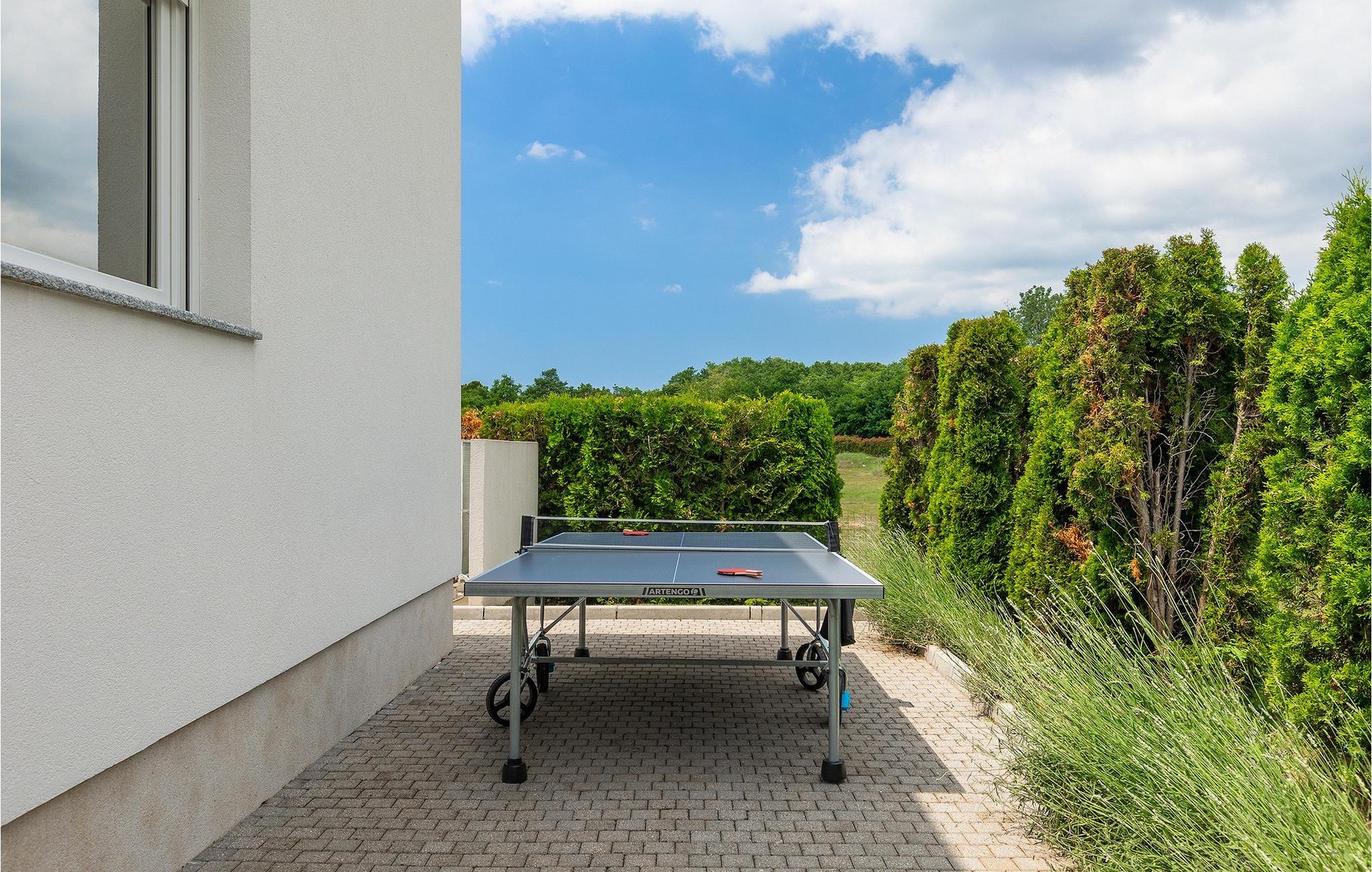 Möchten Sie Ihren Urlaub in einer Villa in Zentralistrien, mit privatem Pool, 4 Schlafzimmern und idyllischem Ambiente genießen? Dies und noch einiges mehr erwartet Sie in der Villa Kate. Auf dem Grundstück werden Sie gleich den wunderschönen Garten samt Spielplatz für Spaß und Freude erblicken. Draußen werden Sie auch den erfrischenden Pool mit Sonnenliegen entdecken, wo Sie besonders entspannende Momente erleben können. In der Villa heißen Sie dann die zeitlos eingerichteten Räume willkommen. Lassen Sie sich von den hellen Farbtönen beeindrucken, welche eine besonders gemütliche Atmosphäre schaffen. Im Erdgeschoss befindet sich ein offener, lichtdurchfluteter Raum mit Küche, Wohn- und Essbereich, von wo aus Sie direkt auf die Terrasse treten können. Auf der Terrasse haben Sie die Möglichkeit sowohl im Essbereich im Freien zu speisen, nachdem Sie Ihre köstlichen Speisen auf dem Grill zubereitet haben, als auch in der Lounge-Ecke zu entspannen. Eines der komfortablen Schlafzimmer finden Sie im Erdgeschoss, während die anderen 3 im Obergeschoss auf Sie warten - 2 von Ihnen sogar mit Balkon. Um einen wundervollen Blick auf die Umgebung zu bekommen, begeben Sie sich auf die Dachterrasse. Besonders erwähnenswert ist jedoch, dass sich in dieser Villa zwei Highlights verstecken - ein Spielzimmer mit Kickertisch sowie ein Wellnessbereich mit Sauna und beheizbarem Innenpool, was sich als wahre Ruheoase anbietet. Verbringen Sie einen erholsamen Urlaub und reservieren Sie die Villa KateVilla Kate liegt im kleinen Dorf Žminj im Zentrum der istrischen Halbinsel. In der Nähe sollten Sie jedenfalls die Überreste der Stadtmauern aus dem 15. Jahrhundert sowie die Kirche des Hl. Mihovil besuchen. Generell gesehen gilt Zentralistrien als ideale Umgebung für alle Liebhaber der Gastronomie und des aktiven Tourismus. Außerdem können Sie dort viele interessante Städte besichtigen, die unberührte Natur bewundern und verschiedenen Sportmöglichkeiten, wie Zip-Line, Reiten, Wandern und Radfahren nachgehen. Lassen Sie sich nicht die Möglichkeit entgehen und verbringen Sie auch einen Tag an einem der schönen Strände Rovinjs. Spazieren Sie durch die Straßen Rovinjs, einer beliebten Destination, genießen Sie deren Charme und die wundervolle Aussicht auf das offene Meer.