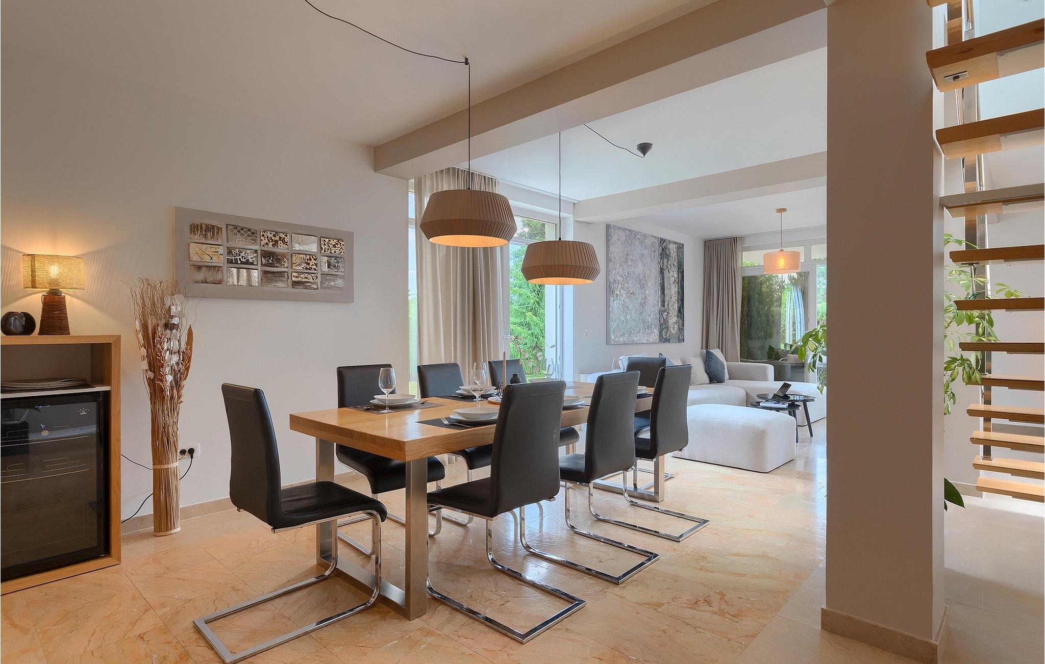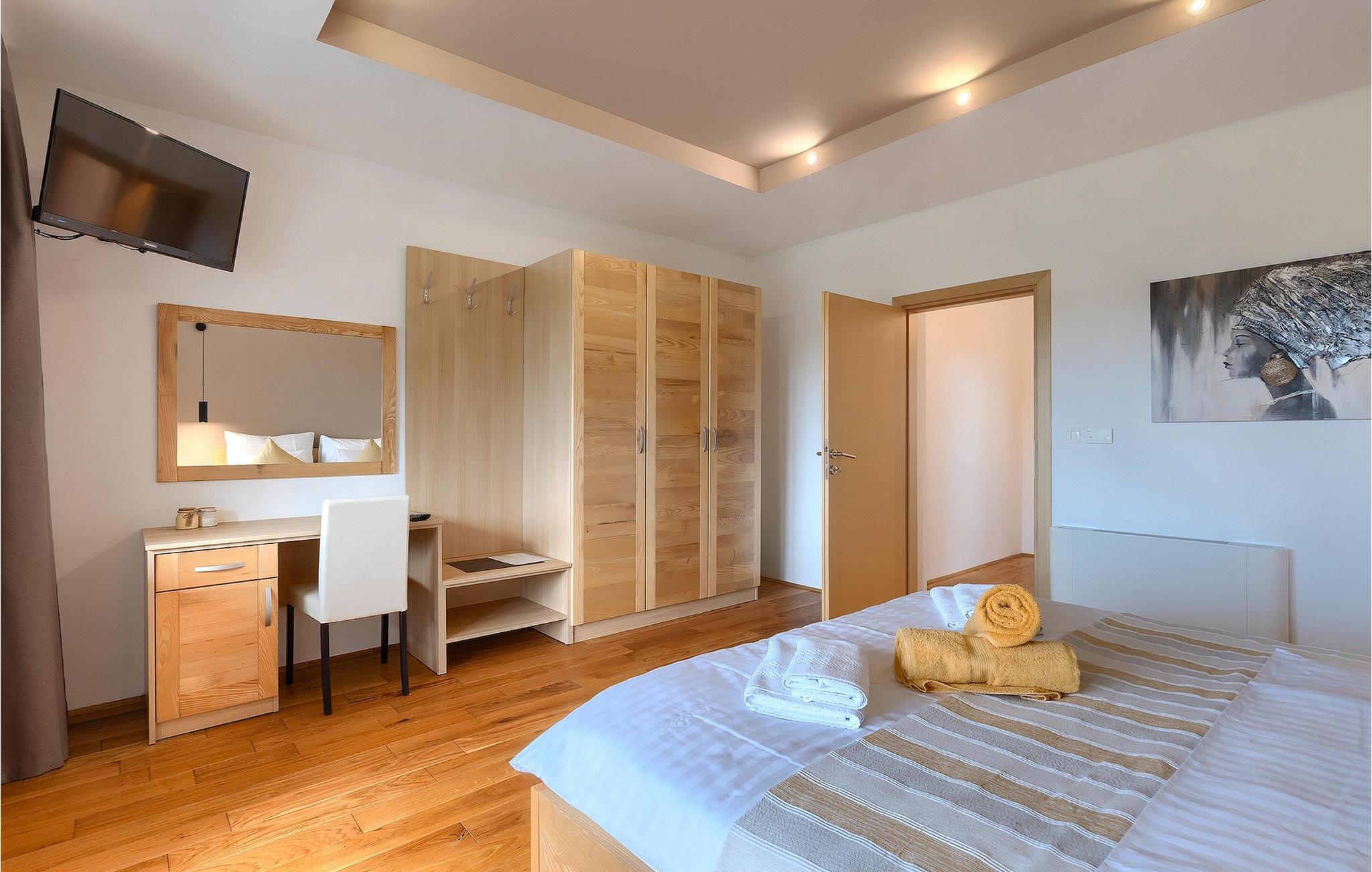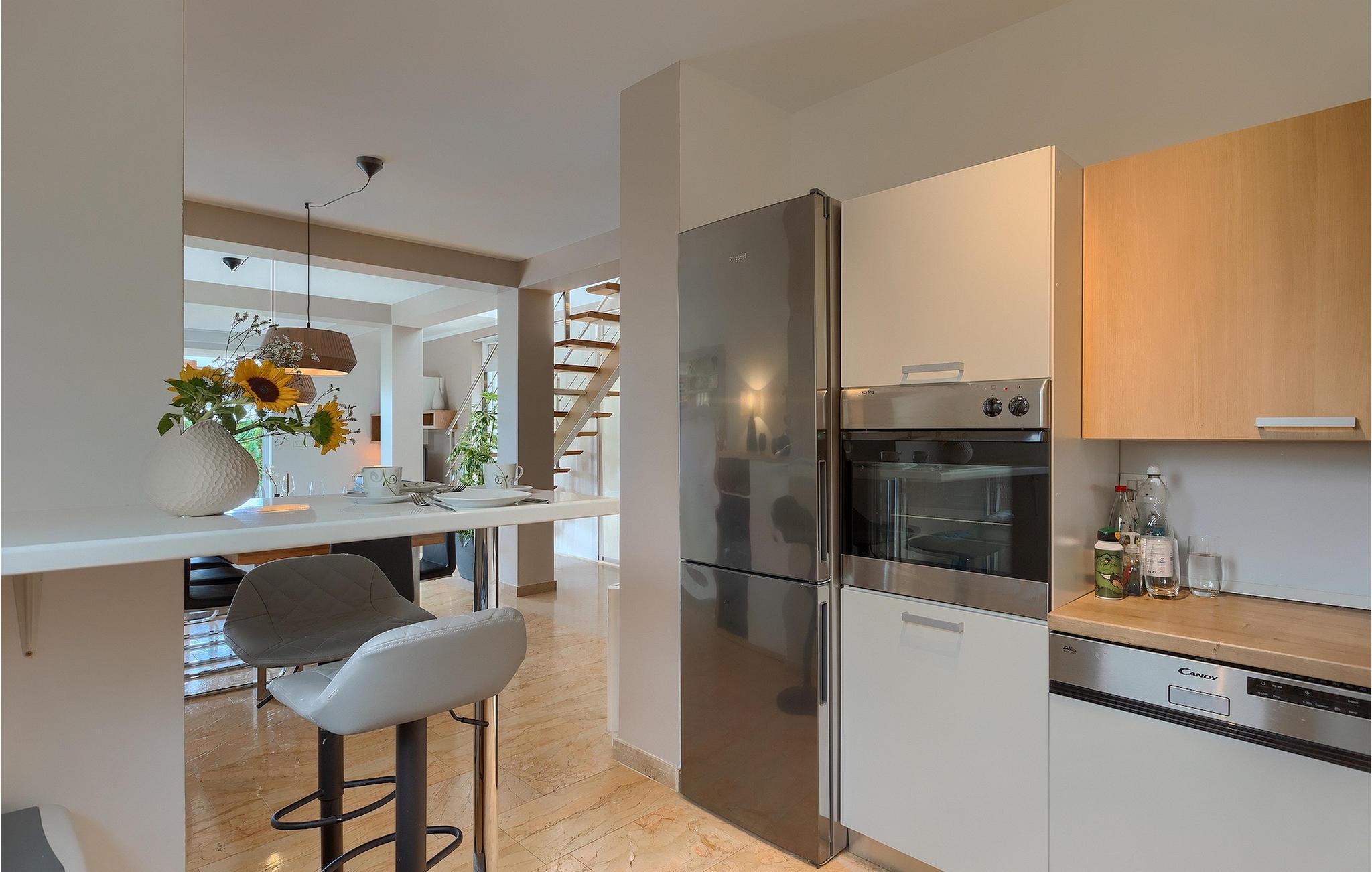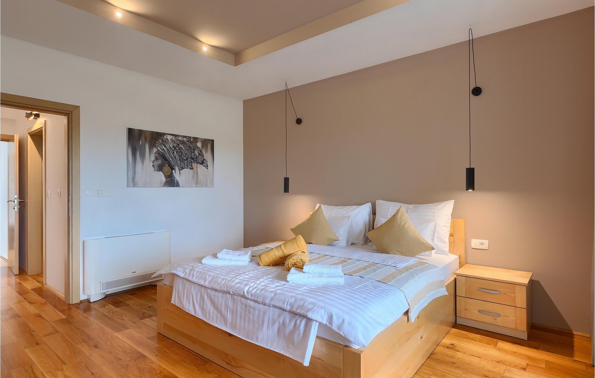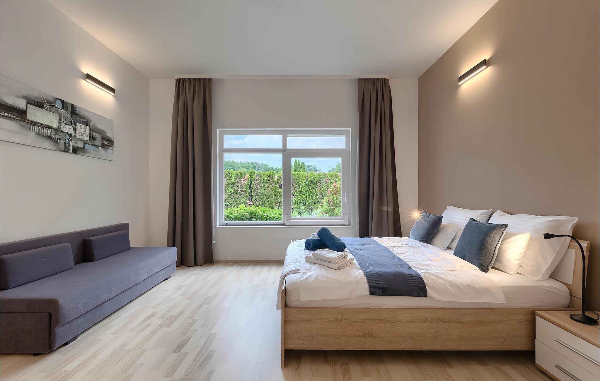 Möchten Sie Ihren Urlaub in einer Villa in Zentralistrien, mit privatem Pool, 4 Schlafzimmern und idyllischem Ambiente genießen? Dies und noch einiges mehr erwartet Sie in der Villa Kate. Auf dem Grundstück werden Sie gleich den wunderschönen Garten samt Spielplatz für Spaß und Freude erblicken. Draußen werden Sie auch den erfrischenden Pool mit Sonnenliegen entdecken, wo Sie besonders entspannende Momente erleben können. In der Villa heißen Sie dann die zeitlos eingerichteten Räume willkommen. Lassen Sie sich von den hellen Farbtönen beeindrucken, welche eine besonders gemütliche Atmosphäre schaffen. Im Erdgeschoss befindet sich ein offener, lichtdurchfluteter Raum mit Küche, Wohn- und Essbereich, von wo aus Sie direkt auf die Terrasse treten können. Auf der Terrasse haben Sie die Möglichkeit sowohl im Essbereich im Freien zu speisen, nachdem Sie Ihre köstlichen Speisen auf dem Grill zubereitet haben, als auch in der Lounge-Ecke zu entspannen. Eines der komfortablen Schlafzimmer finden Sie im Erdgeschoss, während die anderen 3 im Obergeschoss auf Sie warten - 2 von Ihnen sogar mit Balkon. Um einen wundervollen Blick auf die Umgebung zu bekommen, begeben Sie sich auf die Dachterrasse. Besonders erwähnenswert ist jedoch, dass sich in dieser Villa zwei Highlights verstecken - ein Spielzimmer mit Kickertisch sowie ein Wellnessbereich mit Sauna und beheizbarem Innenpool, was sich als wahre Ruheoase anbietet. Verbringen Sie einen erholsamen Urlaub und reservieren Sie die Villa KateVilla Kate liegt im kleinen Dorf Žminj im Zentrum der istrischen Halbinsel. In der Nähe sollten Sie jedenfalls die Überreste der Stadtmauern aus dem 15. Jahrhundert sowie die Kirche des Hl. Mihovil besuchen. Generell gesehen gilt Zentralistrien als ideale Umgebung für alle Liebhaber der Gastronomie und des aktiven Tourismus. Außerdem können Sie dort viele interessante Städte besichtigen, die unberührte Natur bewundern und verschiedenen Sportmöglichkeiten, wie Zip-Line, Reiten, Wandern und Radfahren nachgehen. Lassen Sie sich nicht die Möglichkeit entgehen und verbringen Sie auch einen Tag an einem der schönen Strände Rovinjs. Spazieren Sie durch die Straßen Rovinjs, einer beliebten Destination, genießen Sie deren Charme und die wundervolle Aussicht auf das offene Meer.
