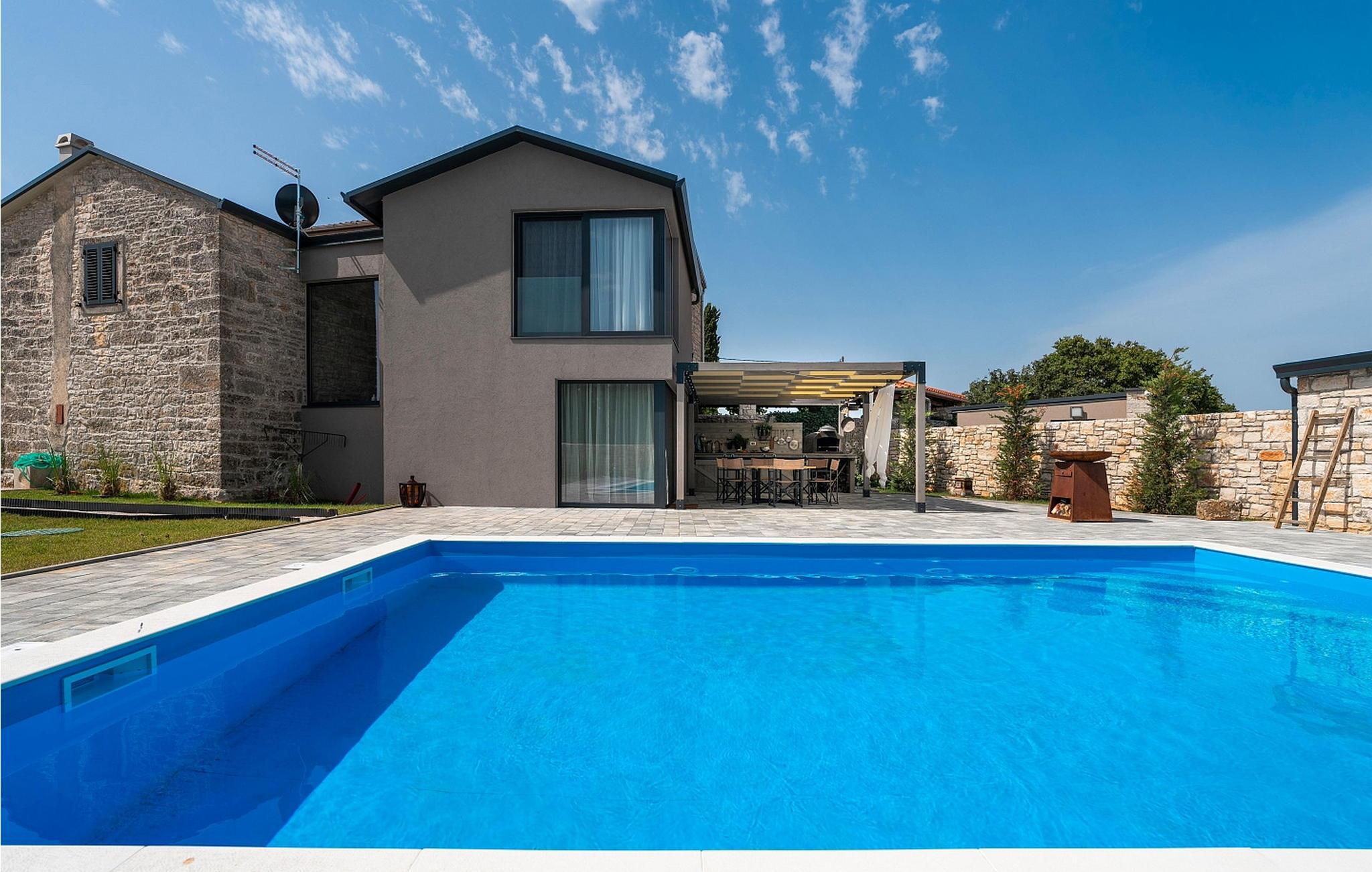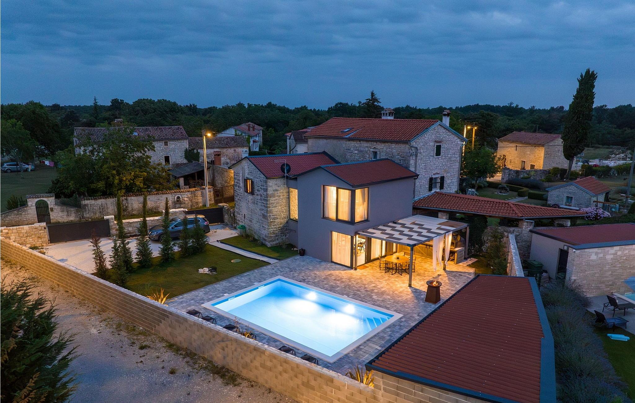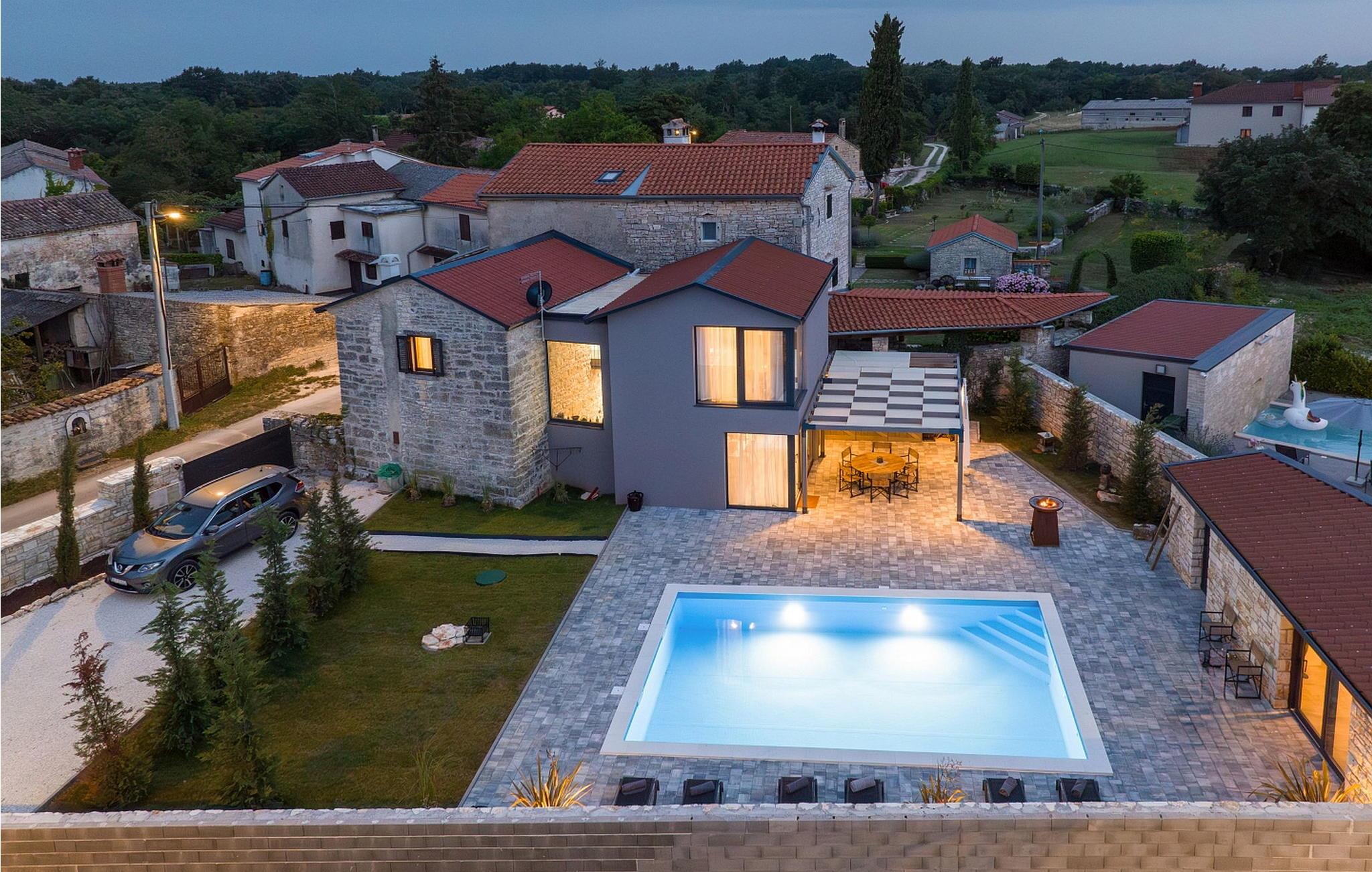 Casa La Tabachina er en moderne villa med pool beliggende i udkanten af landsbyen Šivati, ikke langt fra Kanfanar i det centrale Istrien. En kombination af moderne istrisk stenhus og en nybygget del og moderne møbler med masser af antikke detaljer giver huset en unik atmosfære, hvor hver gæst vil fylde hyggeligt og specielt. På en 699 kvm stor, lukket ejendom tilbyder Casa La Tabachina sine gæster en 42 kvm stor pool, en overdækket terrasse med sommerkøkken med bageovn og spisebord, 2 parkeringspladser og i en separat bygning er der en infrarød og finsk sauna og badeværelse. Villa med pool med en overflade på 153 kvm på to etager med aircondition, velegnet til max 6 personer. I stueetagen er der opholdsstue med to-personers sovesofa, fuldt udstyret køkken med spisebord og adgang til terrassen og poolen, separat toilet. På 1. sal er der to dobbeltværelser, hver med satellit-tv og bad/toilet. Bemærk venligst, at denne ejendom ikke accepterer ungdomsgrupper eller polterabends. En ungdomsgruppe på denne ejendom er en gruppe bestående af personer på 26 år eller derunder. Book ikke denne ejendom, hvis du er en ungdomsgruppe eller et polterabend, da din reservation vil blive afvist efter booking, hvilket kan omfatte ved ankomst til ejendommen eller under dit ophold, og du vil ikke blive refunderet.