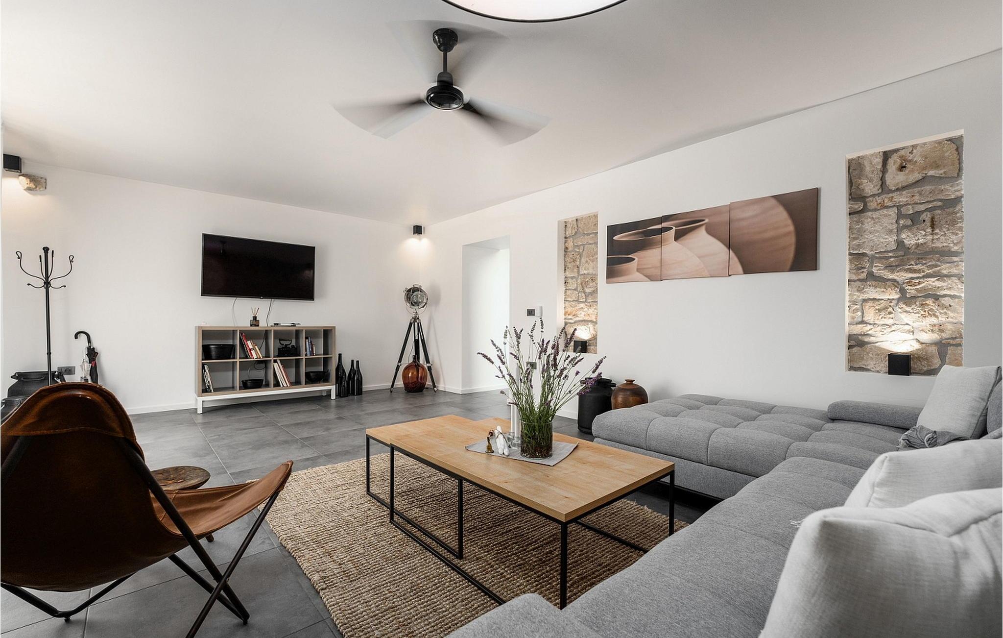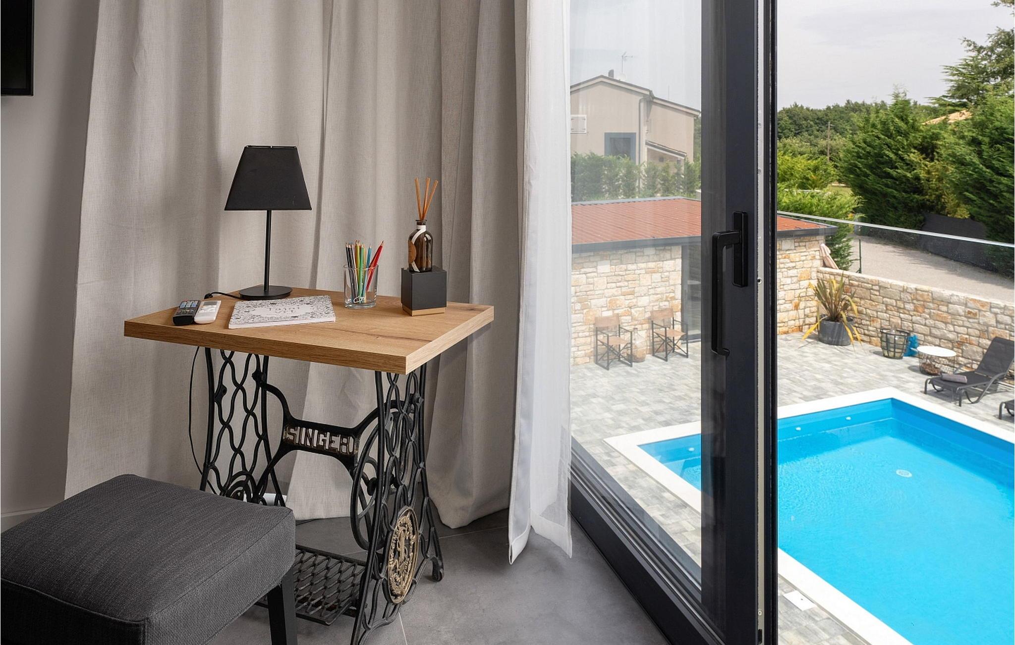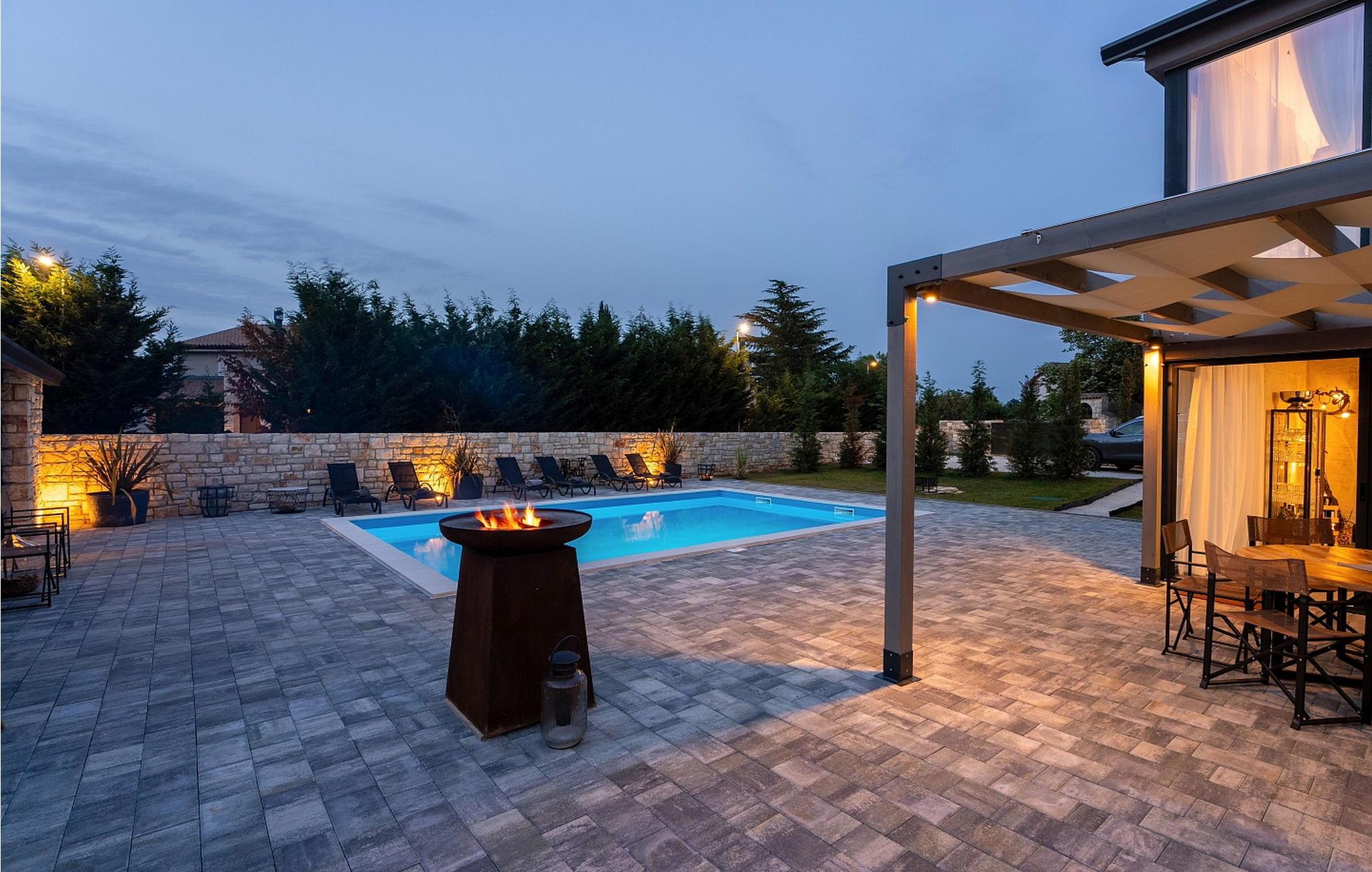 Casa La Tabachina er en moderne villa med pool beliggende i udkanten af landsbyen Šivati, ikke langt fra Kanfanar i det centrale Istrien. En kombination af moderne istrisk stenhus og en nybygget del og moderne møbler med masser af antikke detaljer giver huset en unik atmosfære, hvor hver gæst vil fylde hyggeligt og specielt. På en 699 kvm stor, lukket ejendom tilbyder Casa La Tabachina sine gæster en 42 kvm stor pool, en overdækket terrasse med sommerkøkken med bageovn og spisebord, 2 parkeringspladser og i en separat bygning er der en infrarød og finsk sauna og badeværelse. Villa med pool med en overflade på 153 kvm på to etager med aircondition, velegnet til max 6 personer. I stueetagen er der opholdsstue med to-personers sovesofa, fuldt udstyret køkken med spisebord og adgang til terrassen og poolen, separat toilet. På 1. sal er der to dobbeltværelser, hver med satellit-tv og bad/toilet. Bemærk venligst, at denne ejendom ikke accepterer ungdomsgrupper eller polterabends. En ungdomsgruppe på denne ejendom er en gruppe bestående af personer på 26 år eller derunder. Book ikke denne ejendom, hvis du er en ungdomsgruppe eller et polterabend, da din reservation vil blive afvist efter booking, hvilket kan omfatte ved ankomst til ejendommen eller under dit ophold, og du vil ikke blive refunderet.