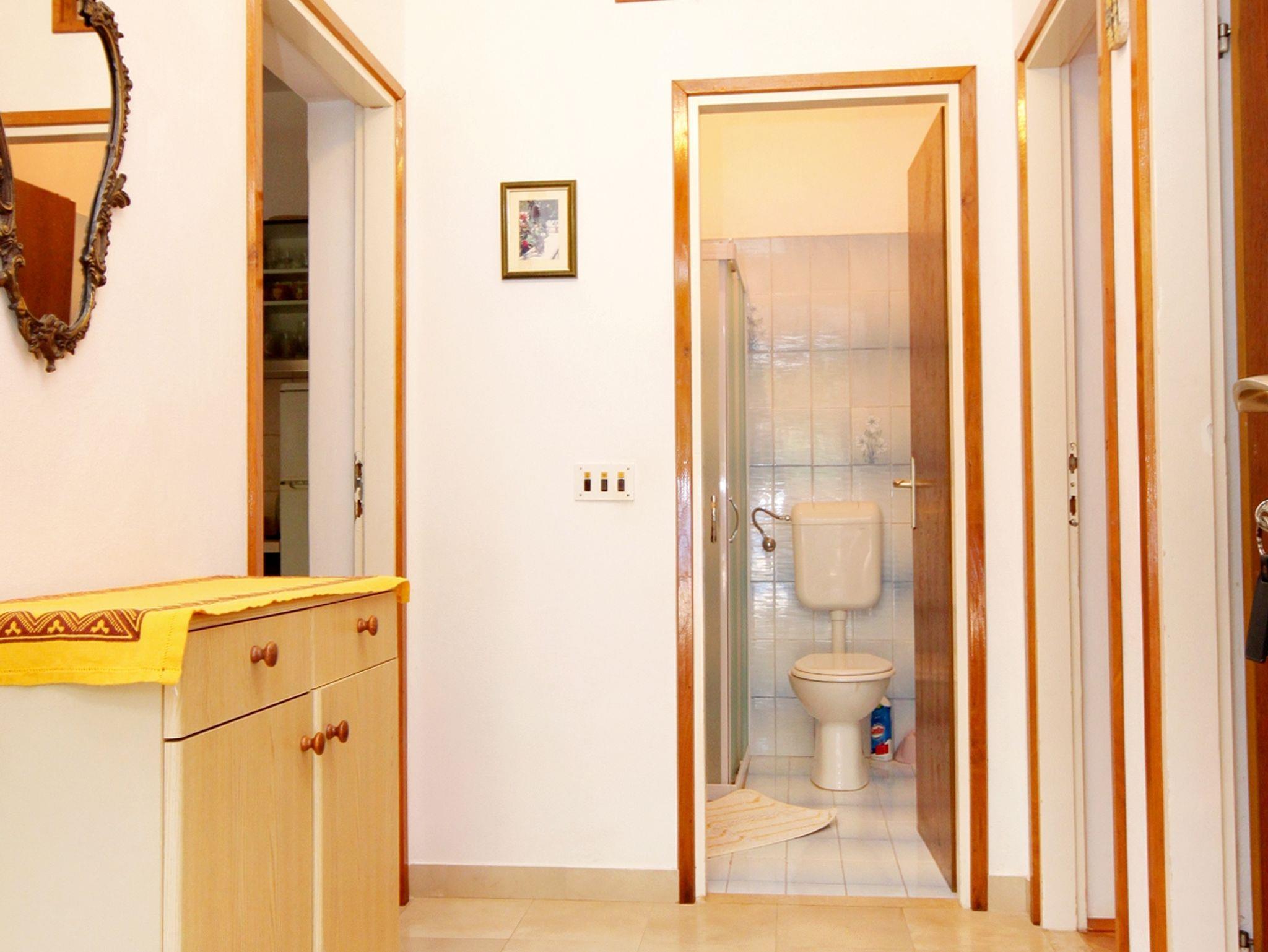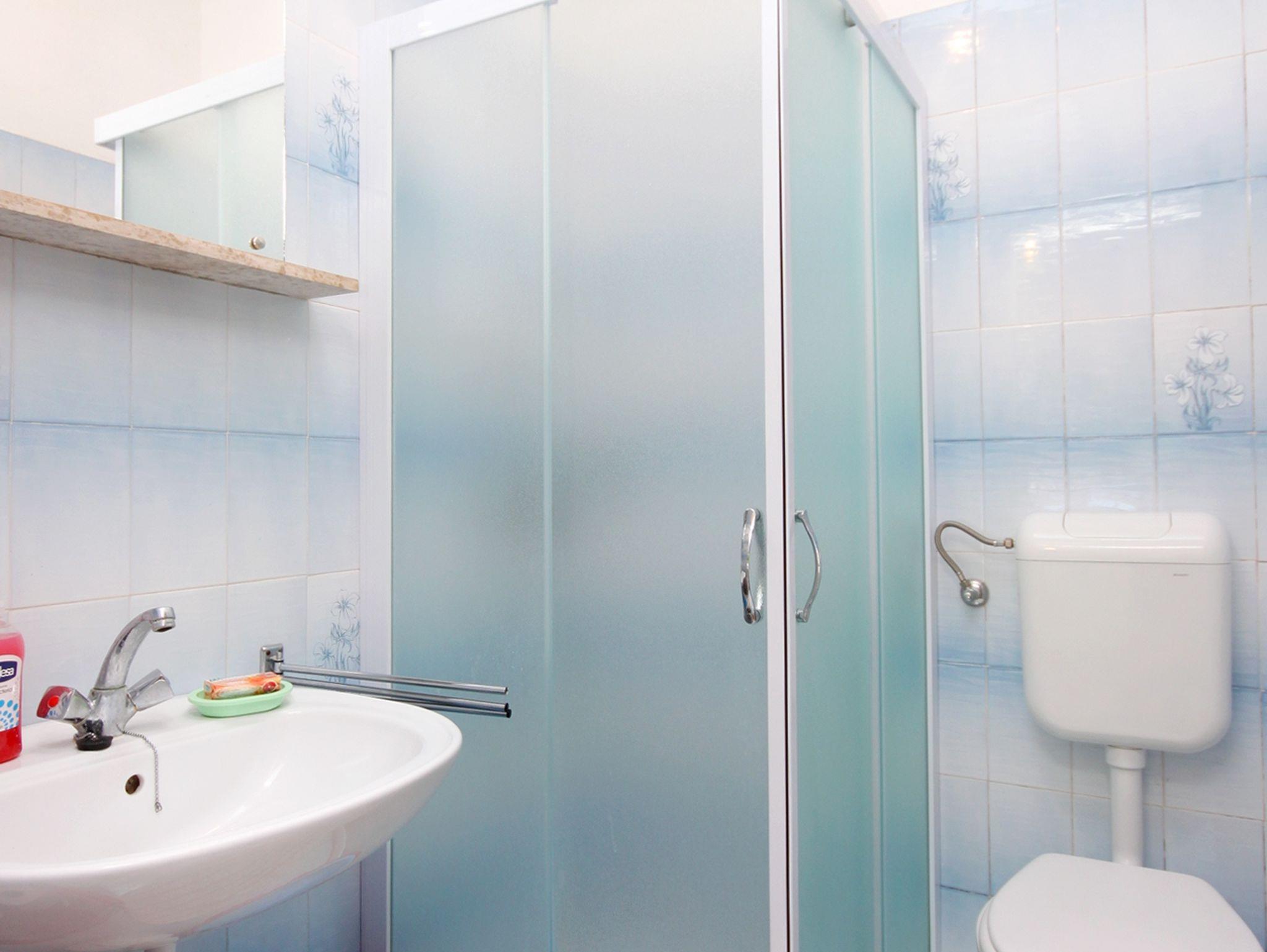 Ferienwohnung bietet Platz für 5 Gäste. Die Betten sind in Schlafzimmern, die es 2 gibt, und in Wohnzimmer, innerhalb einer Gesamtfläche von 46m2, angeordnet. Die Gäste haben eine eigene Terrasse zur Verfügung, auf der sie in warmen Sommernächten genießen können. Das Apartment bietet Meerblick. Es ist erlaubt, Speisen auf dem Gemeinschafts-Grill vorzubereiten. IM PREIS INBEGRIFFEN: Kurtaxe, Endreinigung, Klimatisierung, Parkplatz, Internet, Bootsanlegeplatz, Kinderbett, Föhn, tragbarer Grill, Liegestühle. VERBINDLICHE ZUSÄTZLICHE KOSTEN: Aufzahlung für Kurzaufenthalte (prozentualer Zuschlag pro Nächtigungsanzahl: 30% - 1, 20% - 2, 10% - 3). Die Verfügbarkeit zusätzlicher Dienstleistungen in Ihrem reservierten Termin und die Preise derselben (falls nicht aufgeführt) müssen im Voraus überprüft werden. Zusätzliche Dienstleistungen die in der Zahlungsaufforderung nicht aufgeführt sind werden direkt beim Vermieter bezahlt, angenommen der Gast nutzt auch diese.