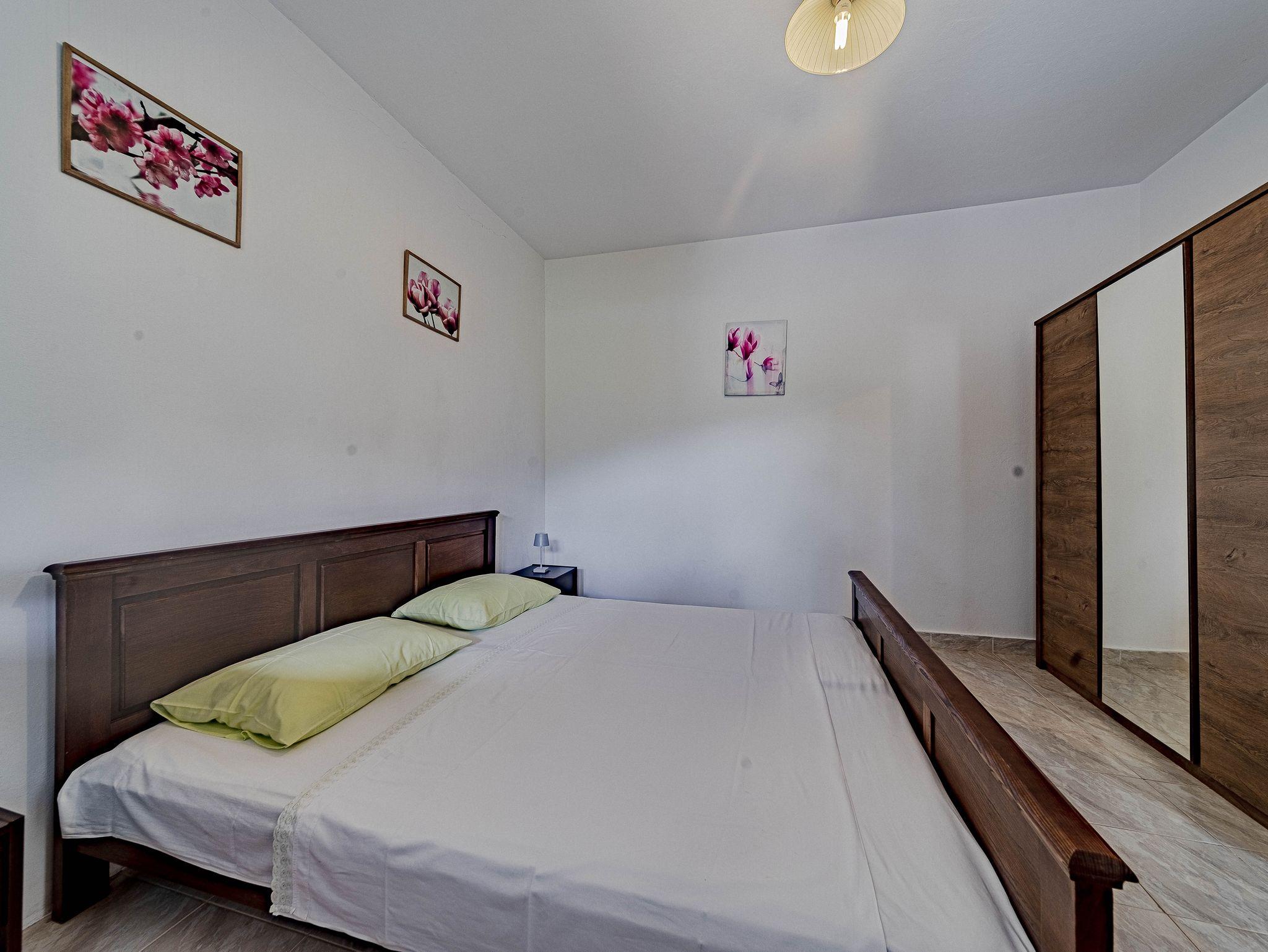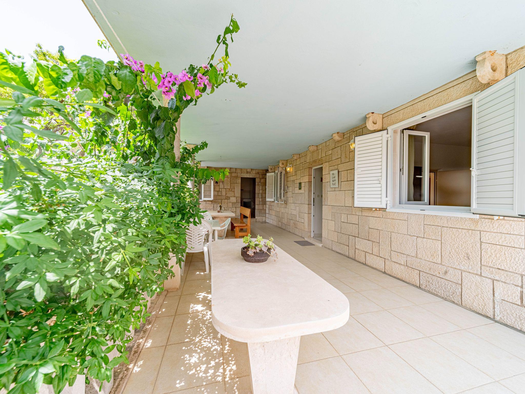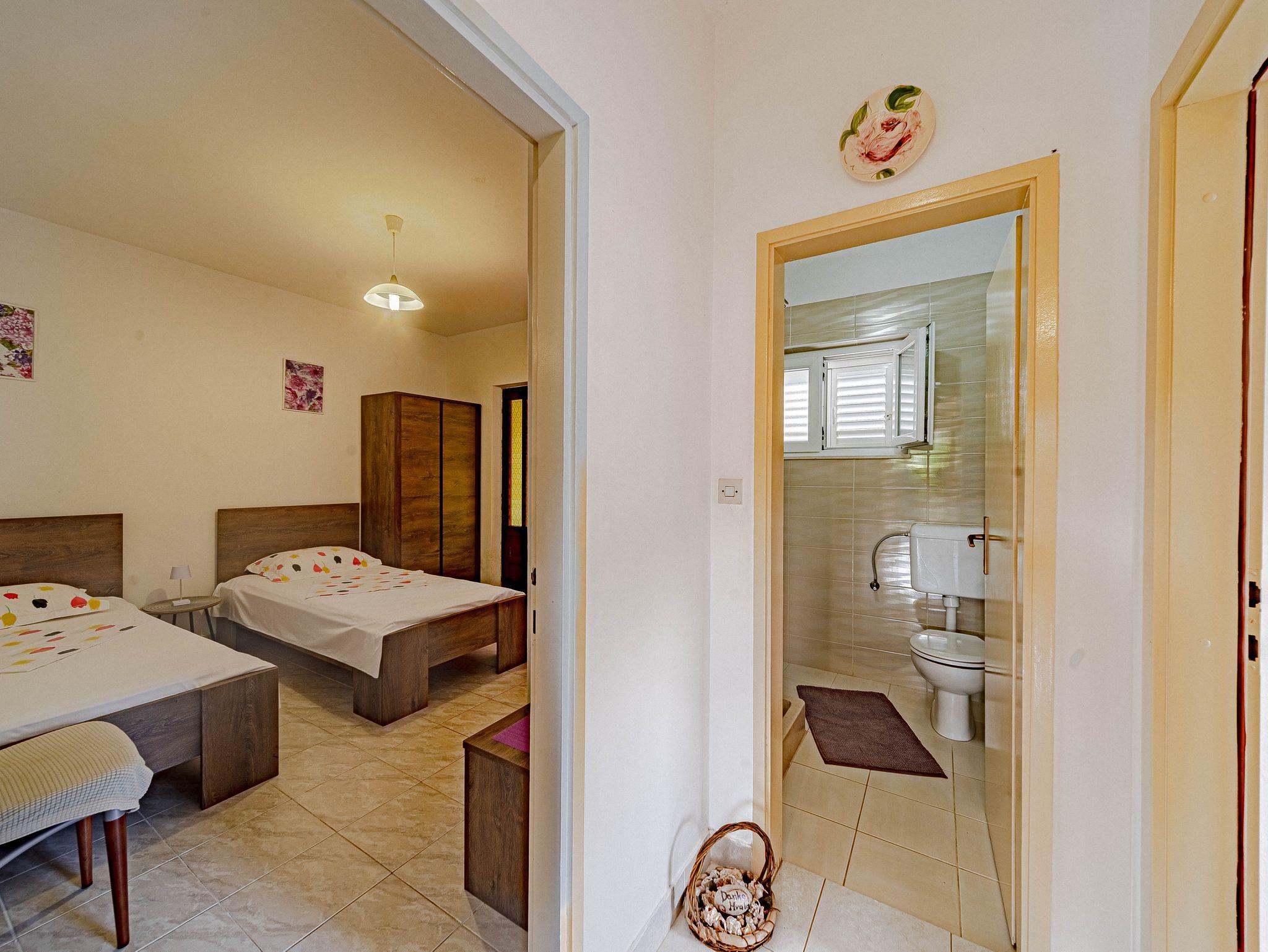 Haus bietet Platz für 9 Gäste. Die Betten sind in Schlafzimmern, die es 4 gibt, innerhalb einer Gesamtfläche von 85m2, angeordnet. Die Gäste haben eine eigene Terrasse zur Verfügung, auf der sie in warmen Sommernächten genießen können. Das Haus bietet Meerblick. Für vollen Genuss und Entspannung gibt es einen privaten Grill für Gäste dieser Unterkunft. IM PREIS INBEGRIFFEN: Kurtaxe, Endreinigung, Parkplatz, Bootsanlegeplatz, Liegestühle. VERBINDLICHE ZUSÄTZLICHE KOSTEN: Aufzahlung für Kurzaufenthalte (prozentualer Zuschlag pro Nächtigungsanzahl: 30% - 1, 20% - 2, 10% - 3). Die Verfügbarkeit zusätzlicher Dienstleistungen in Ihrem reservierten Termin und die Preise derselben (falls nicht aufgeführt) müssen im Voraus überprüft werden. Zusätzliche Dienstleistungen die in der Zahlungsaufforderung nicht aufgeführt sind werden direkt beim Vermieter bezahlt, angenommen der Gast nutzt auch diese.