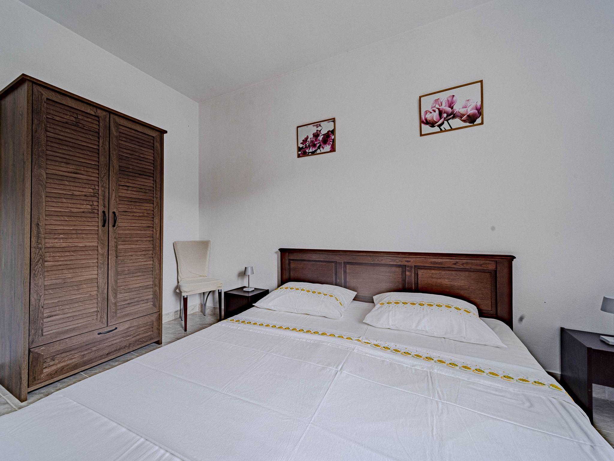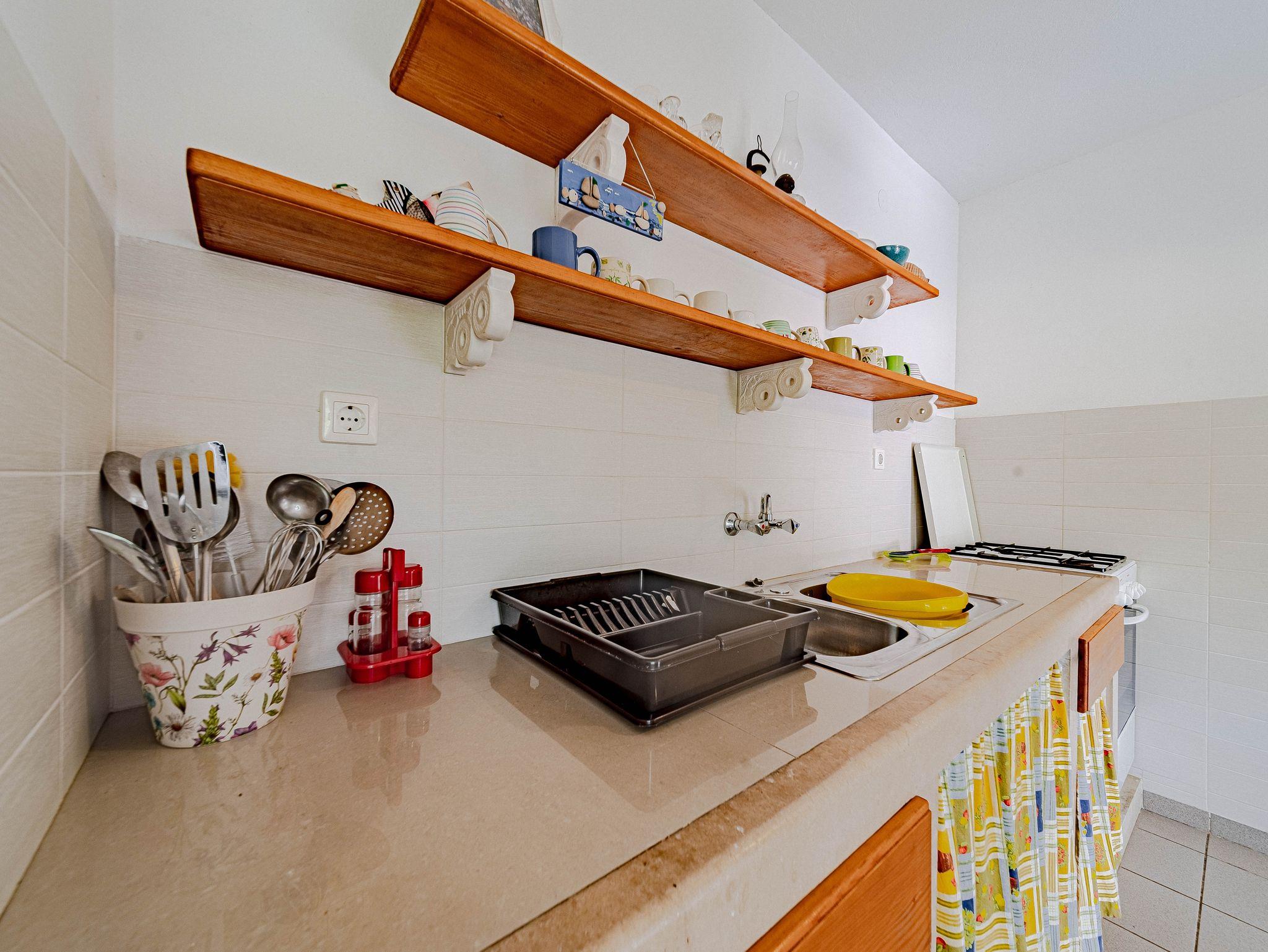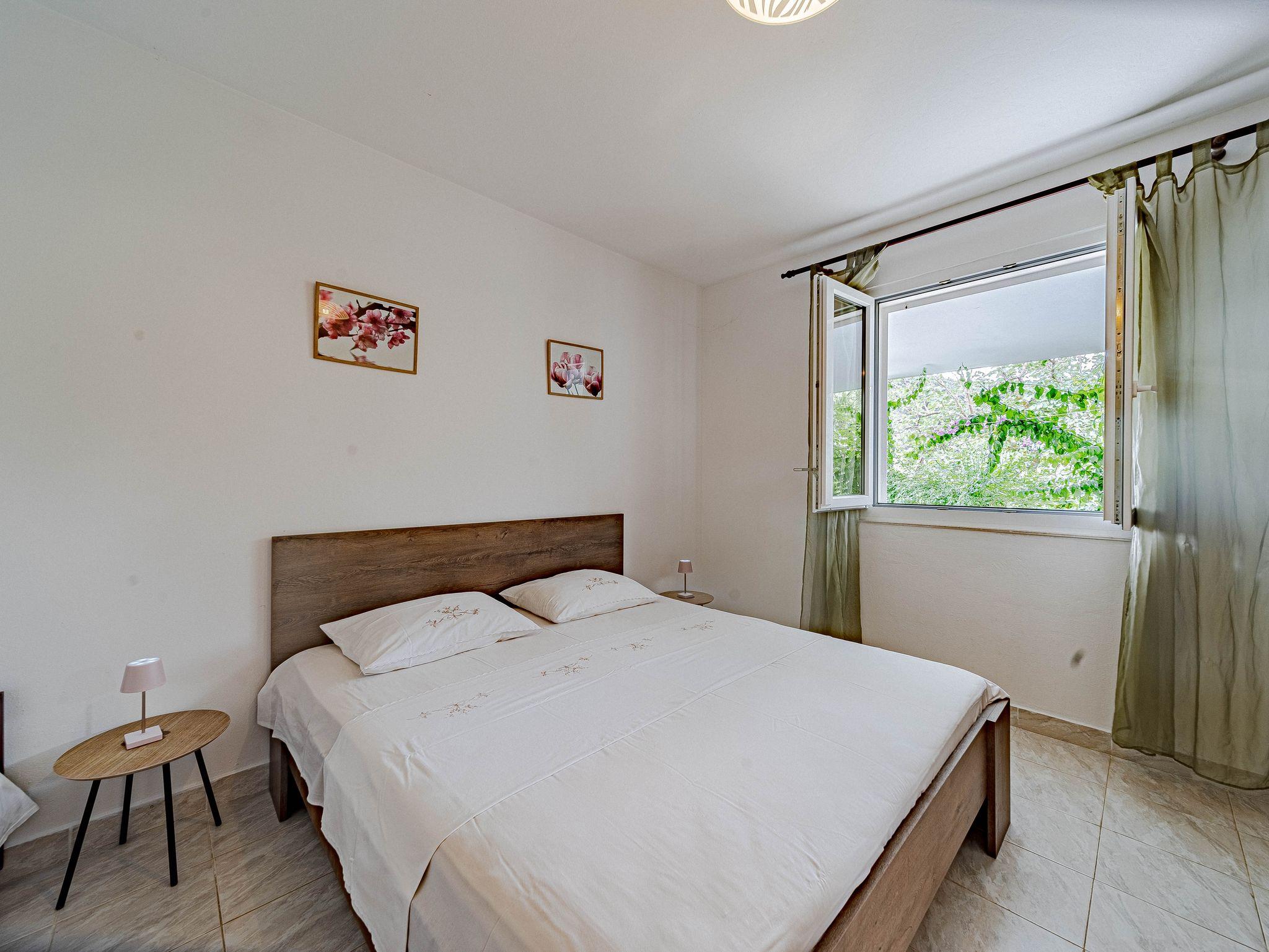 Haus bietet Platz für 9 Gäste. Die Betten sind in Schlafzimmern, die es 4 gibt, innerhalb einer Gesamtfläche von 85m2, angeordnet. Die Gäste haben eine eigene Terrasse zur Verfügung, auf der sie in warmen Sommernächten genießen können. Das Haus bietet Meerblick. Für vollen Genuss und Entspannung gibt es einen privaten Grill für Gäste dieser Unterkunft. IM PREIS INBEGRIFFEN: Kurtaxe, Endreinigung, Parkplatz, Bootsanlegeplatz, Liegestühle. VERBINDLICHE ZUSÄTZLICHE KOSTEN: Aufzahlung für Kurzaufenthalte (prozentualer Zuschlag pro Nächtigungsanzahl: 30% - 1, 20% - 2, 10% - 3). Die Verfügbarkeit zusätzlicher Dienstleistungen in Ihrem reservierten Termin und die Preise derselben (falls nicht aufgeführt) müssen im Voraus überprüft werden. Zusätzliche Dienstleistungen die in der Zahlungsaufforderung nicht aufgeführt sind werden direkt beim Vermieter bezahlt, angenommen der Gast nutzt auch diese.