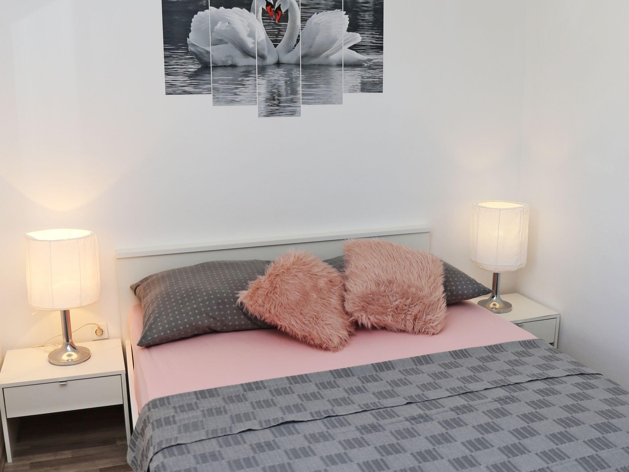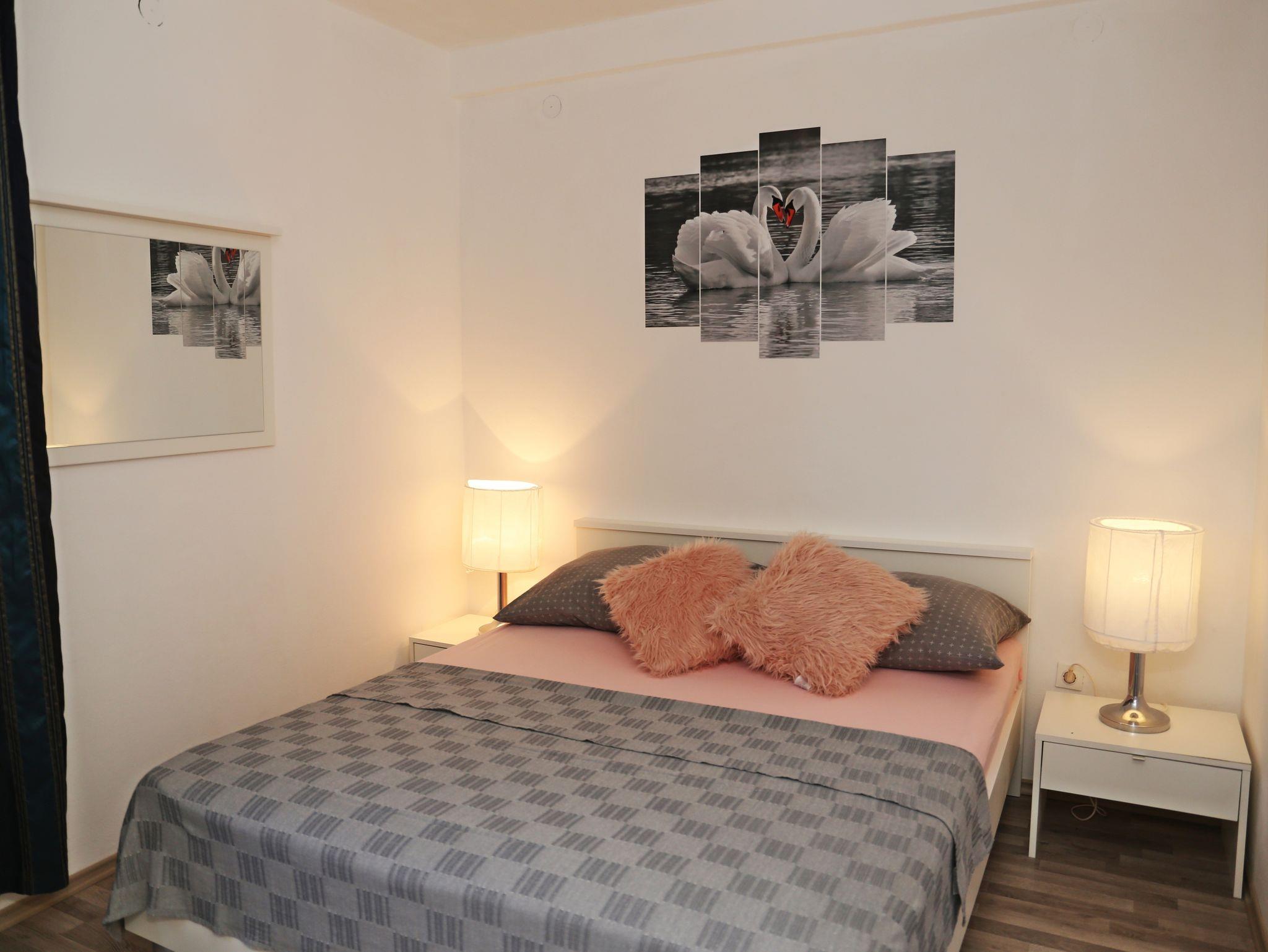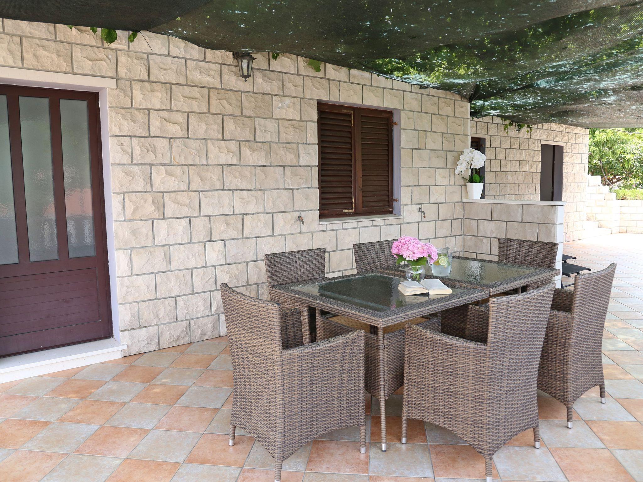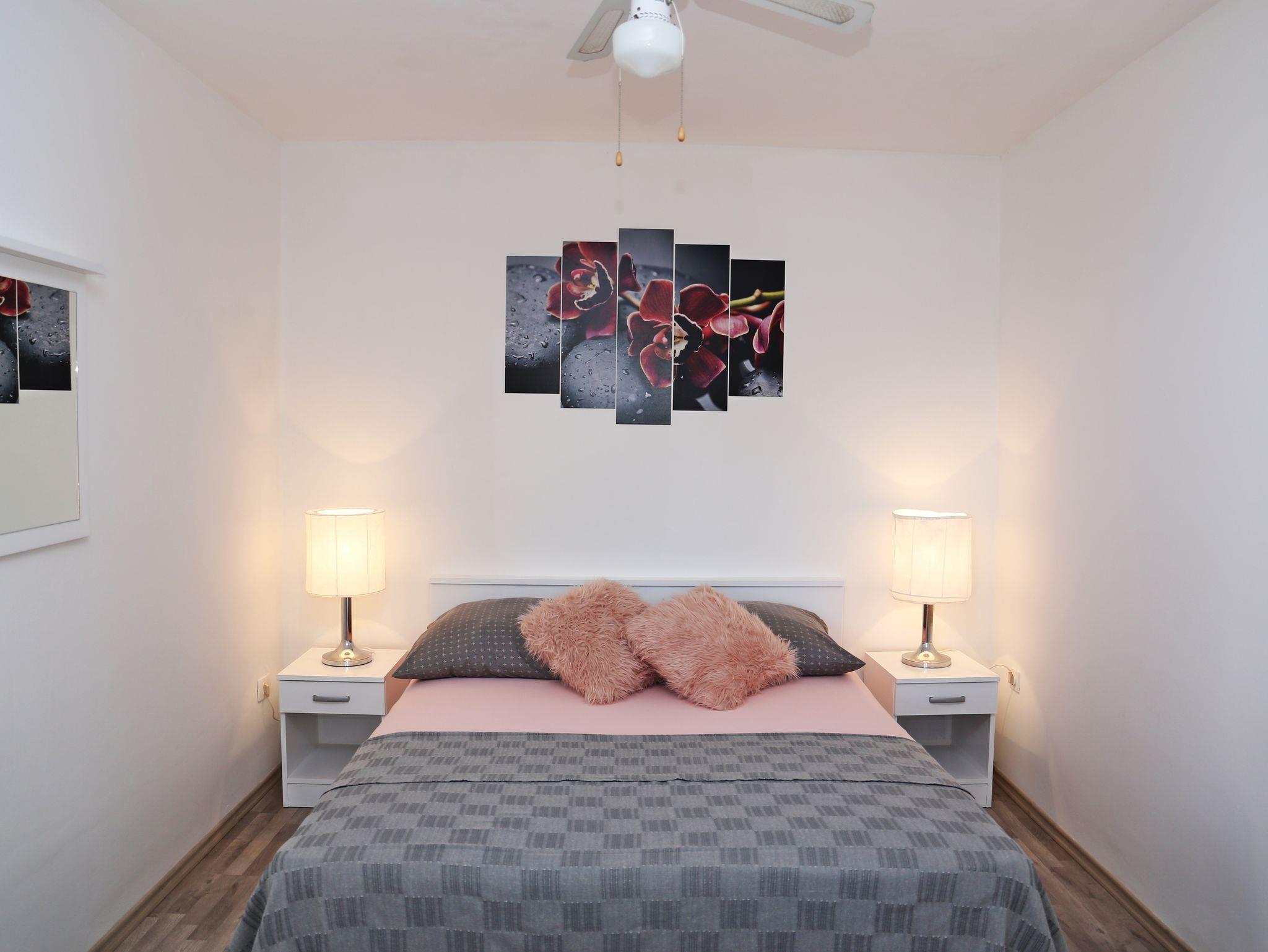 Ferienwohnung bietet Platz für 6 Gäste. Die Betten sind in Schlafzimmern, die es 3 gibt, innerhalb einer Gesamtfläche von 66m2, angeordnet. Die Gäste haben eine eigene Terrasse zur Verfügung, auf der sie in warmen Sommernächten genießen können. Das Apartment bietet Meerblick. Es ist erlaubt, Speisen auf dem Gemeinschafts-Grill vorzubereiten. Während ihres Aufenthalts können sich Gäste im privaten Schwimmbad entspannen. Räume der gebuchten Unterkunftseinheit werden nicht in eine Ganze verbunden. IM PREIS INBEGRIFFEN: Kurtaxe, Endreinigung, Klimatisierung, Pool, Parkplatz, Internet, Wäschewaschen, Bootsanlegeplatz, Kinderbett, Zusatzbett, Bügeleisen, Bügelbrett, Föhn, Sonnenschirm, Liegestühle. Die Verfügbarkeit zusätzlicher Dienstleistungen in Ihrem reservierten Termin und die Preise derselben (falls nicht aufgeführt) müssen im Voraus überprüft werden. Zusätzliche Dienstleistungen die in der Zahlungsaufforderung nicht aufgeführt sind werden direkt beim Vermieter bezahlt, angenommen der Gast nutzt auch diese.