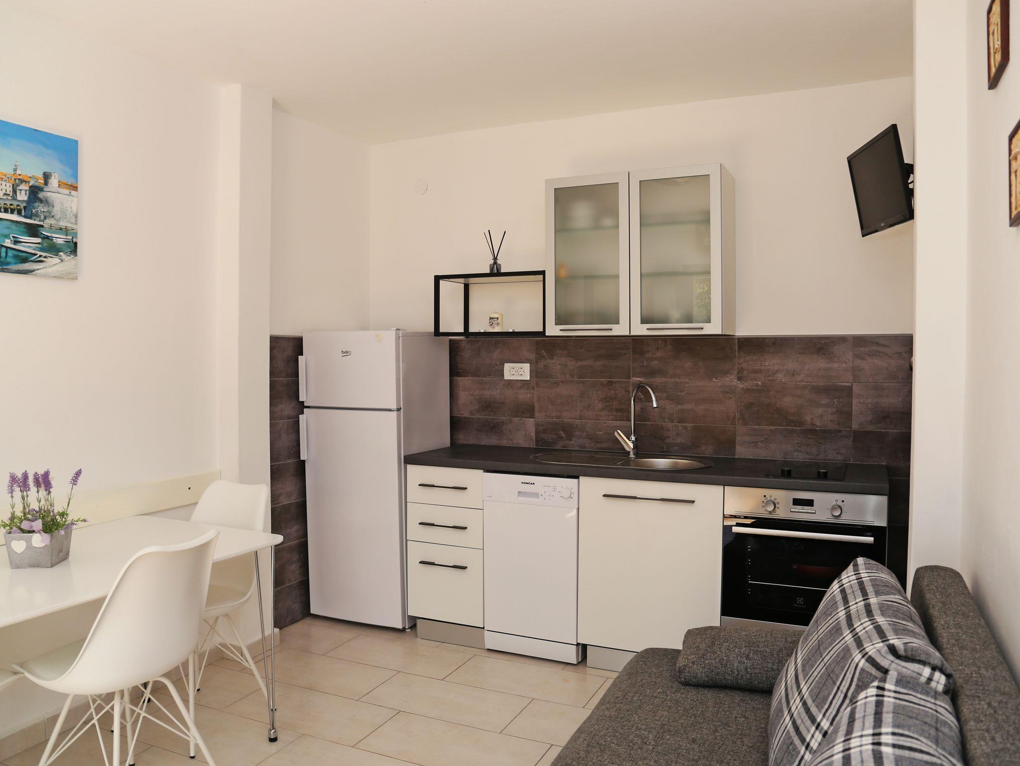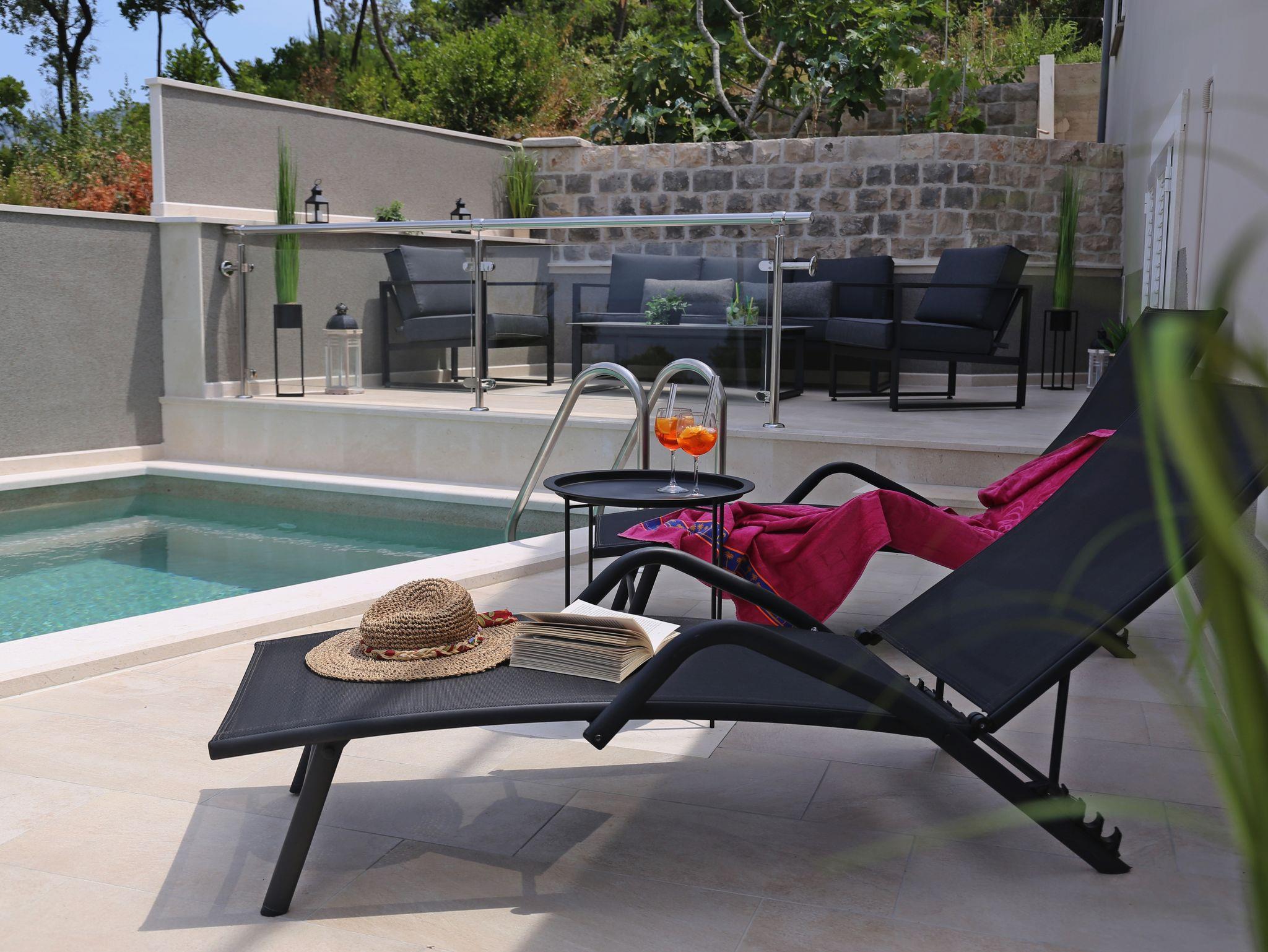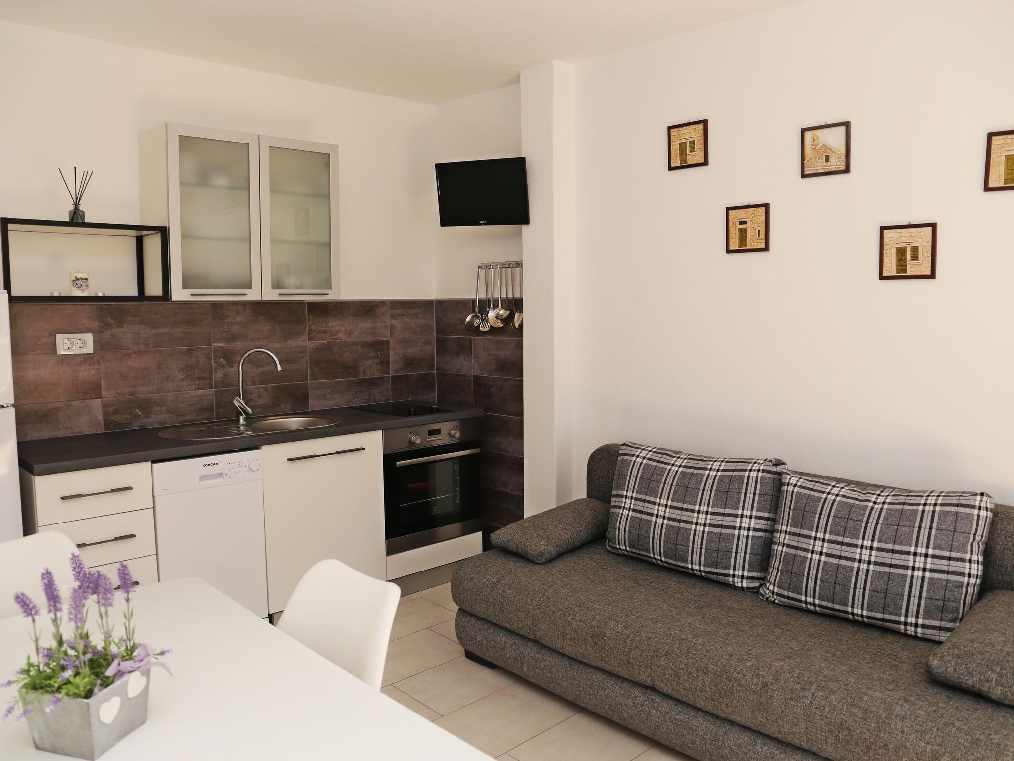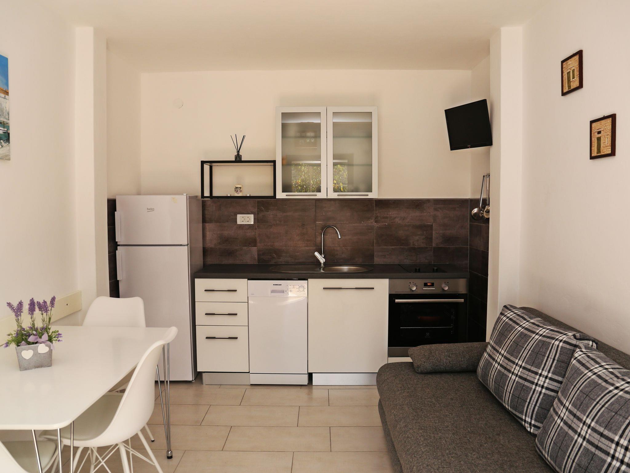 Ferienwohnung bietet Platz für 6 Gäste. Die Betten sind in Schlafzimmern, die es 3 gibt, innerhalb einer Gesamtfläche von 66m2, angeordnet. Die Gäste haben eine eigene Terrasse zur Verfügung, auf der sie in warmen Sommernächten genießen können. Das Apartment bietet Meerblick. Es ist erlaubt, Speisen auf dem Gemeinschafts-Grill vorzubereiten. Während ihres Aufenthalts können sich Gäste im privaten Schwimmbad entspannen. Räume der gebuchten Unterkunftseinheit werden nicht in eine Ganze verbunden. IM PREIS INBEGRIFFEN: Kurtaxe, Endreinigung, Klimatisierung, Pool, Parkplatz, Internet, Wäschewaschen, Bootsanlegeplatz, Kinderbett, Zusatzbett, Bügeleisen, Bügelbrett, Föhn, Sonnenschirm, Liegestühle. Die Verfügbarkeit zusätzlicher Dienstleistungen in Ihrem reservierten Termin und die Preise derselben (falls nicht aufgeführt) müssen im Voraus überprüft werden. Zusätzliche Dienstleistungen die in der Zahlungsaufforderung nicht aufgeführt sind werden direkt beim Vermieter bezahlt, angenommen der Gast nutzt auch diese.