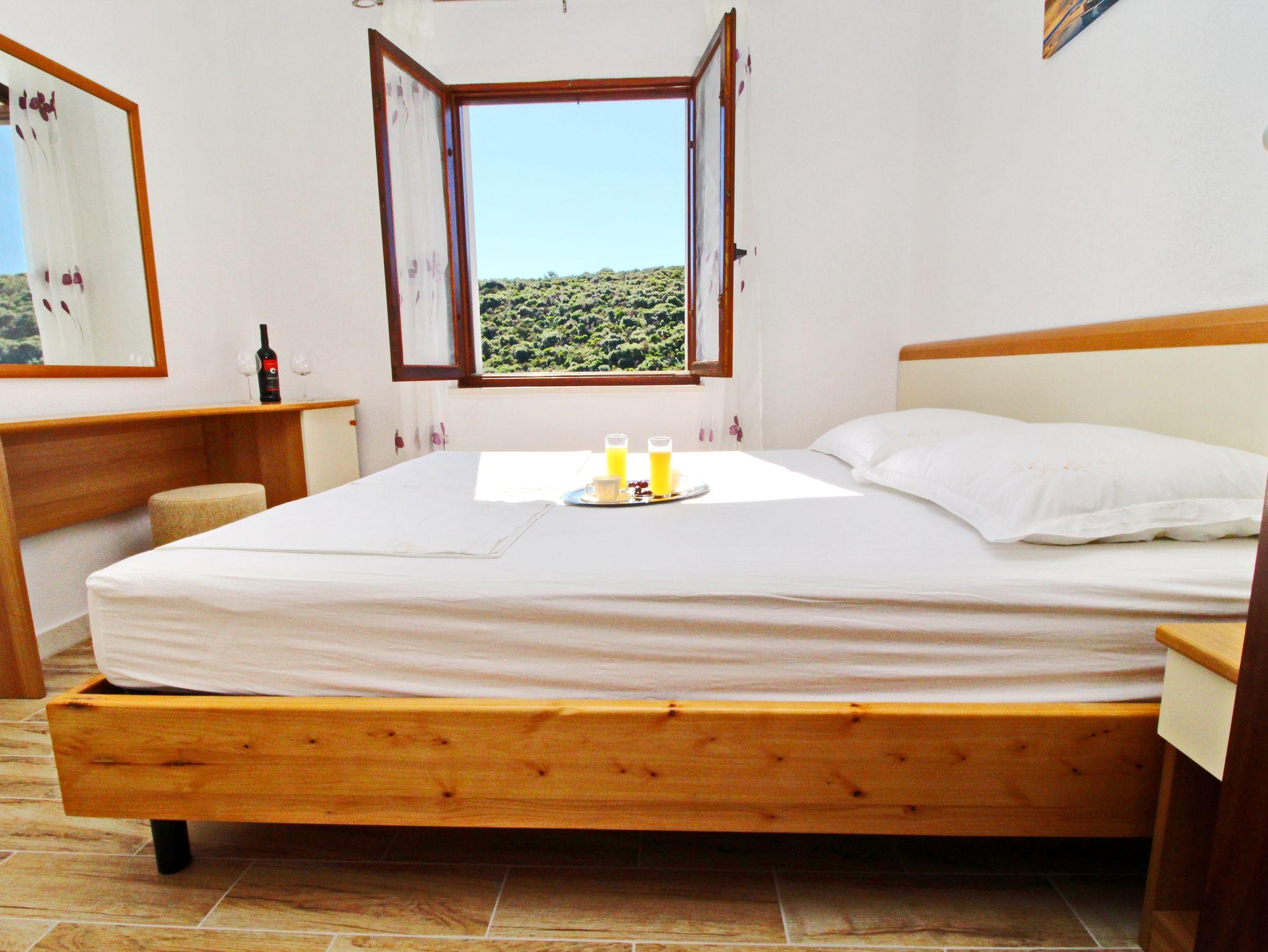 Ferienwohnung bietet Platz für 6 Gäste. Die Betten sind in Schlafzimmern, die es 2 gibt, und in Wohnzimmer, innerhalb einer Gesamtfläche von 55m2, angeordnet. Die Gäste haben eine eigene Terrasse zur Verfügung, auf der sie in warmen Sommernächten genießen können. Das Apartment bietet Meerblick. Für vollen Genuss und Entspannung gibt es einen privaten Grill für Gäste dieser Unterkunft. Während ihres Aufenthalts können sich Gäste im privaten Schwimmbad entspannen. IM PREIS INBEGRIFFEN: Kurtaxe, Endreinigung, Pool, Parkplatz, Bootsanlegeplatz, Liegestühle. VERBINDLICHE ZUSÄTZLICHE KOSTEN: Aufzahlung für Kurzaufenthalte (prozentualer Zuschlag pro Nächtigungsanzahl: 30% - 1, 20% - 2, 10% - 3). Die Verfügbarkeit zusätzlicher Dienstleistungen in Ihrem reservierten Termin und die Preise derselben (falls nicht aufgeführt) müssen im Voraus überprüft werden. Zusätzliche Dienstleistungen die in der Zahlungsaufforderung nicht aufgeführt sind werden direkt beim Vermieter bezahlt, angenommen der Gast nutzt auch diese.
