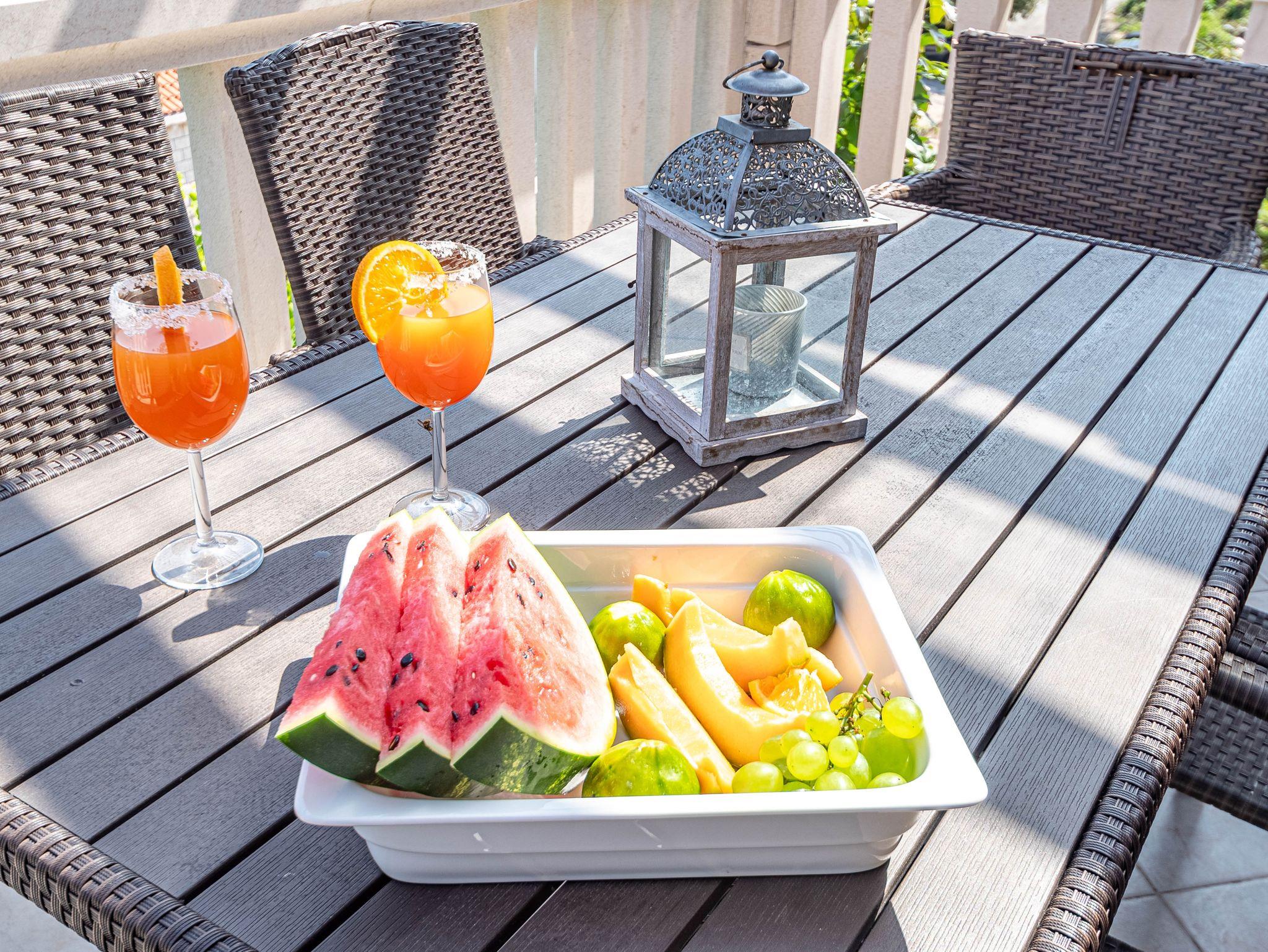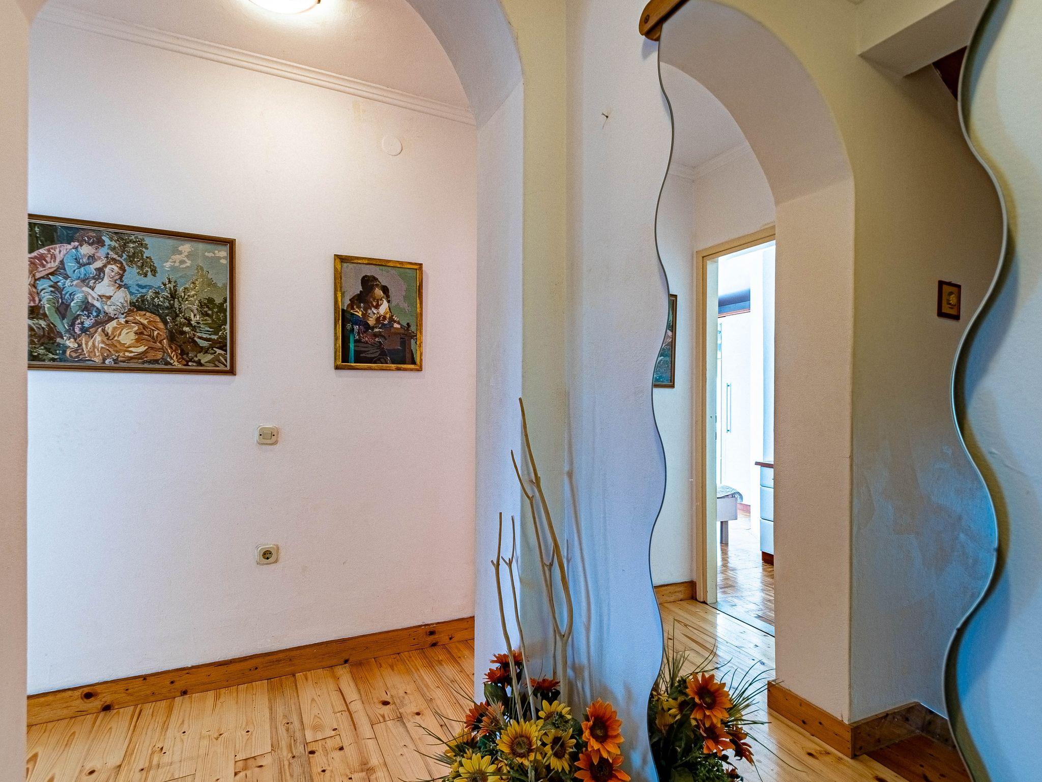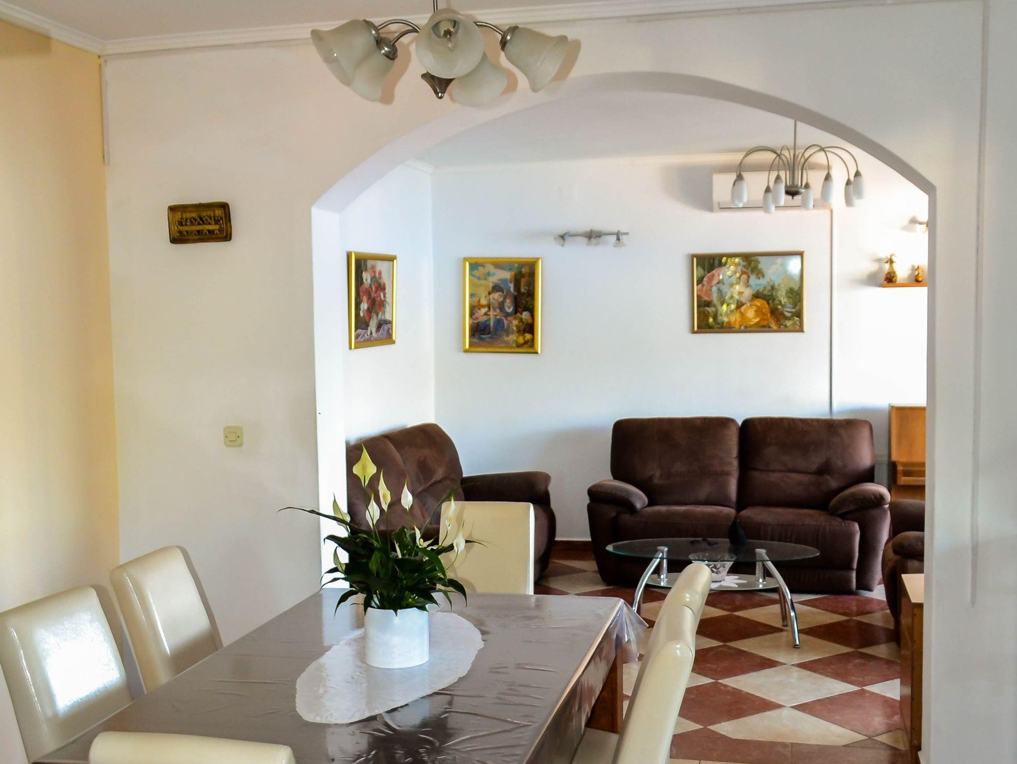 Ferienwohnung bietet Platz für 6 Gäste. Die Betten sind in Schlafzimmern, die es 3 gibt, innerhalb einer Gesamtfläche von 89m2, angeordnet. Die Gäste haben eine eigene Terrasse zur Verfügung, auf der sie in warmen Sommernächten genießen können. Das Apartment bietet Meerblick. Es ist erlaubt, Speisen auf dem Gemeinschafts-Grill vorzubereiten. IM PREIS INBEGRIFFEN: Kurtaxe, Endreinigung, Klimatisierung, Zentralheizung, Parkplatz, Garage, Internet, Wäschewaschen, Bootsanlegeplatz, Kinderbett, Bügeleisen, Bügelbrett, Föhn, tragbarer Grill, Sonnenschirm, Liegestühle. VERBINDLICHE ZUSÄTZLICHE KOSTEN: Aufzahlung für Kurzaufenthalte (prozentualer Zuschlag pro Nächtigungsanzahl: 30% - 1, 20% - 2, 10% - 3). UNVERBINDLICHE ZUSÄTZLICHE KOSTEN: Frühstück (10,00 €, 50% Nachlass für Kinder zwischen 4 und 12 Jahren, Kinder bis 4 Jahre sind frei.), Halbpension (30,00 €, 50% Nachlass für Kinder zwischen 4 und 12 Jahren, Kinder bis 4 Jahre sind frei.). Die Verfügbarkeit zusätzlicher Dienstleistungen in Ihrem reservierten Termin und die Preise derselben (falls nicht aufgeführt) müssen im Voraus überprüft werden. Zusätzliche Dienstleistungen die in der Zahlungsaufforderung nicht aufgeführt sind werden direkt beim Vermieter bezahlt, angenommen der Gast nutzt auch diese.