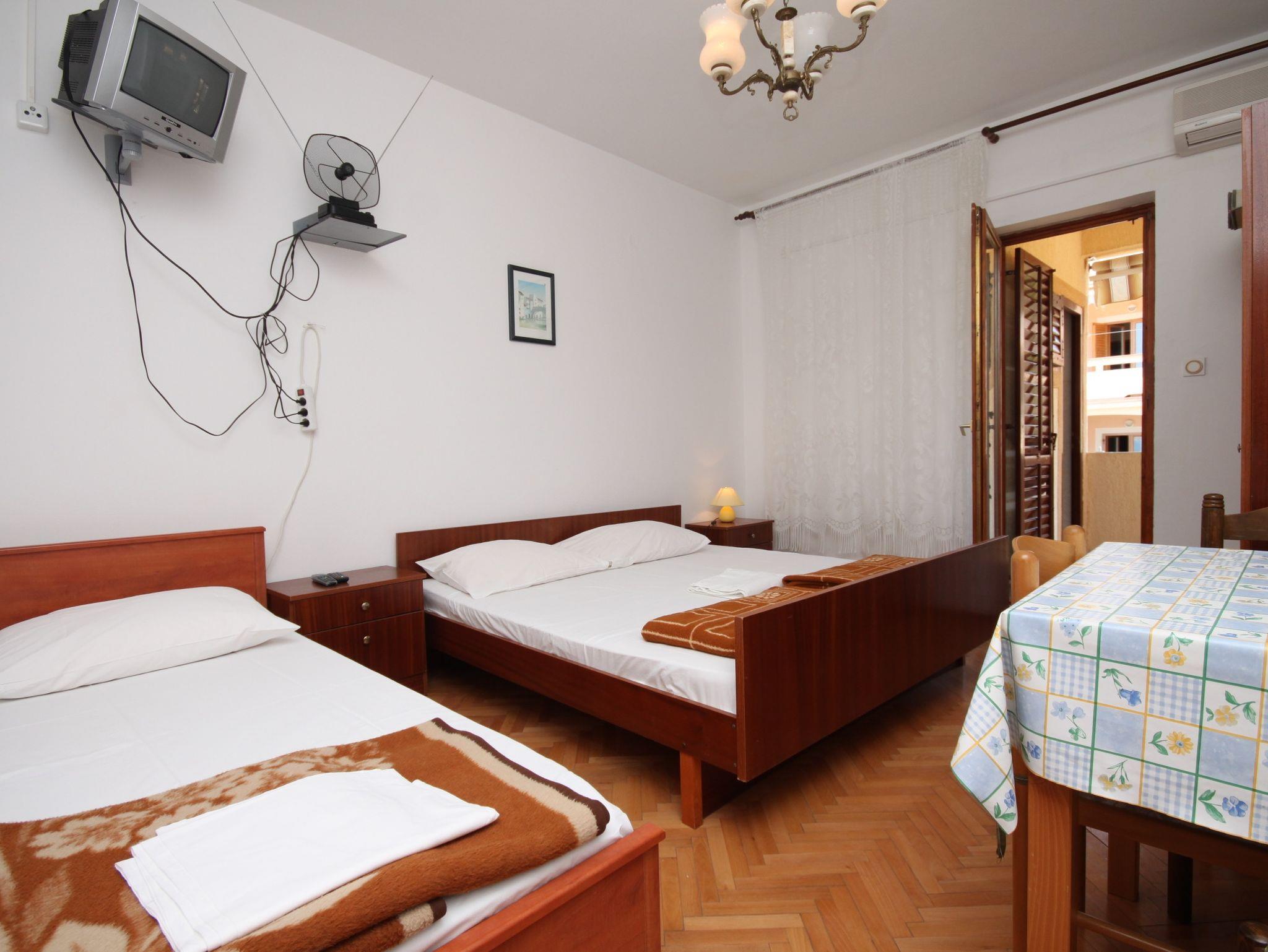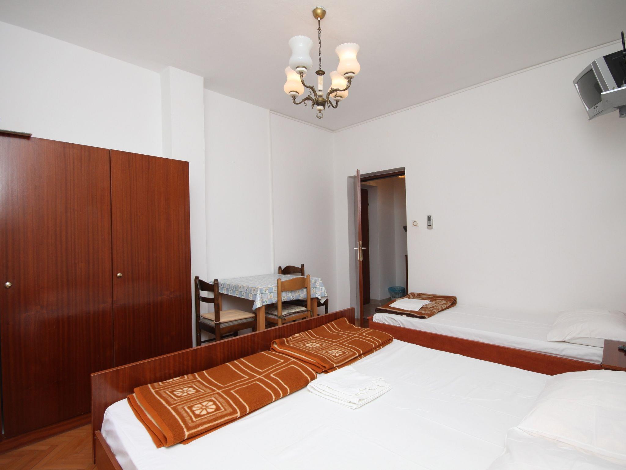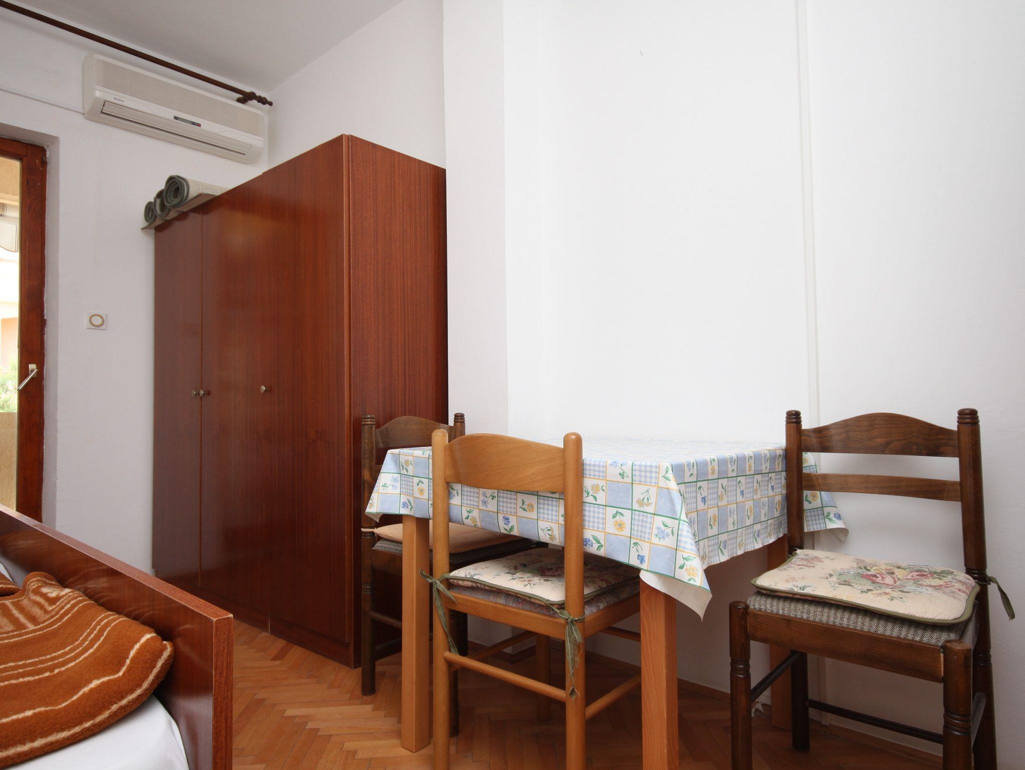 Studio bietet Platz für 3 Gäste. Die Betten sind in Schlafzimmern, die es 1 gibt, innerhalb einer Gesamtfläche von 23m2, angeordnet. Die Gäste haben eine eigene Terrasse zur Verfügung, auf der sie in warmen Sommernächten genießen können. Es ist erlaubt, Speisen auf dem Gemeinschafts-Grill vorzubereiten. IM PREIS INBEGRIFFEN: Kurtaxe, Endreinigung, Klimatisierung, Parkplatz, Internet, Bootsanlegeplatz. VERBINDLICHE ZUSÄTZLICHE KOSTEN: Aufzahlung für Kurzaufenthalte (prozentualer Zuschlag pro Nächtigungsanzahl: 30% - 1, 20% - 2, 10% - 3). Die Verfügbarkeit zusätzlicher Dienstleistungen in Ihrem reservierten Termin und die Preise derselben (falls nicht aufgeführt) müssen im Voraus überprüft werden. Zusätzliche Dienstleistungen die in der Zahlungsaufforderung nicht aufgeführt sind werden direkt beim Vermieter bezahlt, angenommen der Gast nutzt auch diese. Ermäßigung auf den Grundpreis: Gratistag 14=13 (bei einem Aufenthalt von 14 Tagen oder mehr erhalten Sie einen Gratistag für den Aufenthalt bis 31.12.26).