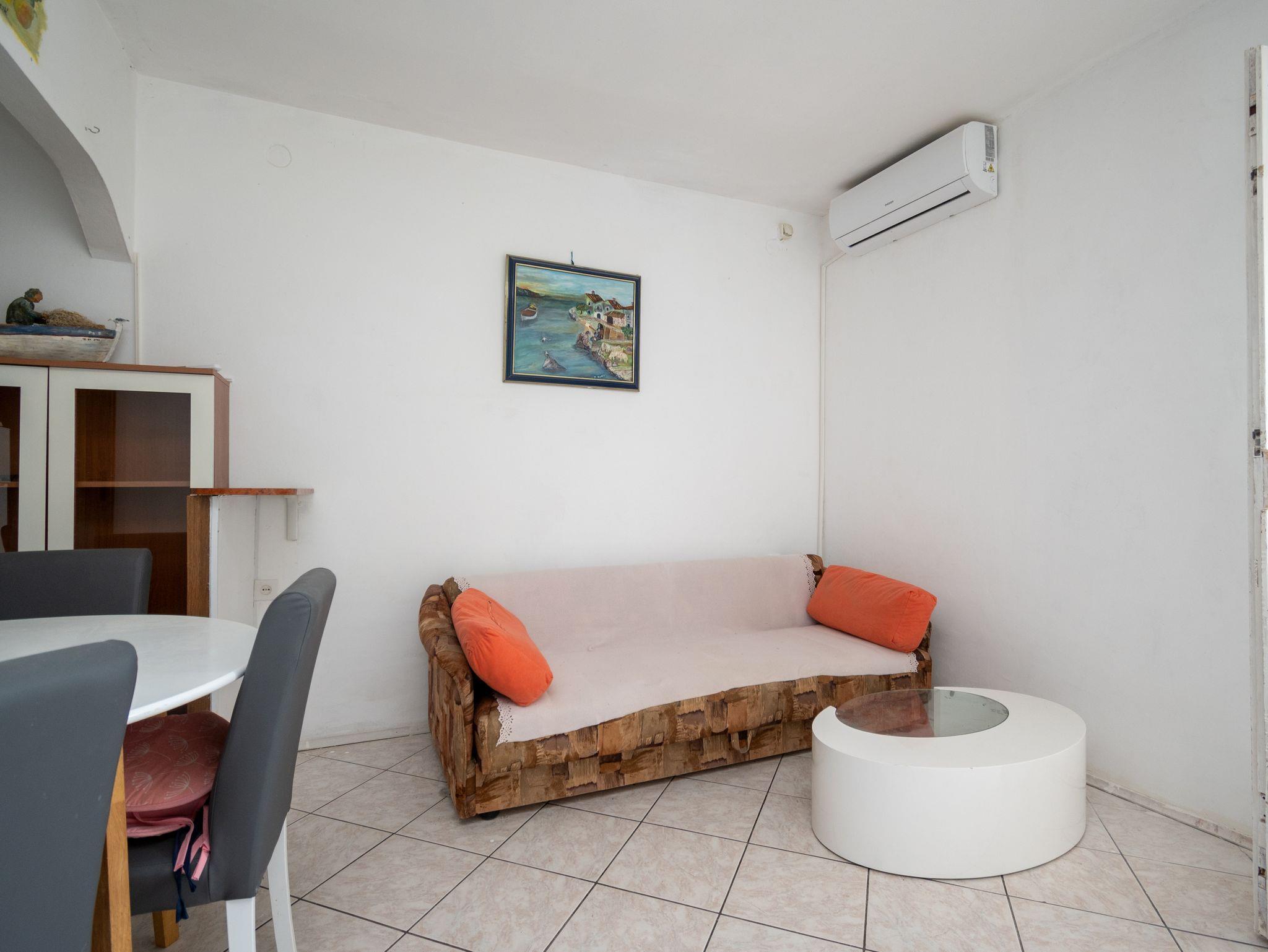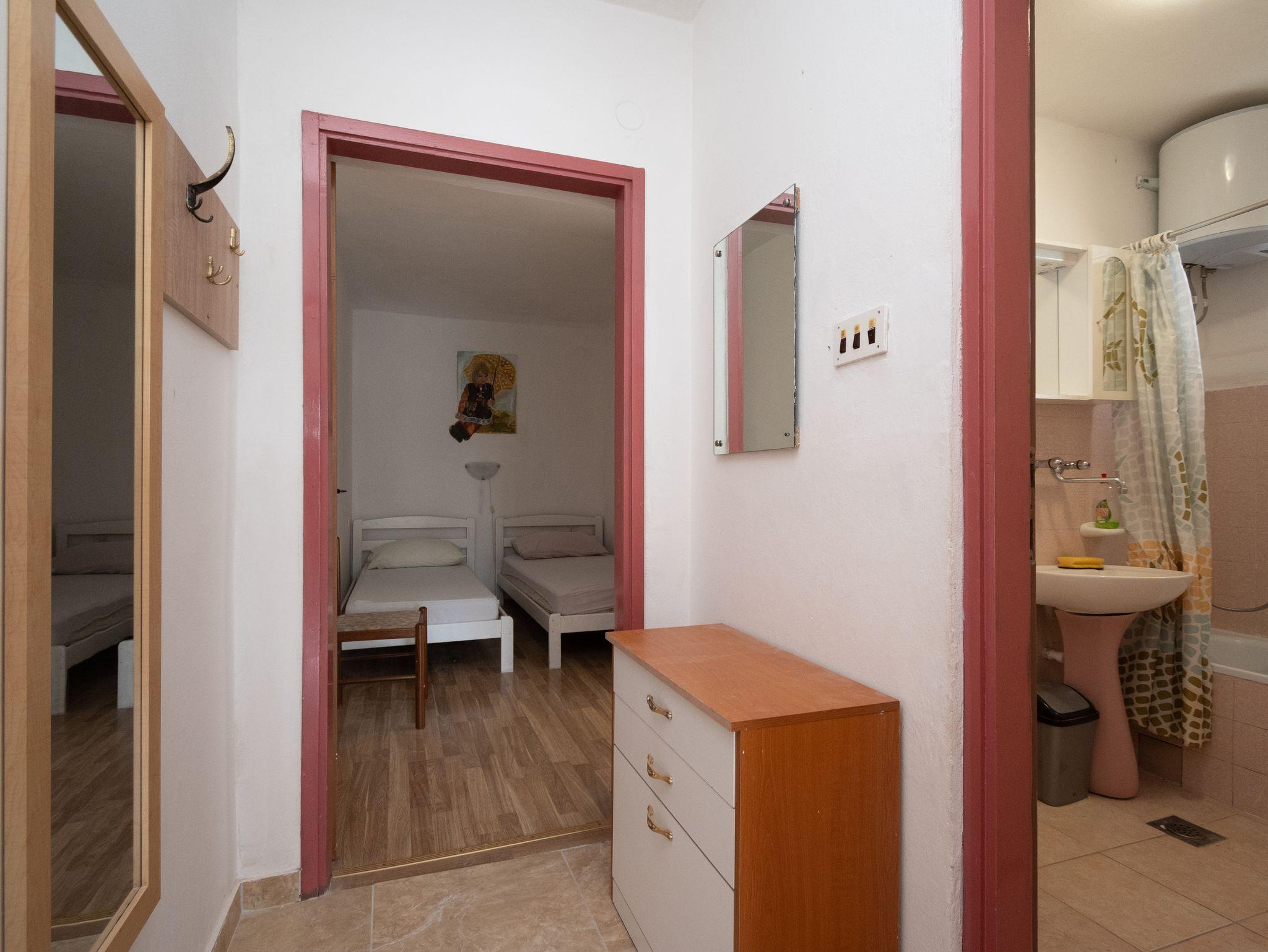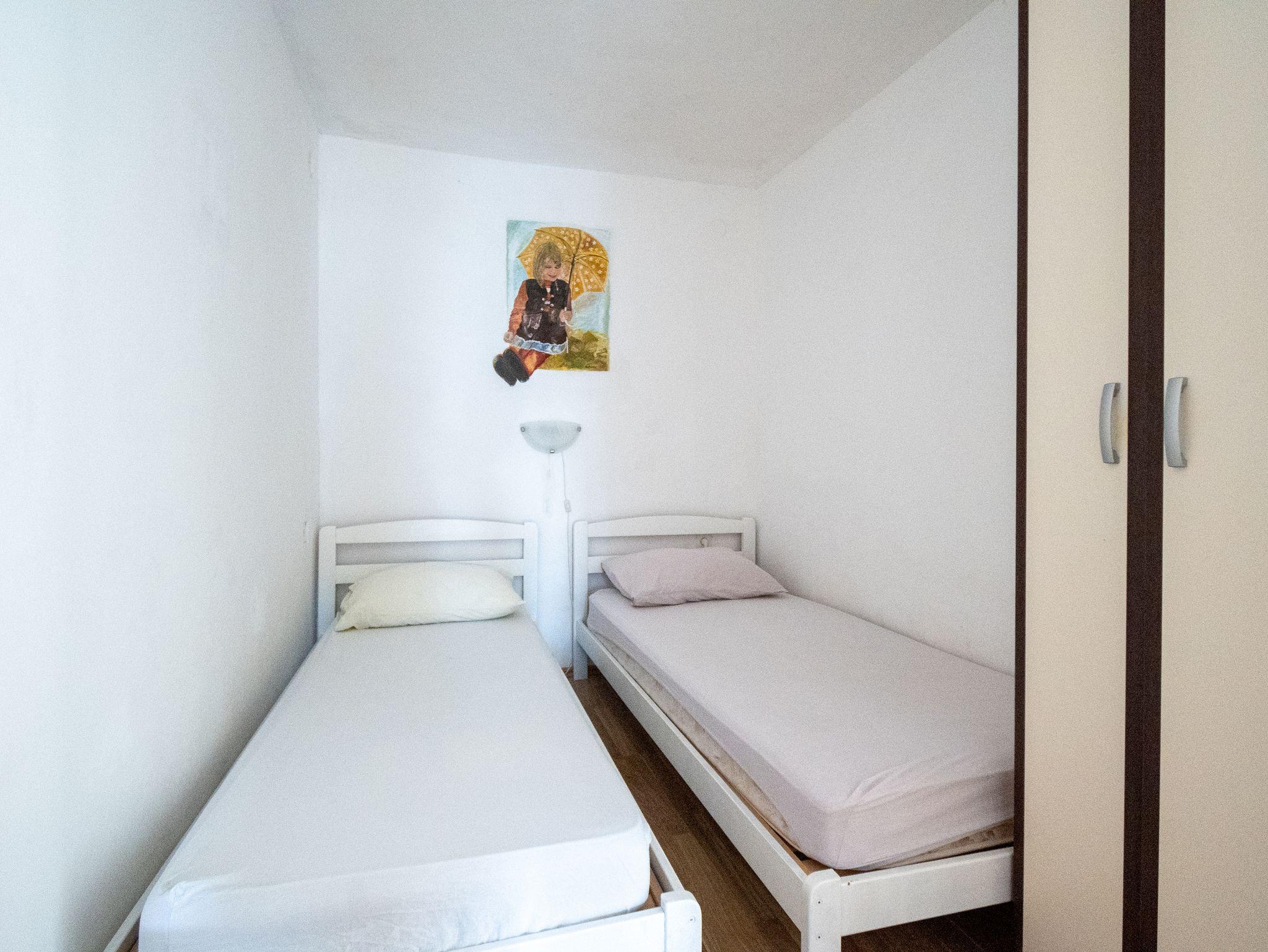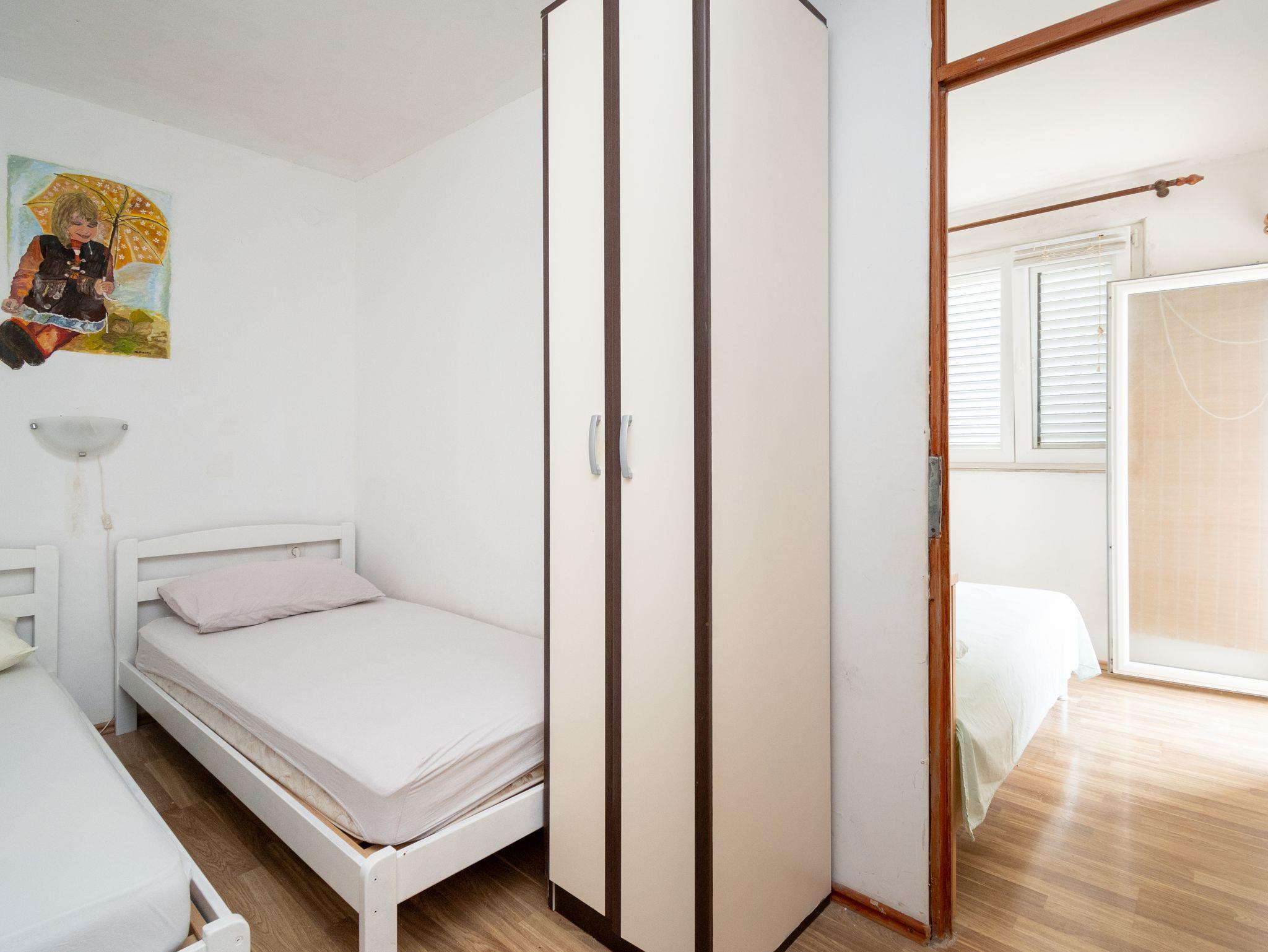 Ferienwohnung bietet Platz für 4 Gäste. Die Betten sind in Schlafzimmern, die es 2 gibt, innerhalb einer Gesamtfläche von 40m2, angeordnet. Die Gäste haben eine eigene Terrasse zur Verfügung, auf der sie in warmen Sommernächten genießen können. Das Apartment bietet Meerblick. Es ist erlaubt, Speisen auf dem Gemeinschafts-Grill vorzubereiten. In der Unterkunftseinheit besteht die Möglichkeit des Mitbringens von Haustieren gegen Aufpreis. Durch das Schlafzimmer der gebuchten Unterkunftseinheit geht man in die andere Räume der Einheit. IM PREIS INBEGRIFFEN: Kurtaxe, Endreinigung, Klimatisierung, Parkplatz, Internet, Bootsanlegeplatz, Bügeleisen, Bügelbrett, Föhn. UNVERBINDLICHE ZUSÄTZLICHE KOSTEN: Wäschewaschen (5,00 € Waschen), Haustiere (5,00 € pro Nacht), 1 Bett für Kinder (5,00 € Person/Tag). Die Verfügbarkeit zusätzlicher Dienstleistungen in Ihrem reservierten Termin und die Preise derselben (falls nicht aufgeführt) müssen im Voraus überprüft werden. Zusätzliche Dienstleistungen die in der Zahlungsaufforderung nicht aufgeführt sind werden direkt beim Vermieter bezahlt, angenommen der Gast nutzt auch diese. Ermäßigung auf den Grundpreis: Gratistag 14=13 (bei einem Aufenthalt von 14 Tagen oder mehr erhalten Sie einen Gratistag für den Aufenthalt bis 31.12.26).