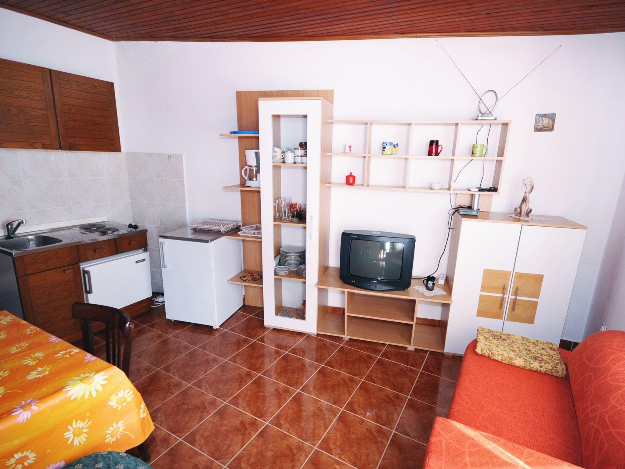 Ferienwohnung bietet Platz für 4 Gäste. Die Betten sind in Schlafzimmern, die es 1 gibt, und in Esszimmer, innerhalb einer Gesamtfläche von 28m2, angeordnet. Die Gäste haben eine eigene Terrasse zur Verfügung, auf der sie in warmen Sommernächten genießen können. Das Apartment bietet Meerblick. Es ist erlaubt, Speisen auf dem Gemeinschafts-Grill vorzubereiten. Durch die Terrasse der gebuchten Unterkunftseinheit gehen auch andere Gäste oder Vermieter. In der gebuchten Unterkunftseinheit zahlt man am Ort ein Depositum ( der Preis ist an der Internetseite angeführt ). IM PREIS INBEGRIFFEN: Kurtaxe, Endreinigung, Parkplatz, Internet, Kinderbett, Bügelbrett, Föhn. VERBINDLICHE ZUSÄTZLICHE KOSTEN: Kaution (100,00 € Einmalzahlung), Aufzahlung für Kurzaufenthalte (prozentualer Zuschlag pro Nächtigungsanzahl: 30% - 1, 20% - 2, 10% - 3). UNVERBINDLICHE ZUSÄTZLICHE KOSTEN: Klimatisierung (2,00 € pro Nacht), Bootsanlegeplatz (5,00 € pro Nacht). Die Verfügbarkeit zusätzlicher Dienstleistungen in Ihrem reservierten Termin und die Preise derselben (falls nicht aufgeführt) müssen im Voraus überprüft werden. Zusätzliche Dienstleistungen die in der Zahlungsaufforderung nicht aufgeführt sind werden direkt beim Vermieter bezahlt, angenommen der Gast nutzt auch diese.