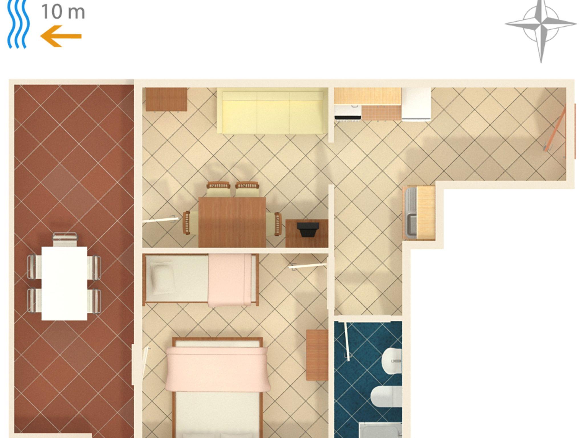 Ferienwohnung bietet Platz für 4 Gäste. Die Betten sind in Schlafzimmern, die es 1 gibt, und in Wohnzimmer, innerhalb einer Gesamtfläche von 40m2, angeordnet. Die Gäste haben eine eigene Terrasse zur Verfügung, auf der sie in warmen Sommernächten genießen können. Das Apartment bietet Meerblick. Es ist erlaubt, Speisen auf dem Gemeinschafts-Grill vorzubereiten. IM PREIS INBEGRIFFEN: Kurtaxe, Endreinigung, Parkplatz, Internet, Bootsanlegeplatz. VERBINDLICHE ZUSÄTZLICHE KOSTEN: Aufzahlung für Kurzaufenthalte (prozentualer Zuschlag pro Nächtigungsanzahl: 30% - 1, 20% - 2, 10% - 3). UNVERBINDLICHE ZUSÄTZLICHE KOSTEN: Klimatisierung (5,00 € pro Nacht), Zusatzbett (10,00 € pro Nacht). Die Verfügbarkeit zusätzlicher Dienstleistungen in Ihrem reservierten Termin und die Preise derselben (falls nicht aufgeführt) müssen im Voraus überprüft werden. Zusätzliche Dienstleistungen die in der Zahlungsaufforderung nicht aufgeführt sind werden direkt beim Vermieter bezahlt, angenommen der Gast nutzt auch diese.