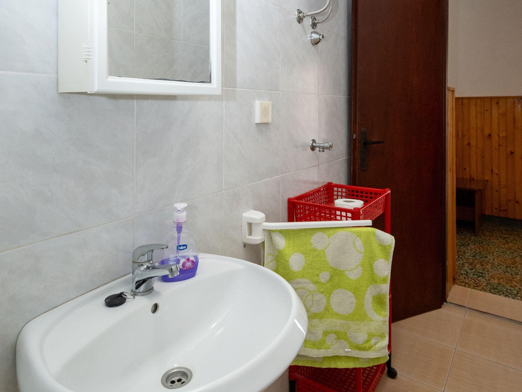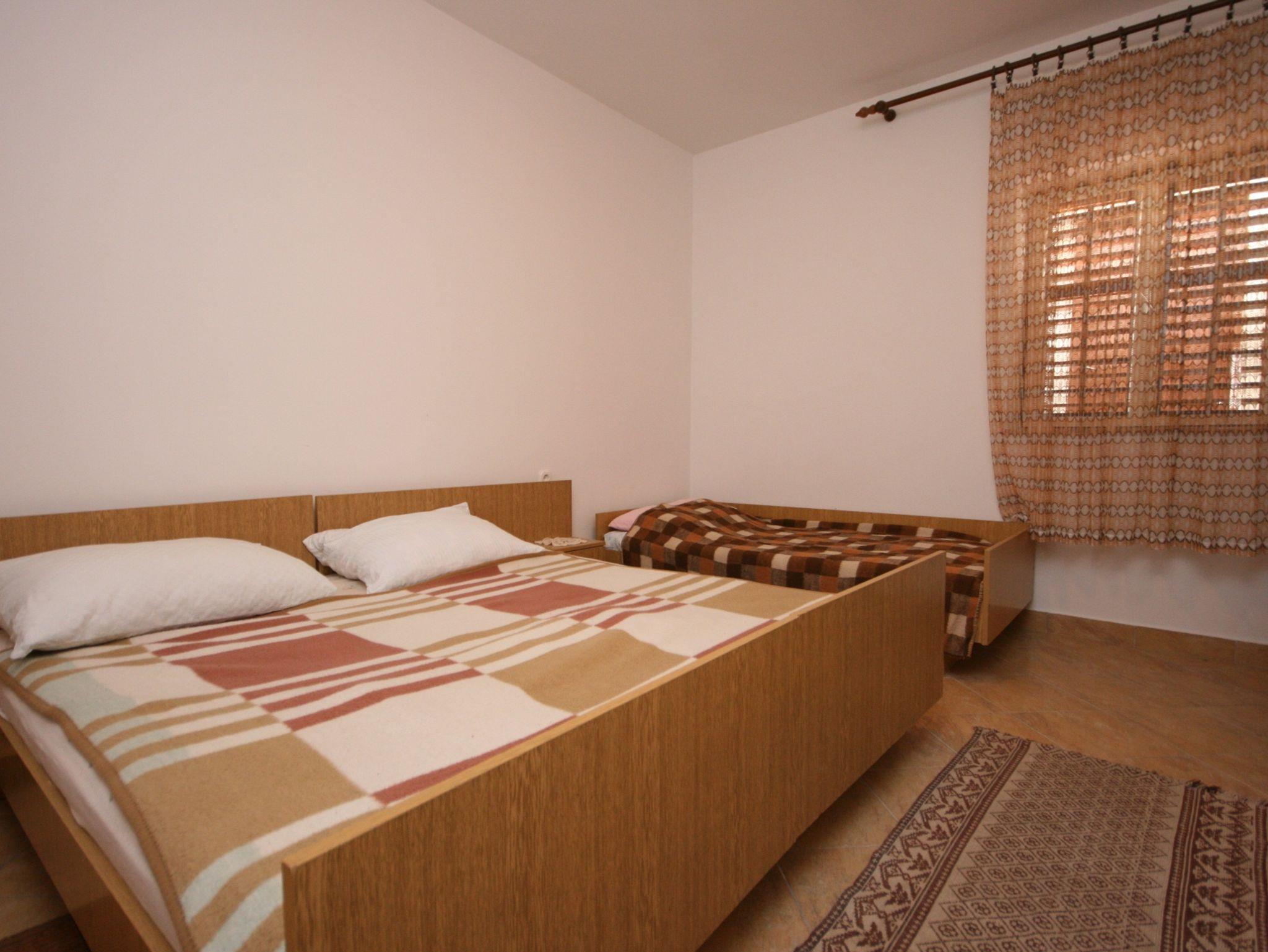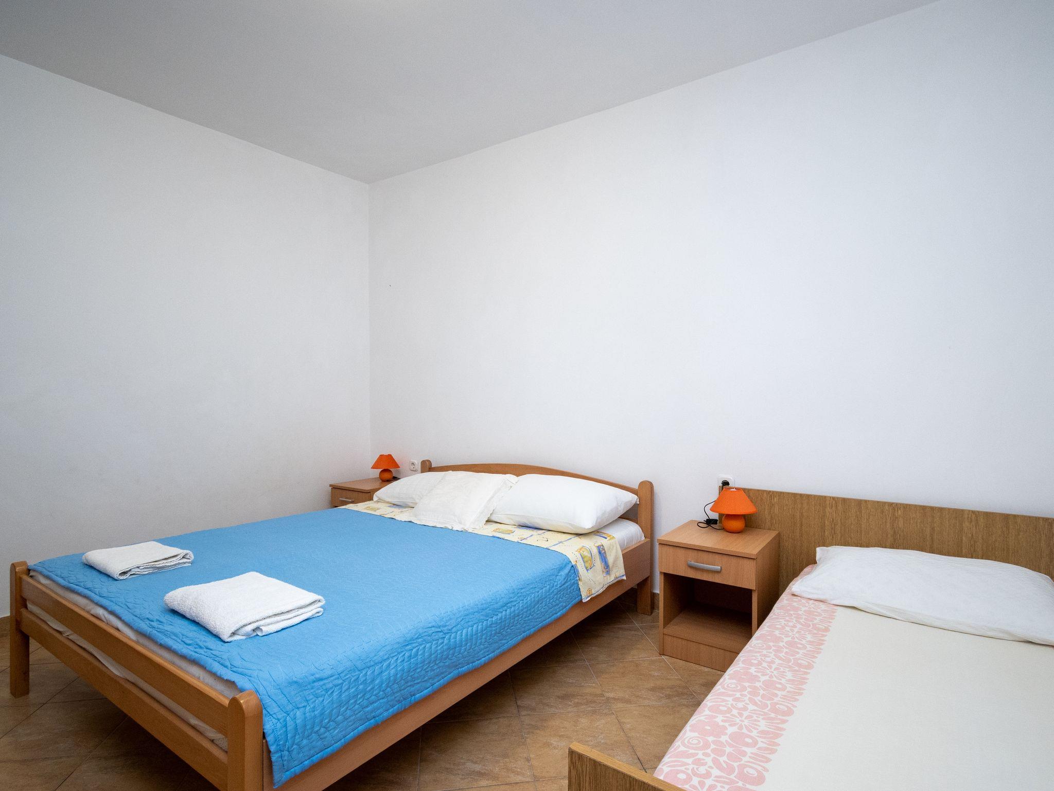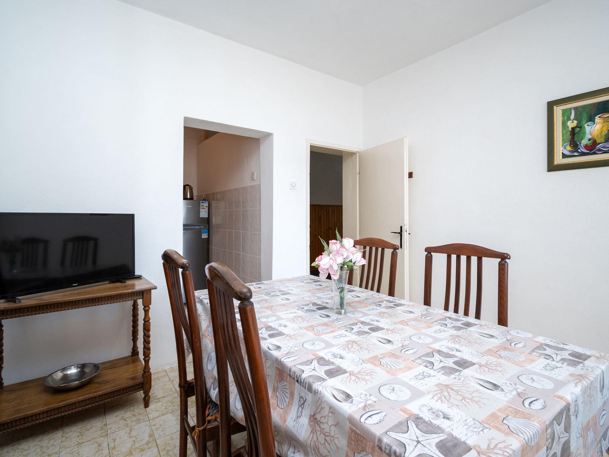 Ferienwohnung bietet Platz für 6 Gäste. Die Betten sind in Schlafzimmern, die es 2 gibt, innerhalb einer Gesamtfläche von 62m2, angeordnet. Die Gäste haben eine eigene Terrasse zur Verfügung, auf der sie in warmen Sommernächten genießen können. Das Apartment bietet Meerblick. Es ist erlaubt, Speisen auf dem Gemeinschafts-Grill vorzubereiten. In der Unterkunftseinheit besteht die Möglichkeit des Mitbringens von Haustieren gegen Aufpreis. IM PREIS INBEGRIFFEN: Kurtaxe, Endreinigung, Klimatisierung, Parkplatz, Internet, tragbarer Grill. VERBINDLICHE ZUSÄTZLICHE KOSTEN: Aufzahlung für Kurzaufenthalte (prozentualer Zuschlag pro Nächtigungsanzahl: 30% - 1, 20% - 2, 10% - 3). UNVERBINDLICHE ZUSÄTZLICHE KOSTEN: Bootsanlegeplatz (3,00 € pro Nacht), Haustiere (6,00 € pro Nacht). Die Verfügbarkeit zusätzlicher Dienstleistungen in Ihrem reservierten Termin und die Preise derselben (falls nicht aufgeführt) müssen im Voraus überprüft werden. Zusätzliche Dienstleistungen die in der Zahlungsaufforderung nicht aufgeführt sind werden direkt beim Vermieter bezahlt, angenommen der Gast nutzt auch diese.