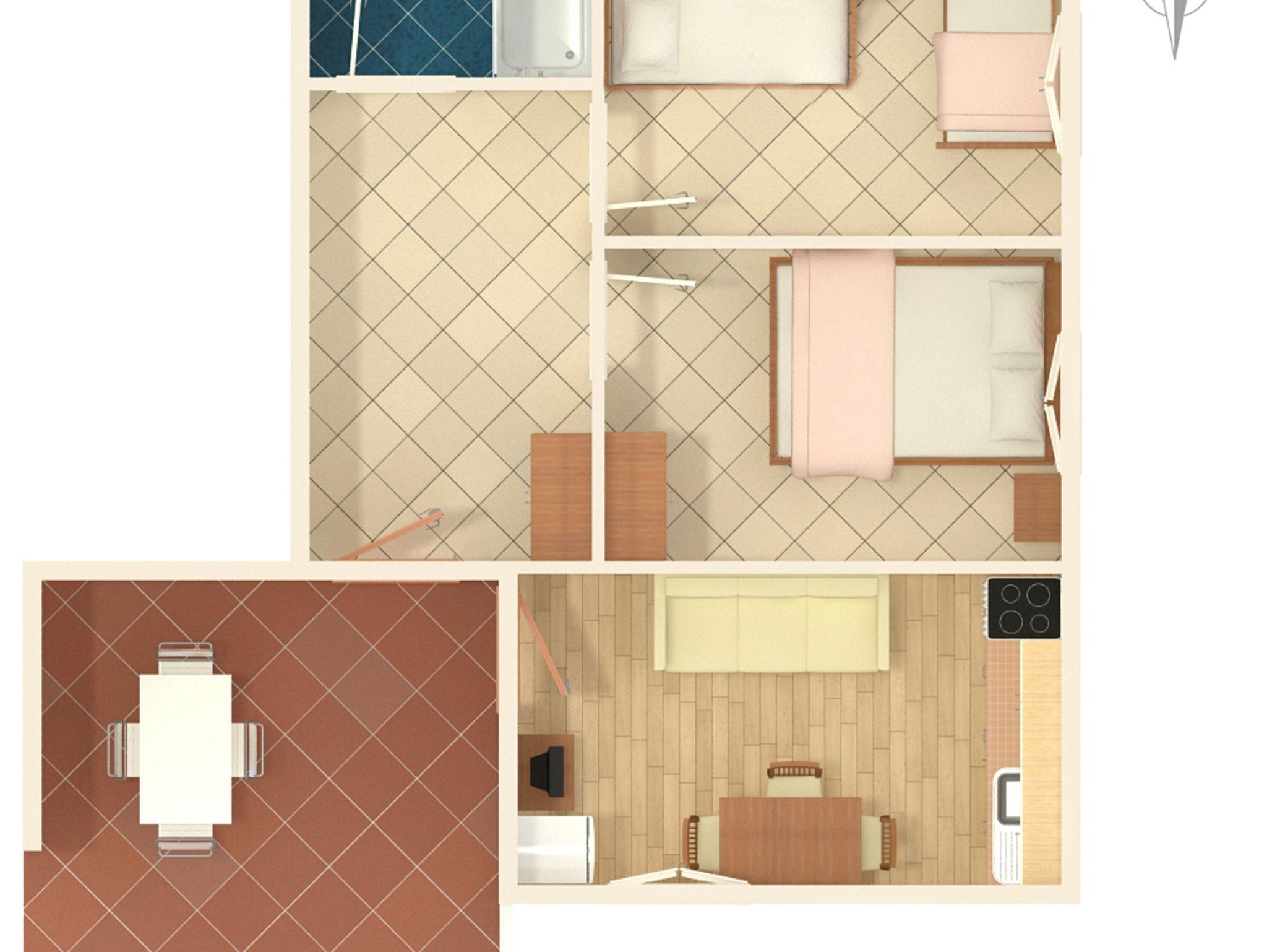Ferienwohnung bietet Platz für 6 Gäste. Die Betten sind in Schlafzimmern, die es 2 gibt, und in Esszimmer, innerhalb einer Gesamtfläche von 39m2, angeordnet. Die Gäste haben eine eigene Terrasse zur Verfügung, auf der sie in warmen Sommernächten genießen können. Das Apartment bietet Meerblick. Es ist erlaubt, Speisen auf dem Gemeinschafts-Grill vorzubereiten. Räume der gebuchten Unterkunftseinheit werden nicht in eine Ganze verbunden. IM PREIS INBEGRIFFEN: Kurtaxe, Endreinigung, Klimatisierung, Parkplatz, Internet. Die Verfügbarkeit zusätzlicher Dienstleistungen in Ihrem reservierten Termin und die Preise derselben (falls nicht aufgeführt) müssen im Voraus überprüft werden. Zusätzliche Dienstleistungen die in der Zahlungsaufforderung nicht aufgeführt sind werden direkt beim Vermieter bezahlt, angenommen der Gast nutzt auch diese.