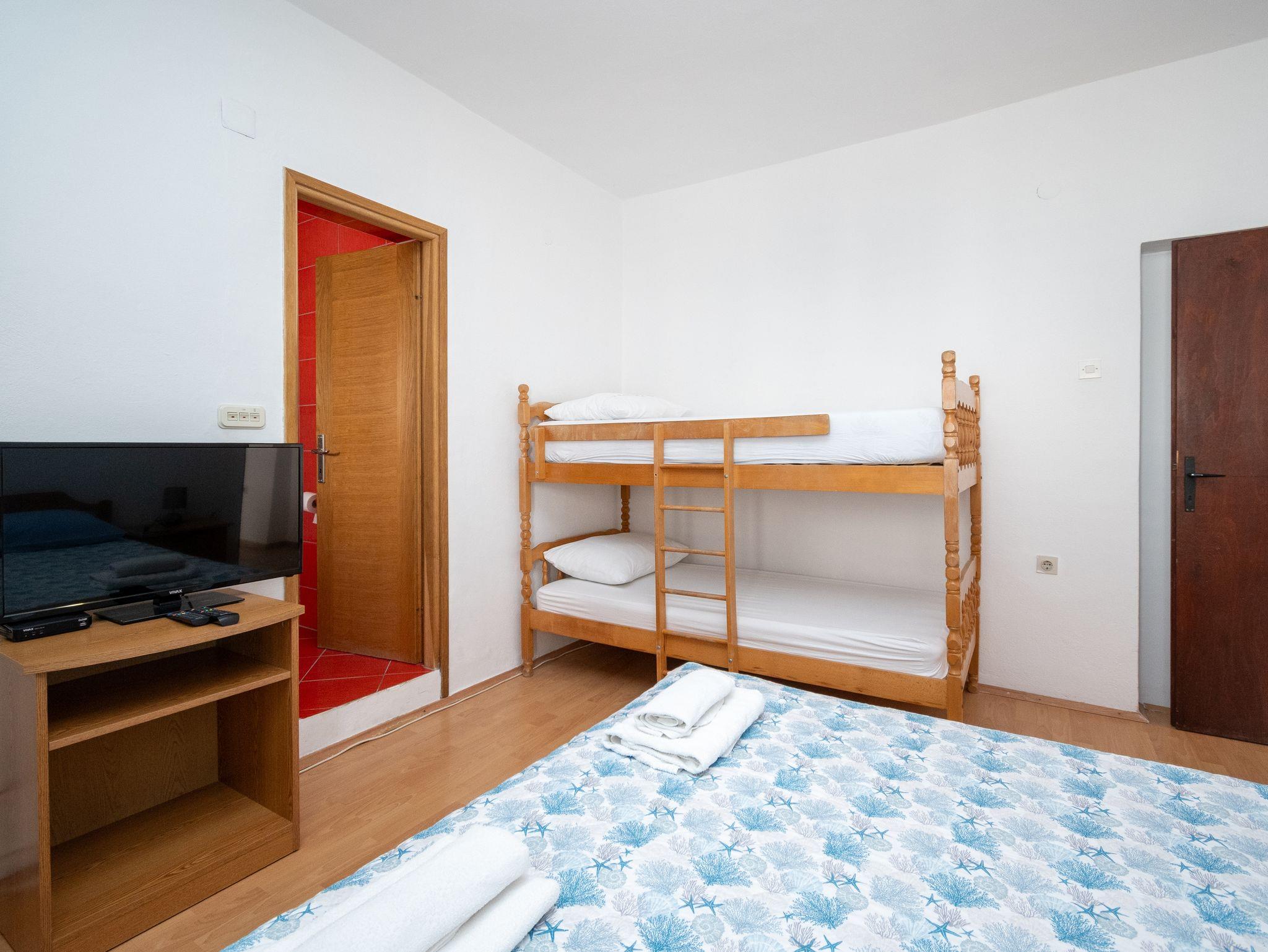 Ferienwohnung bietet Platz für 4 Gäste. Die Betten sind in Schlafzimmern, die es 1 gibt, innerhalb einer Gesamtfläche von 26m2, angeordnet. Die Gäste haben eine eigene Terrasse zur Verfügung, auf der sie in warmen Sommernächten genießen können. Es ist erlaubt, Speisen auf dem Gemeinschafts-Grill vorzubereiten. IM PREIS INBEGRIFFEN: Kurtaxe, Endreinigung, Klimatisierung, Parkplatz, Internet, tragbarer Grill. VERBINDLICHE ZUSÄTZLICHE KOSTEN: Aufzahlung für Kurzaufenthalte (prozentualer Zuschlag pro Nächtigungsanzahl: 30% - 1, 20% - 2, 10% - 3). UNVERBINDLICHE ZUSÄTZLICHE KOSTEN: Bootsanlegeplatz (3,00 € pro Nacht). Die Verfügbarkeit zusätzlicher Dienstleistungen in Ihrem reservierten Termin und die Preise derselben (falls nicht aufgeführt) müssen im Voraus überprüft werden. Zusätzliche Dienstleistungen die in der Zahlungsaufforderung nicht aufgeführt sind werden direkt beim Vermieter bezahlt, angenommen der Gast nutzt auch diese.