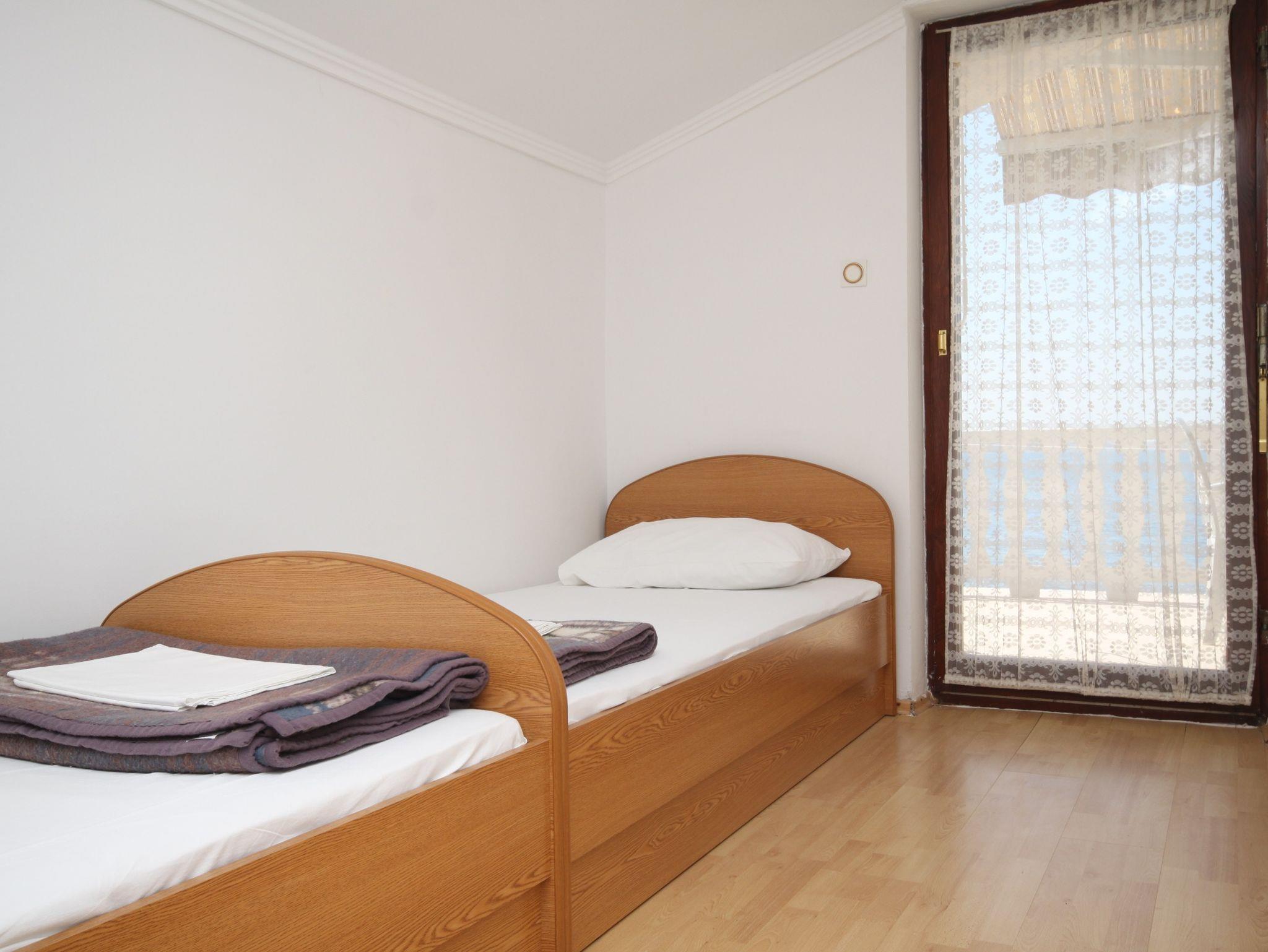 Ferienwohnung bietet Platz für 4 Gäste. Die Betten sind in Schlafzimmern, die es 1 gibt, und in Wohnzimmer, innerhalb einer Gesamtfläche von 38m2, angeordnet. Die Gäste haben eine eigene Terrasse zur Verfügung, auf der sie in warmen Sommernächten genießen können. Das Apartment bietet Meerblick. Es ist erlaubt, Speisen auf dem Gemeinschafts-Grill vorzubereiten. IM PREIS INBEGRIFFEN: Kurtaxe, Endreinigung, Klimatisierung, Parkplatz, Internet, Bootsanlegeplatz. VERBINDLICHE ZUSÄTZLICHE KOSTEN: Aufzahlung für Kurzaufenthalte (prozentualer Zuschlag pro Nächtigungsanzahl: 30% - 1, 20% - 2, 10% - 3). Die Verfügbarkeit zusätzlicher Dienstleistungen in Ihrem reservierten Termin und die Preise derselben (falls nicht aufgeführt) müssen im Voraus überprüft werden. Zusätzliche Dienstleistungen die in der Zahlungsaufforderung nicht aufgeführt sind werden direkt beim Vermieter bezahlt, angenommen der Gast nutzt auch diese. Ermäßigung auf den Grundpreis: Gratistag 14=13 (bei einem Aufenthalt von 14 Tagen oder mehr erhalten Sie einen Gratistag für den Aufenthalt bis 31.12.26).