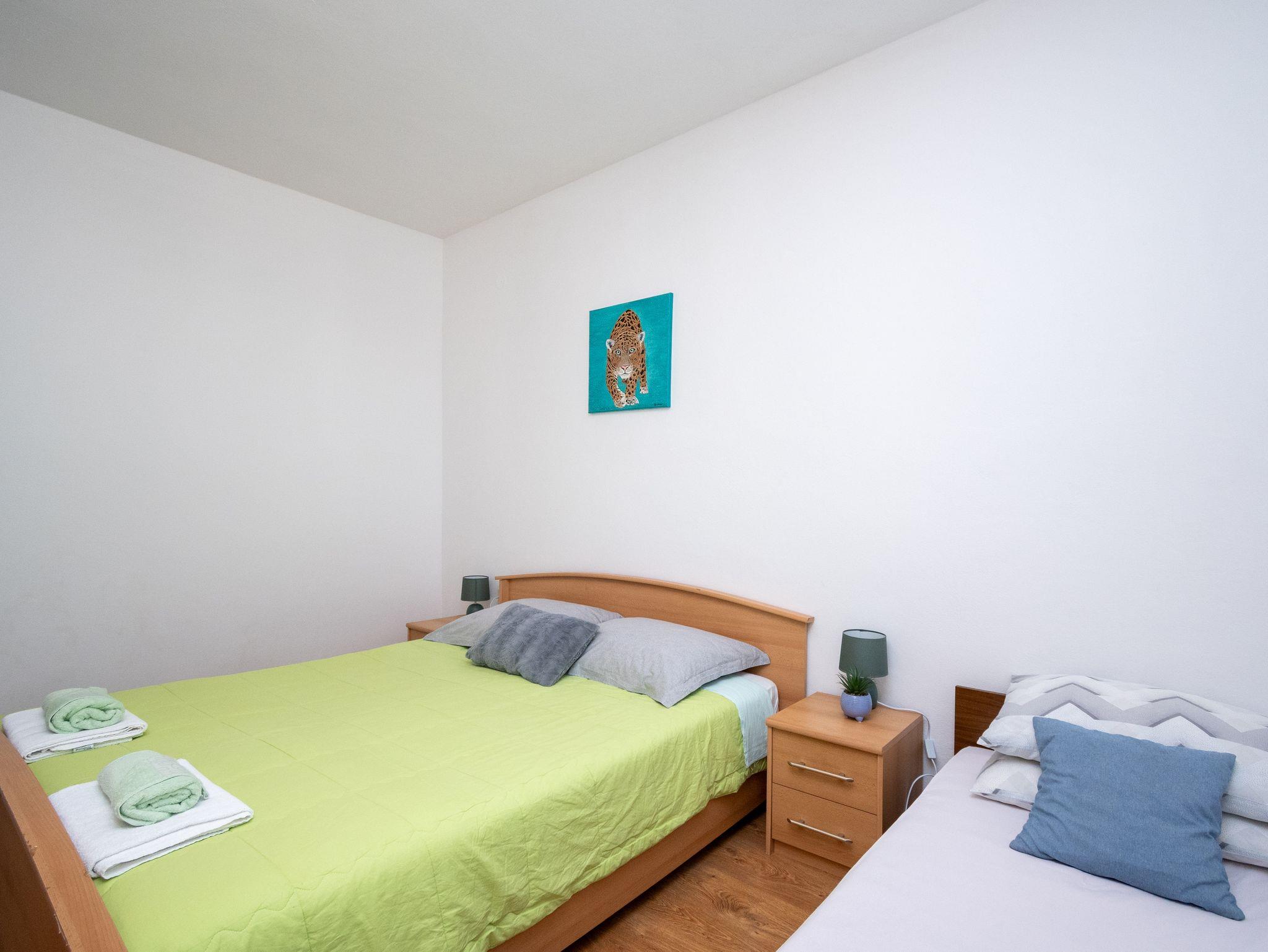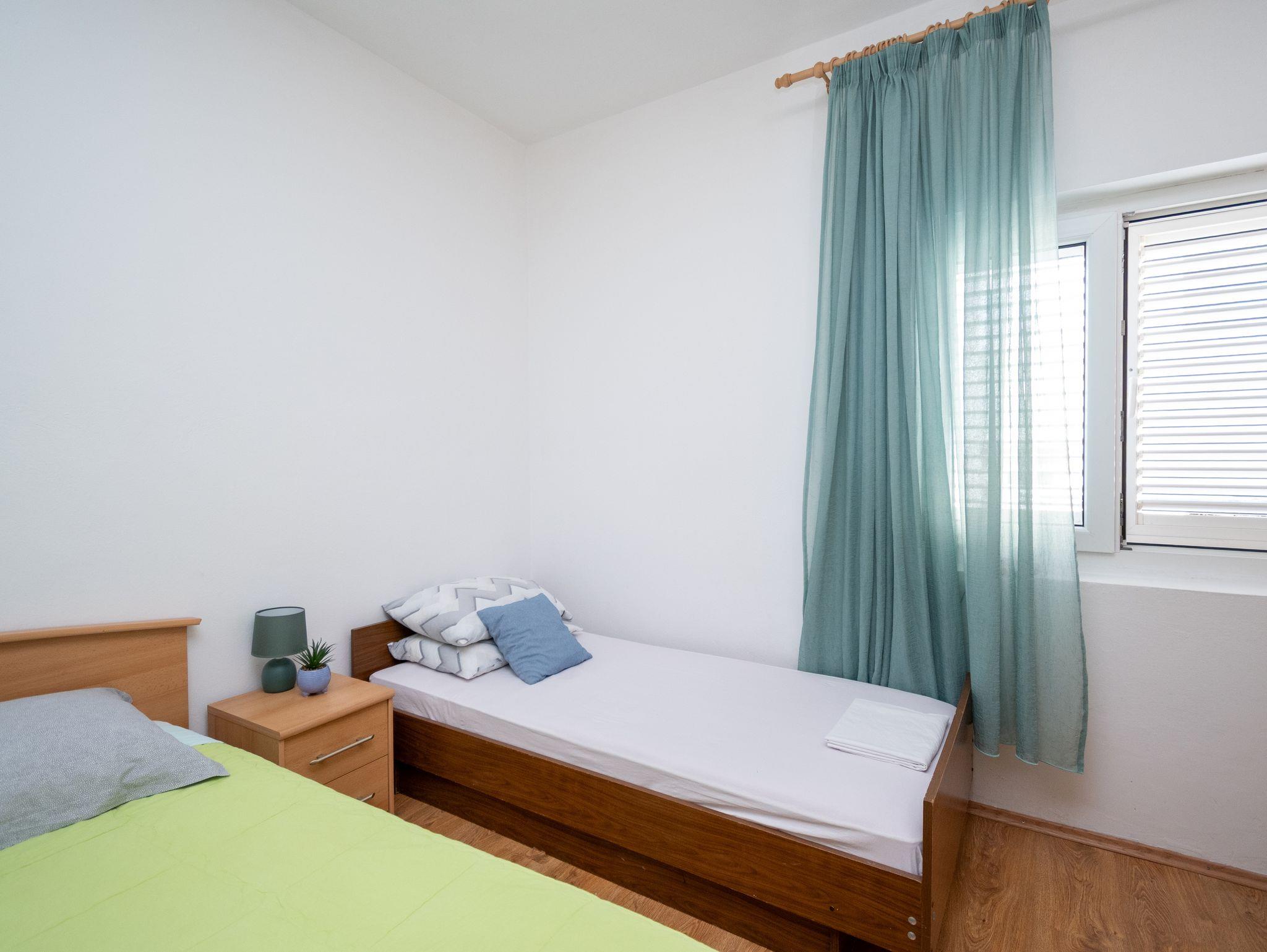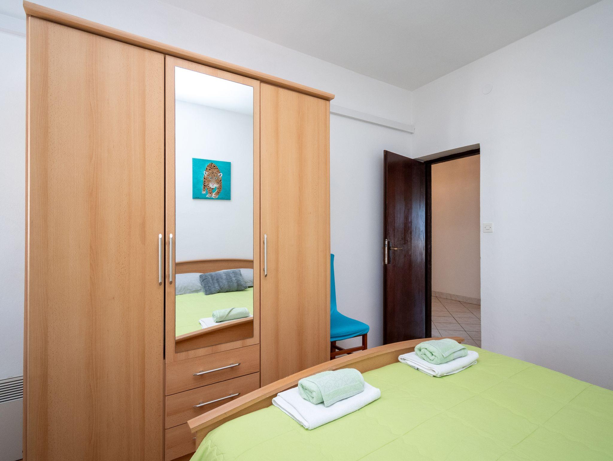 Ferienwohnung bietet Platz für 4 Gäste. Die Betten sind in Schlafzimmern, die es 1 gibt, und in Wohnzimmer, innerhalb einer Gesamtfläche von 42m2, angeordnet. Die Gäste haben eine eigene Terrasse zur Verfügung, auf der sie in warmen Sommernächten genießen können. Das Apartment bietet Meerblick. Es ist erlaubt, Speisen auf dem Gemeinschafts-Grill vorzubereiten. IM PREIS INBEGRIFFEN: Kurtaxe, Endreinigung, Klimatisierung, Parkplatz, Internet, tragbarer Grill. VERBINDLICHE ZUSÄTZLICHE KOSTEN: Aufzahlung für Kurzaufenthalte (prozentualer Zuschlag pro Nächtigungsanzahl: 30% - 1, 20% - 2, 10% - 3). UNVERBINDLICHE ZUSÄTZLICHE KOSTEN: Bootsanlegeplatz (3,00 € pro Nacht). Die Verfügbarkeit zusätzlicher Dienstleistungen in Ihrem reservierten Termin und die Preise derselben (falls nicht aufgeführt) müssen im Voraus überprüft werden. Zusätzliche Dienstleistungen die in der Zahlungsaufforderung nicht aufgeführt sind werden direkt beim Vermieter bezahlt, angenommen der Gast nutzt auch diese.