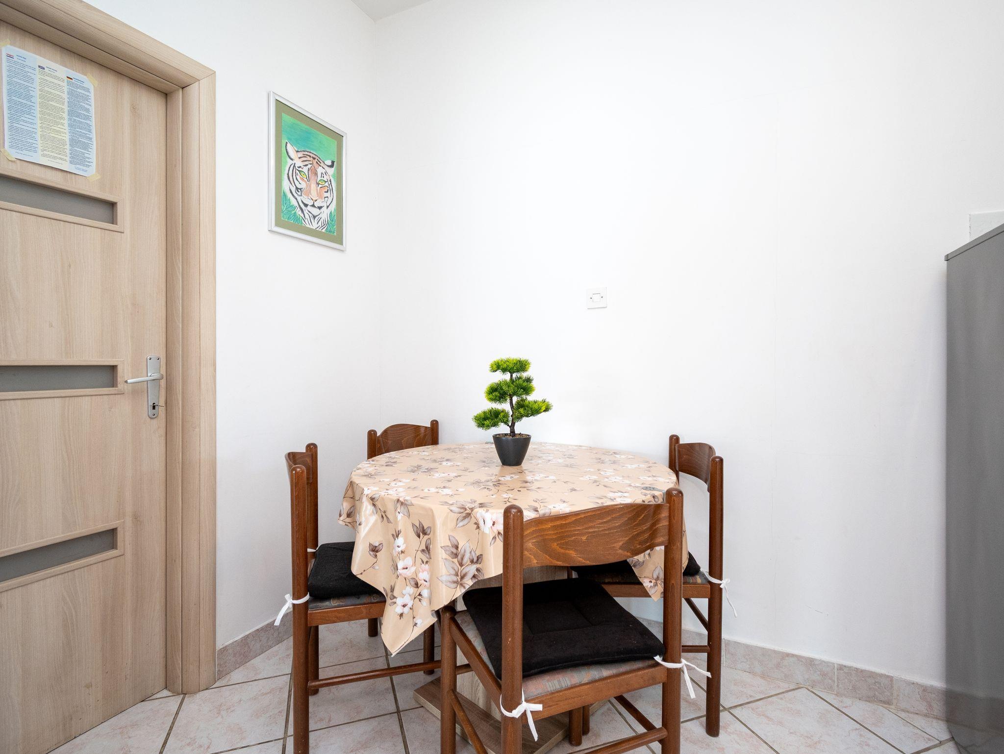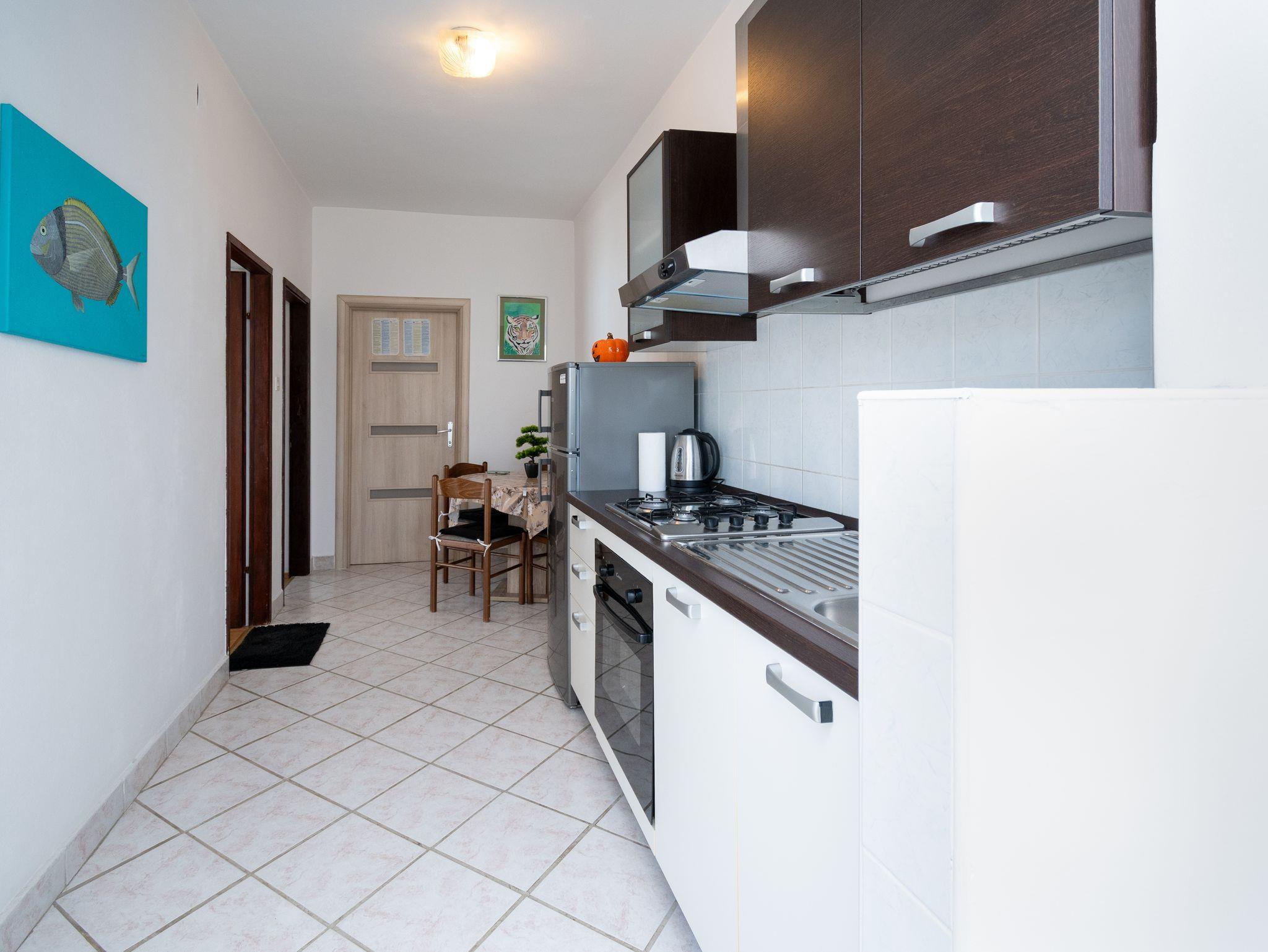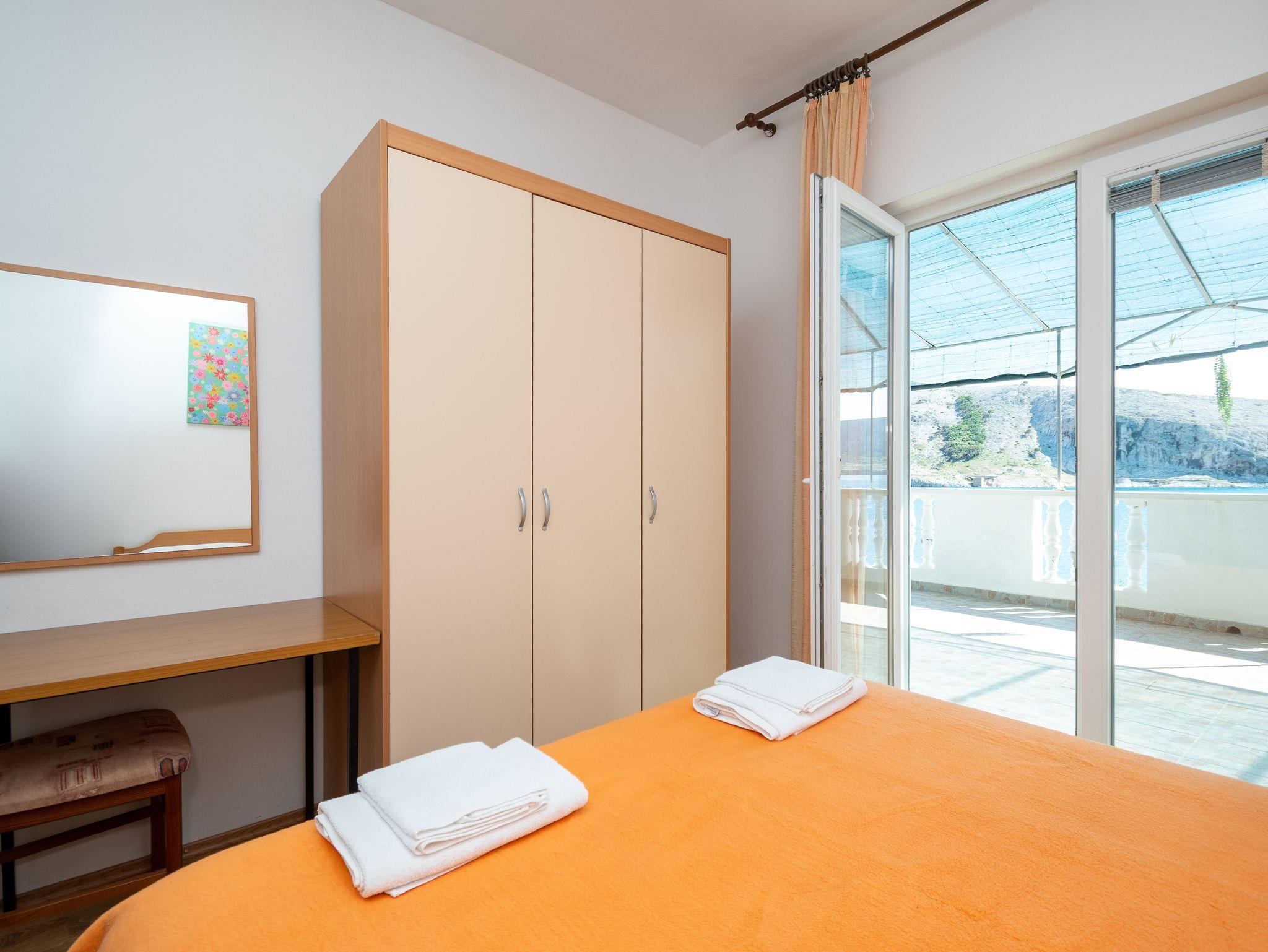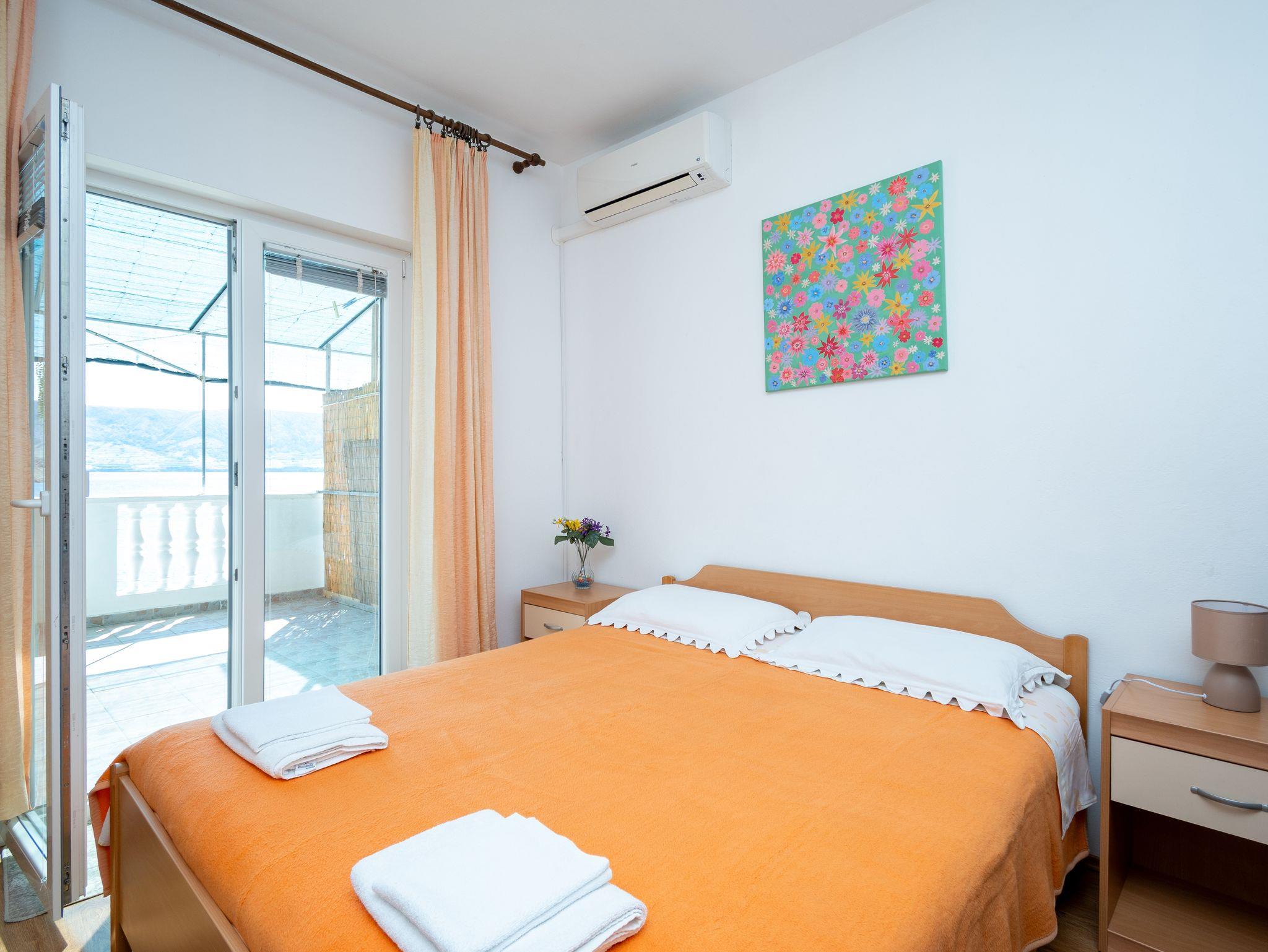 Ferienwohnung bietet Platz für 5 Gäste. Die Betten sind in Schlafzimmern, die es 2 gibt, innerhalb einer Gesamtfläche von 38m2, angeordnet. Die Gäste haben eine eigene Terrasse zur Verfügung, auf der sie in warmen Sommernächten genießen können. Das Apartment bietet Meerblick. Es ist erlaubt, Speisen auf dem Gemeinschafts-Grill vorzubereiten. IM PREIS INBEGRIFFEN: Kurtaxe, Endreinigung, Klimatisierung, Parkplatz, Internet, tragbarer Grill. VERBINDLICHE ZUSÄTZLICHE KOSTEN: Aufzahlung für Kurzaufenthalte (prozentualer Zuschlag pro Nächtigungsanzahl: 30% - 1, 20% - 2, 10% - 3). UNVERBINDLICHE ZUSÄTZLICHE KOSTEN: Bootsanlegeplatz (3,00 € pro Nacht). Die Verfügbarkeit zusätzlicher Dienstleistungen in Ihrem reservierten Termin und die Preise derselben (falls nicht aufgeführt) müssen im Voraus überprüft werden. Zusätzliche Dienstleistungen die in der Zahlungsaufforderung nicht aufgeführt sind werden direkt beim Vermieter bezahlt, angenommen der Gast nutzt auch diese.