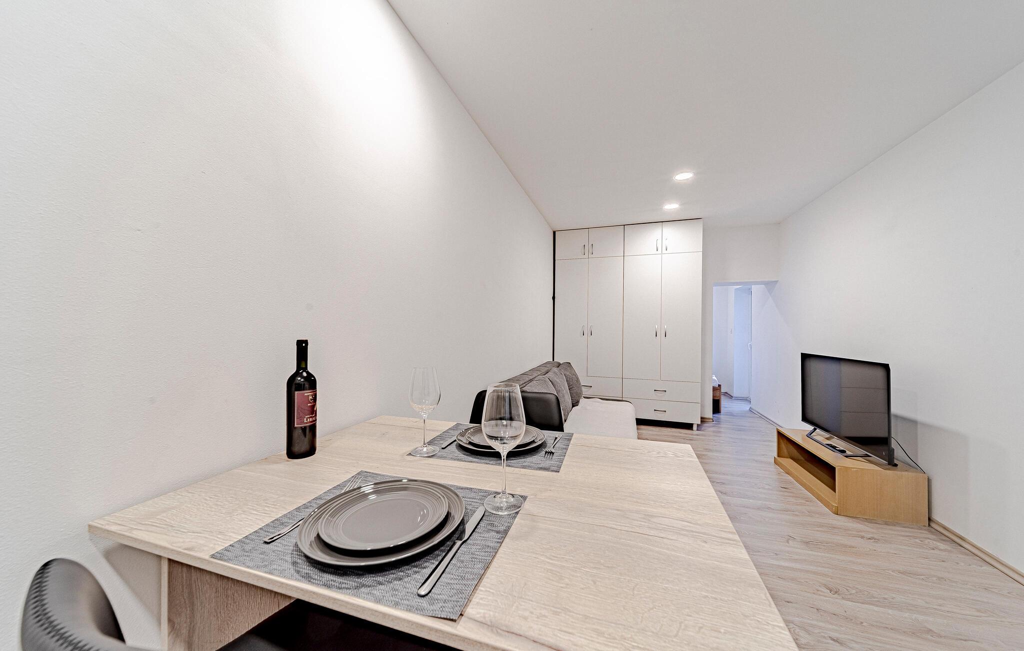 Denne charmerende lejlighed i stueetagen tilbyder jer et komfortabelt tilflugtssted, hvor I kan føle jer hjemme under en afslappende pause. Tilbered jeres yndlingsretter i det åbne køkken og nyd dagens måltider ved det indbydende spisebord. Planlæg jeres aktiviteter her og Slå jer ned i den komfortable sofa efter en begivenhedsrig dag.
