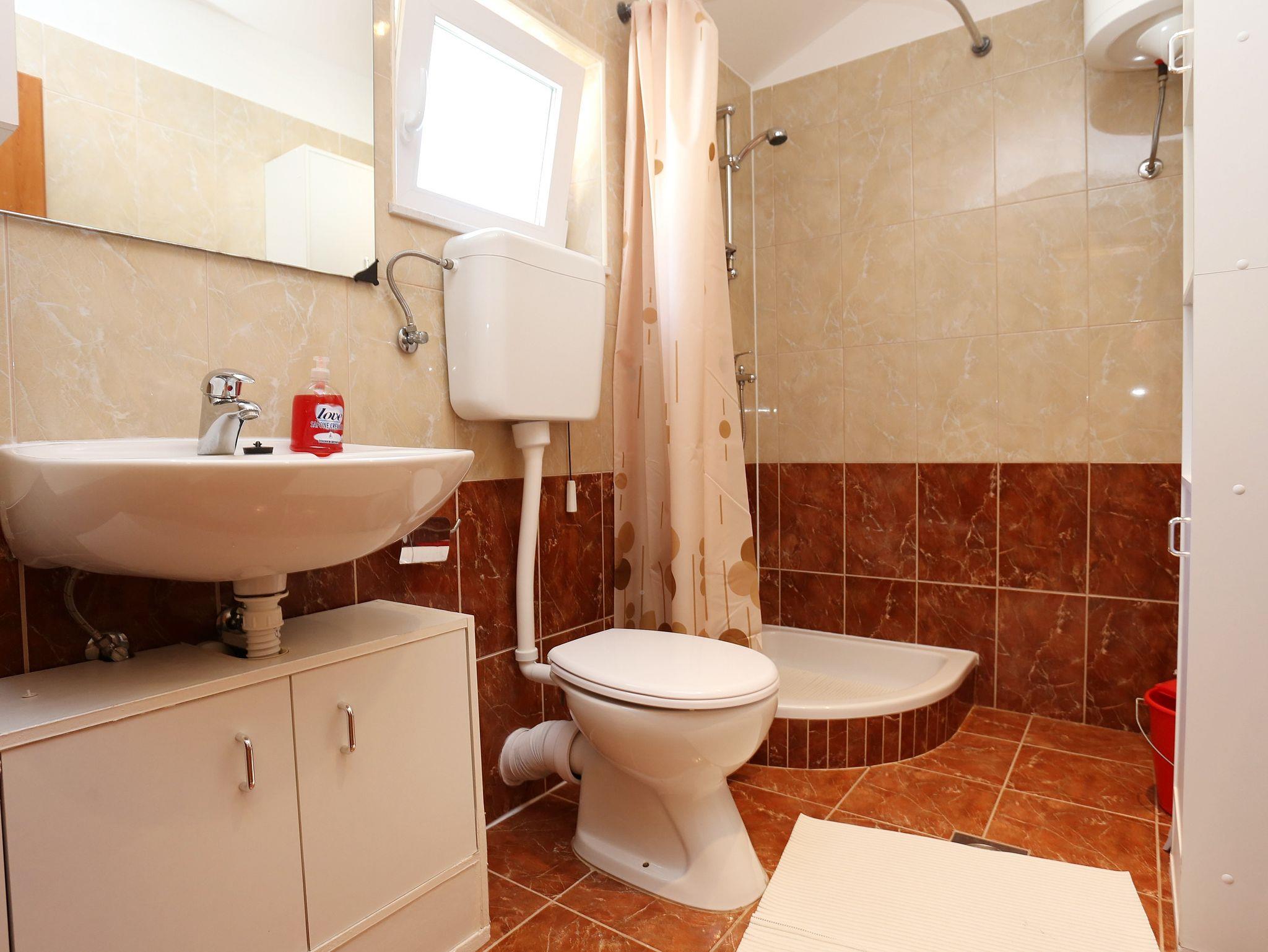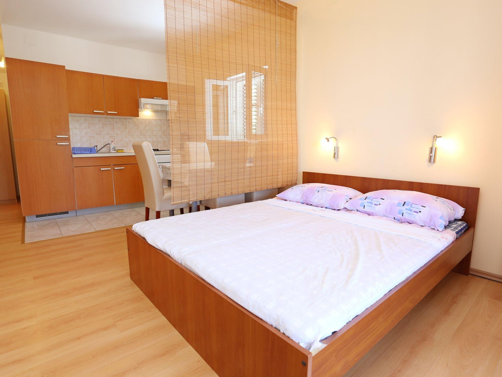 Ferienwohnung bietet Platz für 4 Gäste. Die Betten sind in Schlafzimmern, die es 1 gibt, und in Wohnzimmer, innerhalb einer Gesamtfläche von 34m2, angeordnet. Die Gäste haben eine eigene Terrasse zur Verfügung, auf der sie in warmen Sommernächten genießen können. Das Apartment bietet Meerblick. Es ist erlaubt, Speisen auf dem Gemeinschafts-Grill vorzubereiten. IM PREIS INBEGRIFFEN: Kurtaxe, Endreinigung, Klimatisierung, Parkplatz, Internet, Bügeleisen, Bügelbrett, Föhn. VERBINDLICHE ZUSÄTZLICHE KOSTEN: Aufzahlung für Kurzaufenthalte (prozentualer Zuschlag pro Nächtigungsanzahl: 30% - 1, 20% - 2, 10% - 3). UNVERBINDLICHE ZUSÄTZLICHE KOSTEN: Zusatzbett (15,00 € pro Nacht). Die Verfügbarkeit zusätzlicher Dienstleistungen in Ihrem reservierten Termin und die Preise derselben (falls nicht aufgeführt) müssen im Voraus überprüft werden. Zusätzliche Dienstleistungen die in der Zahlungsaufforderung nicht aufgeführt sind werden direkt beim Vermieter bezahlt, angenommen der Gast nutzt auch diese.