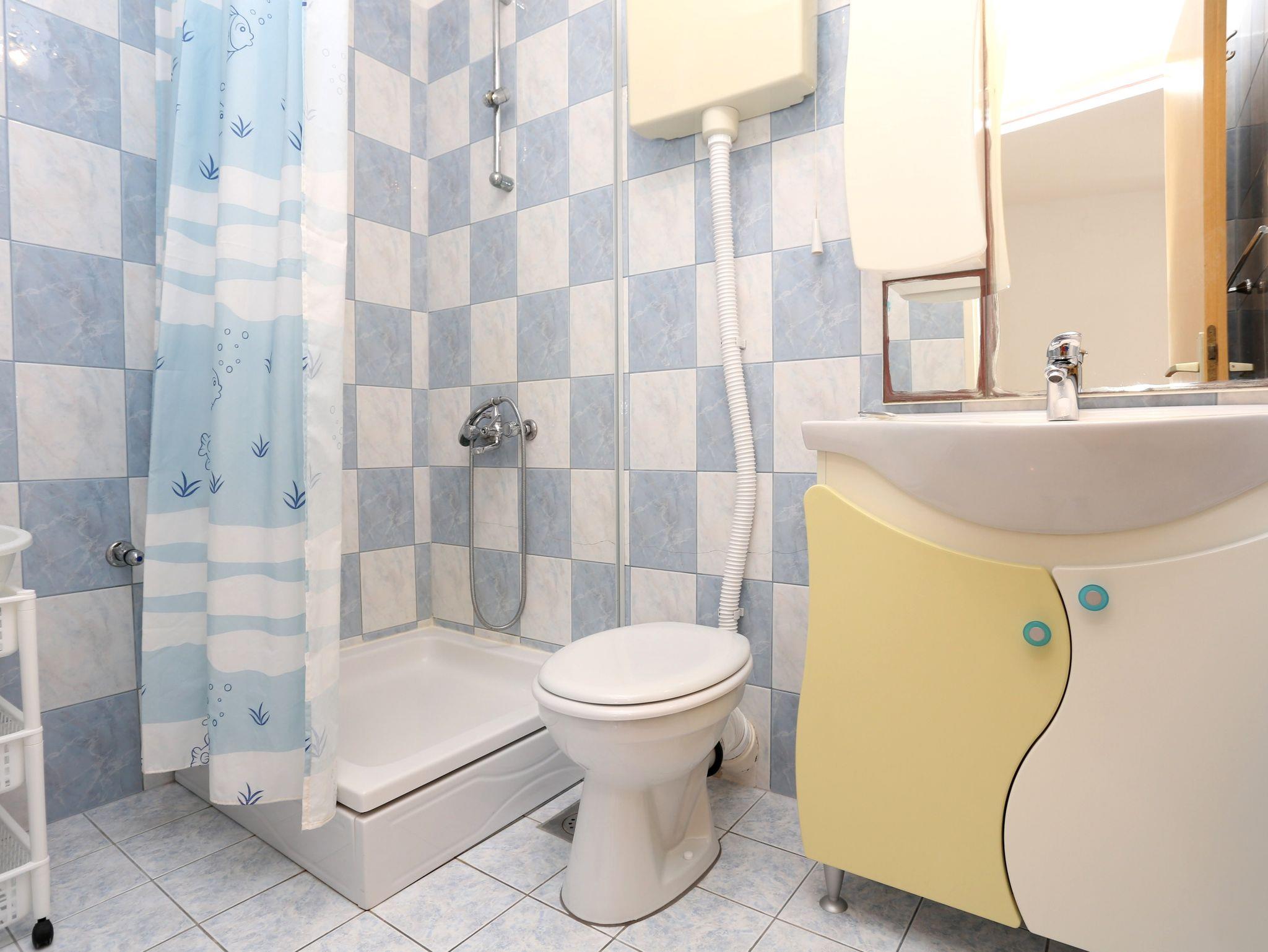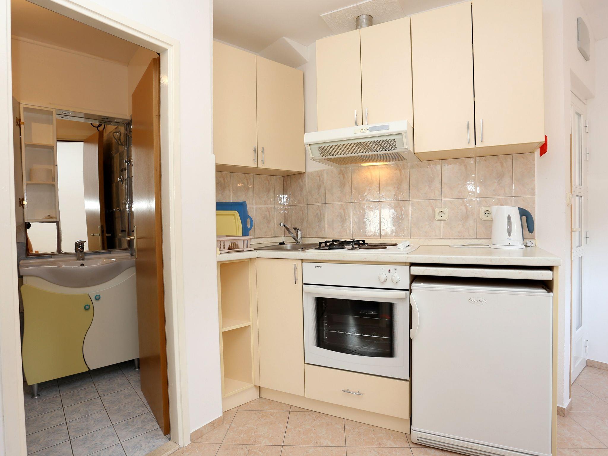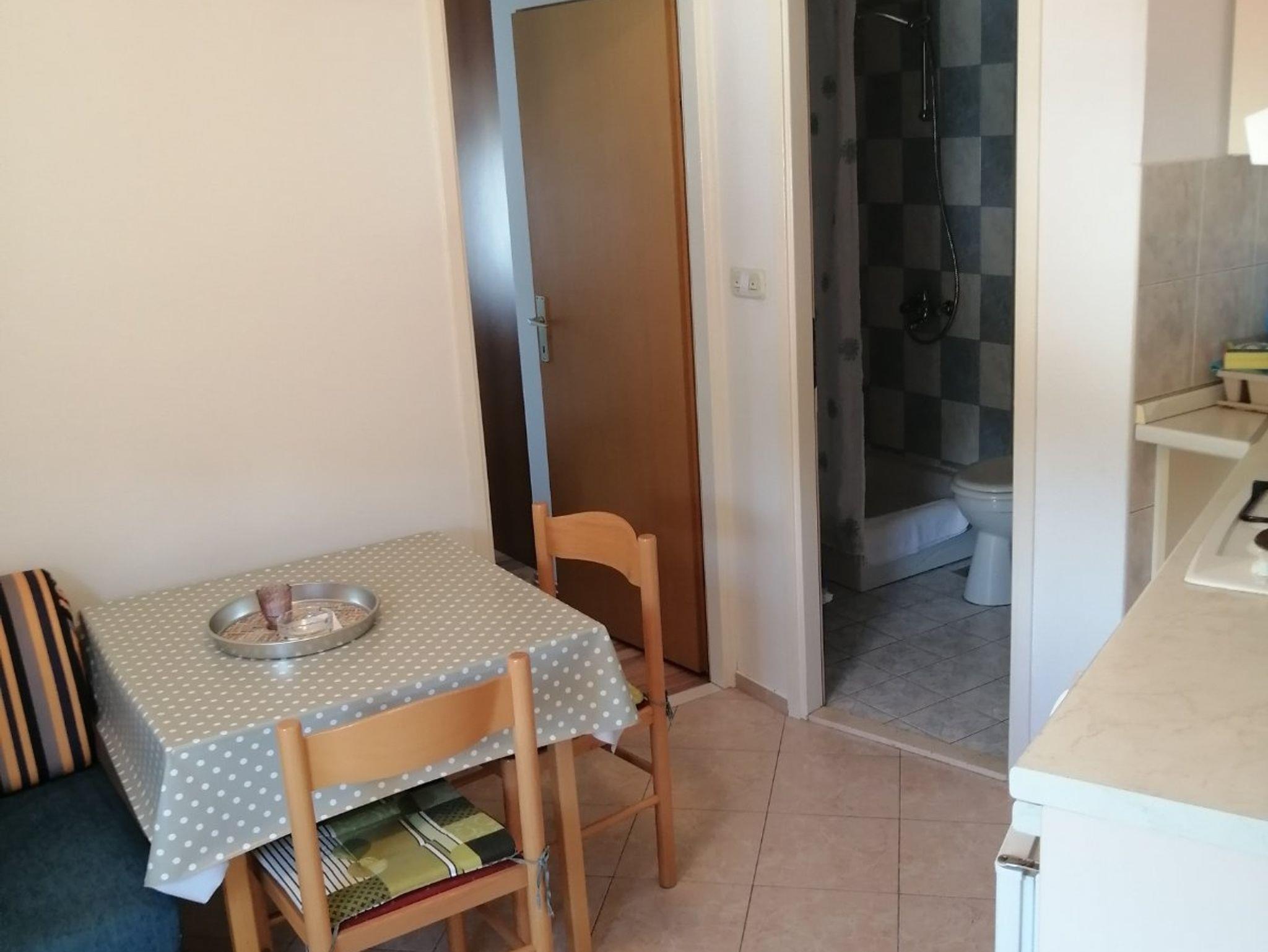 Ferienwohnung bietet Platz für 3 Gäste. Die Betten sind in Schlafzimmern, die es 1 gibt, und in Esszimmer, innerhalb einer Gesamtfläche von 24m2, angeordnet. Die Gäste haben eine eigene Terrasse zur Verfügung, auf der sie in warmen Sommernächten genießen können. Das Apartment bietet Meerblick. Durch die Terrasse der gebuchten Unterkunftseinheit gehen auch andere Gäste oder Vermieter. Unterkunftseinheit hat Räume, die von dem Rest der Einheit abgetrennt werden. IM PREIS INBEGRIFFEN: Kurtaxe, Endreinigung, Klimatisierung, Parkplatz, Internet, Kinderbett, Bügeleisen, Bügelbrett, Föhn. VERBINDLICHE ZUSÄTZLICHE KOSTEN: Aufzahlung für Kurzaufenthalte (prozentualer Zuschlag pro Nächtigungsanzahl: 30% - 1, 20% - 2, 10% - 3). Die Verfügbarkeit zusätzlicher Dienstleistungen in Ihrem reservierten Termin und die Preise derselben (falls nicht aufgeführt) müssen im Voraus überprüft werden. Zusätzliche Dienstleistungen die in der Zahlungsaufforderung nicht aufgeführt sind werden direkt beim Vermieter bezahlt, angenommen der Gast nutzt auch diese.