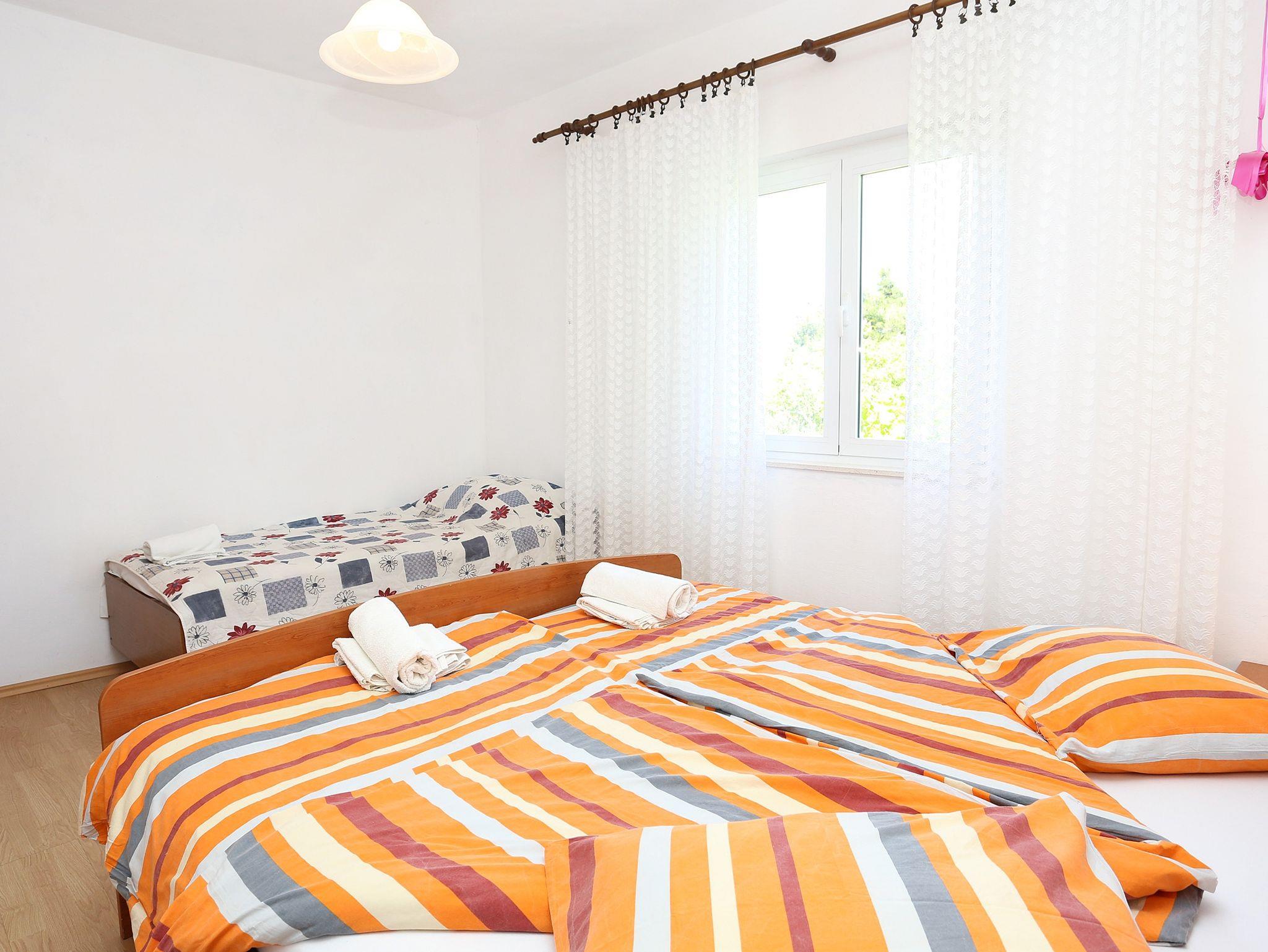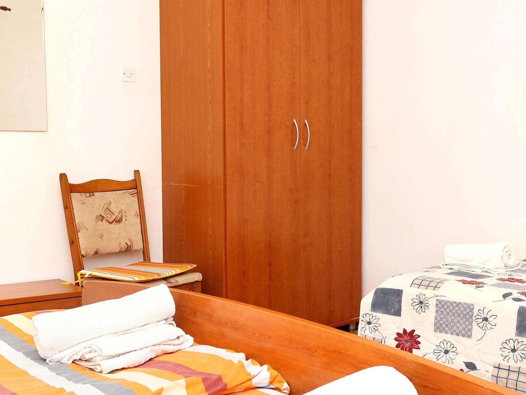 Ferienwohnung bietet Platz für 3 Gäste. Die Betten sind in Schlafzimmern, die es 1 gibt, innerhalb einer Gesamtfläche von 23m2, angeordnet. Die Gäste haben eine eigene Terrasse zur Verfügung, auf der sie in warmen Sommernächten genießen können. Es ist erlaubt, Speisen auf dem Gemeinschafts-Grill vorzubereiten. Durch die Terrasse der gebuchten Unterkunftseinheit gehen auch andere Gäste oder Vermieter. IM PREIS INBEGRIFFEN: Kurtaxe, Endreinigung, Parkplatz, Internet, Bügeleisen, Föhn. VERBINDLICHE ZUSÄTZLICHE KOSTEN: Aufzahlung für Kurzaufenthalte (prozentualer Zuschlag pro Nächtigungsanzahl: 30% - 1, 20% - 2, 10% - 3). UNVERBINDLICHE ZUSÄTZLICHE KOSTEN: Klimatisierung (5,00 € pro Nacht), Wäschewaschen (4,00 € Waschen). Die Verfügbarkeit zusätzlicher Dienstleistungen in Ihrem reservierten Termin und die Preise derselben (falls nicht aufgeführt) müssen im Voraus überprüft werden. Zusätzliche Dienstleistungen die in der Zahlungsaufforderung nicht aufgeführt sind werden direkt beim Vermieter bezahlt, angenommen der Gast nutzt auch diese.