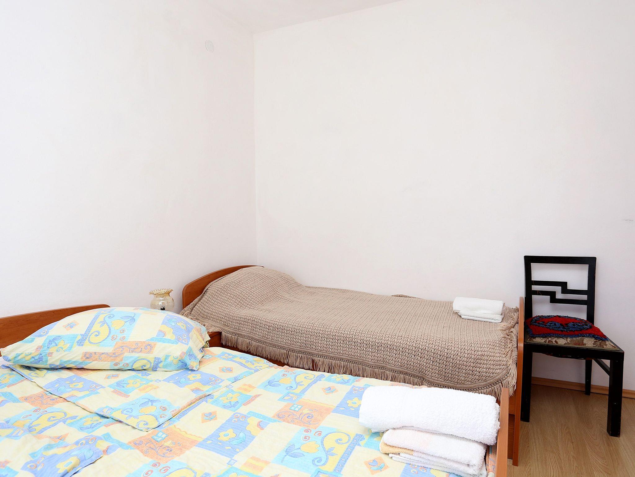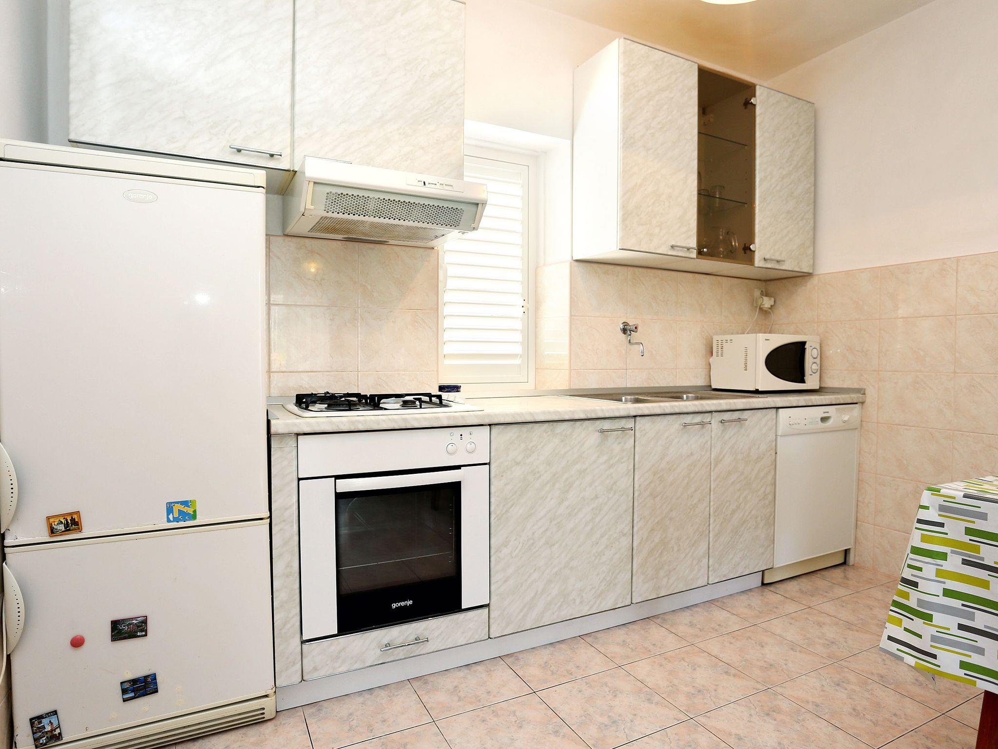 Ferienwohnung bietet Platz für 6 Gäste. Die Betten sind in Schlafzimmern, die es 2 gibt, und in Wohnzimmer, innerhalb einer Gesamtfläche von 57m2, angeordnet. Die Gäste haben eine eigene Terrasse zur Verfügung, auf der sie in warmen Sommernächten genießen können. Das Apartment bietet Meerblick. Es ist erlaubt, Speisen auf dem Gemeinschafts-Grill vorzubereiten. IM PREIS INBEGRIFFEN: Kurtaxe, Endreinigung, Parkplatz, Internet, Bügeleisen, Föhn. VERBINDLICHE ZUSÄTZLICHE KOSTEN: Aufzahlung für Kurzaufenthalte (prozentualer Zuschlag pro Nächtigungsanzahl: 30% - 1, 20% - 2, 10% - 3). UNVERBINDLICHE ZUSÄTZLICHE KOSTEN: Klimatisierung (5,00 € pro Nacht), Wäschewaschen (4,00 € Waschen), Zusatzbett (12,00 € pro Nacht). Die Verfügbarkeit zusätzlicher Dienstleistungen in Ihrem reservierten Termin und die Preise derselben (falls nicht aufgeführt) müssen im Voraus überprüft werden. Zusätzliche Dienstleistungen die in der Zahlungsaufforderung nicht aufgeführt sind werden direkt beim Vermieter bezahlt, angenommen der Gast nutzt auch diese.
