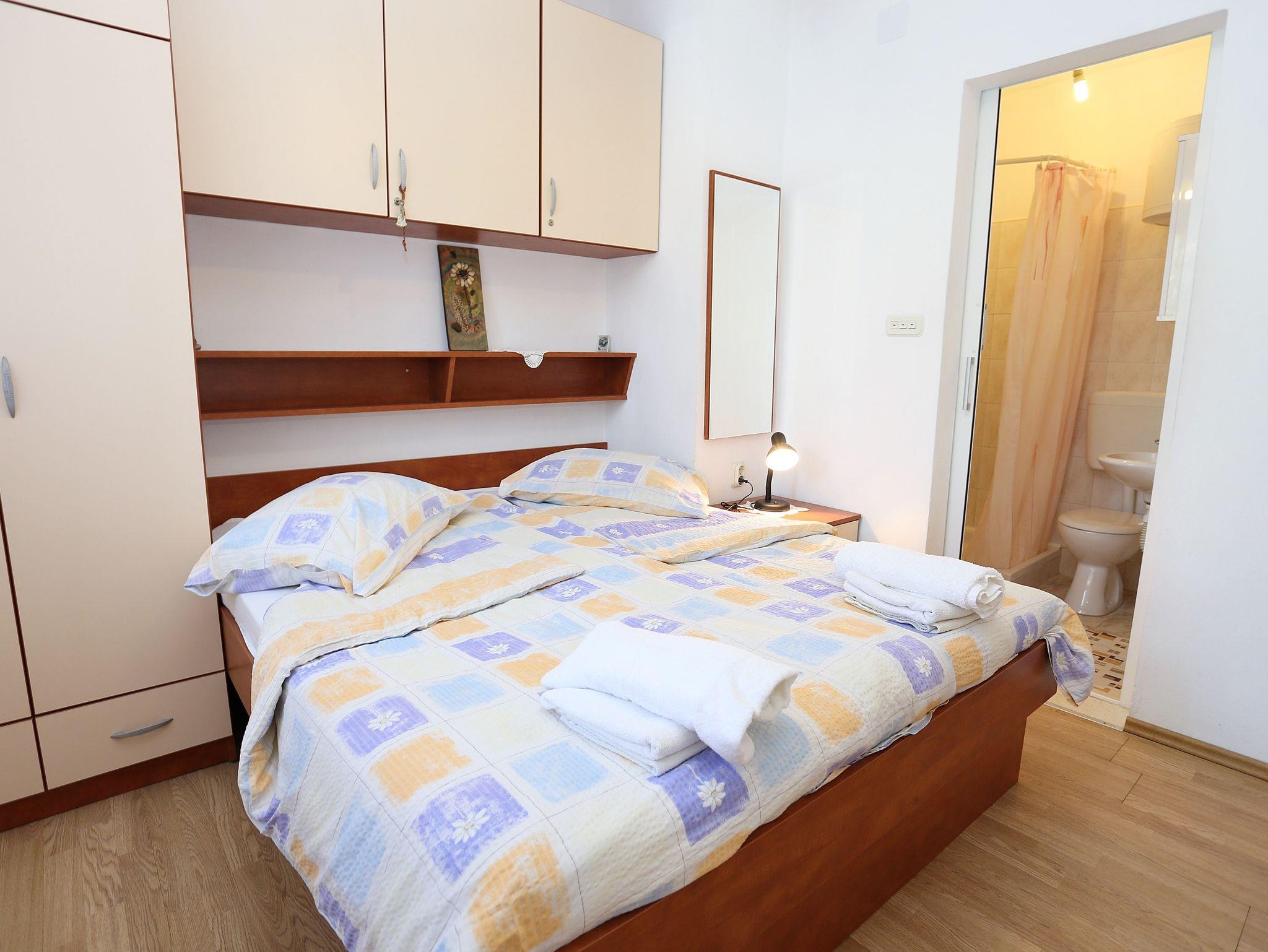 Ferienwohnung bietet Platz für 3 Gäste. Die Betten sind in Schlafzimmern, die es 1 gibt, und in Esszimmer, innerhalb einer Gesamtfläche von 22m2, angeordnet. Die Gäste haben eine eigene Terrasse zur Verfügung, auf der sie in warmen Sommernächten genießen können. Es ist erlaubt, Speisen auf dem Gemeinschafts-Grill vorzubereiten. Unterkunftseinheit hat Räume, die von dem Rest der Einheit abgetrennt werden. IM PREIS INBEGRIFFEN: Kurtaxe, Endreinigung, Parkplatz, Internet, Bügeleisen, Föhn. VERBINDLICHE ZUSÄTZLICHE KOSTEN: Aufzahlung für Kurzaufenthalte (prozentualer Zuschlag pro Nächtigungsanzahl: 30% - 1, 20% - 2, 10% - 3). UNVERBINDLICHE ZUSÄTZLICHE KOSTEN: Klimatisierung (5,00 € pro Nacht), Wäschewaschen (4,00 € Waschen). Die Verfügbarkeit zusätzlicher Dienstleistungen in Ihrem reservierten Termin und die Preise derselben (falls nicht aufgeführt) müssen im Voraus überprüft werden. Zusätzliche Dienstleistungen die in der Zahlungsaufforderung nicht aufgeführt sind werden direkt beim Vermieter bezahlt, angenommen der Gast nutzt auch diese.