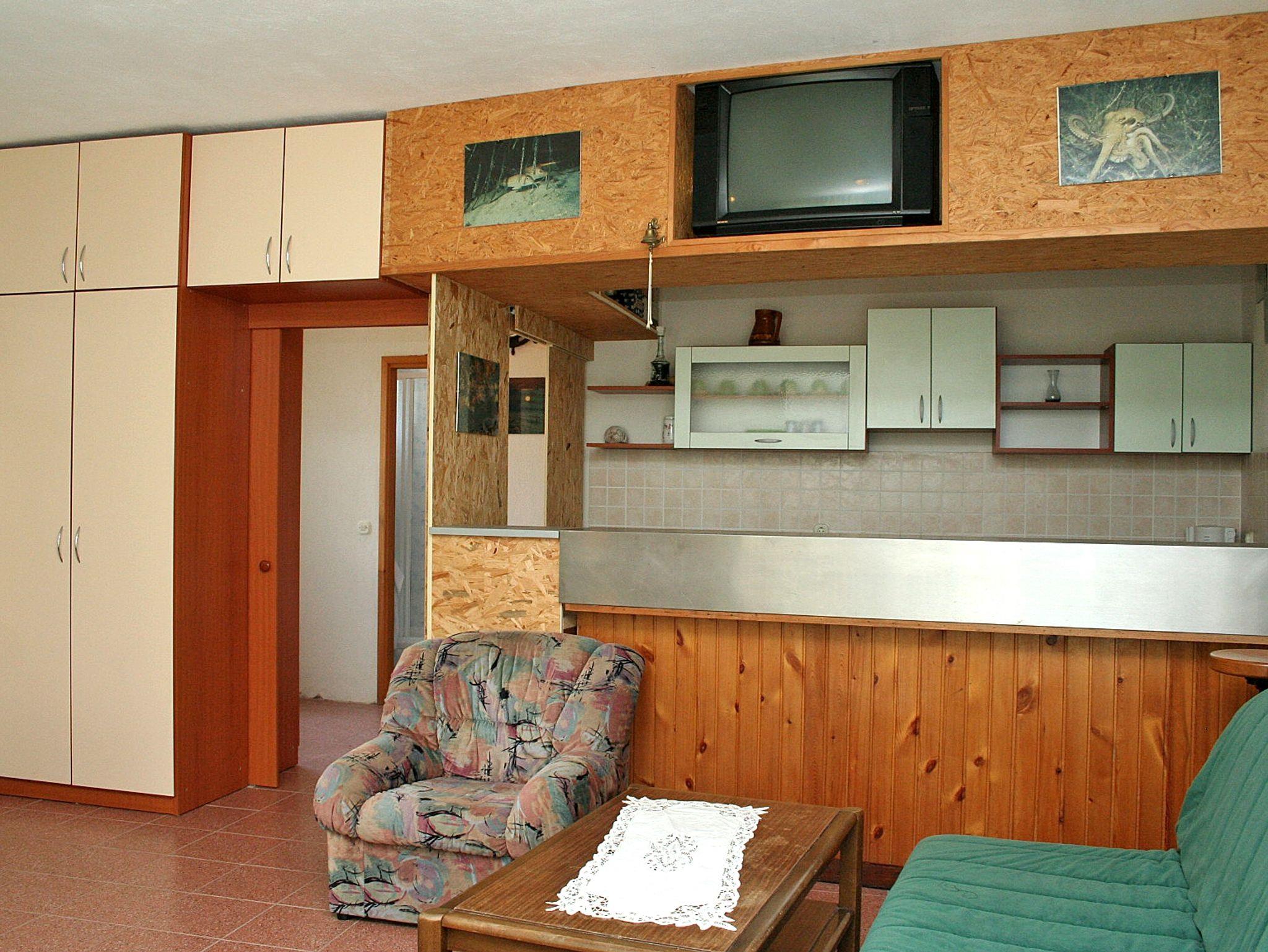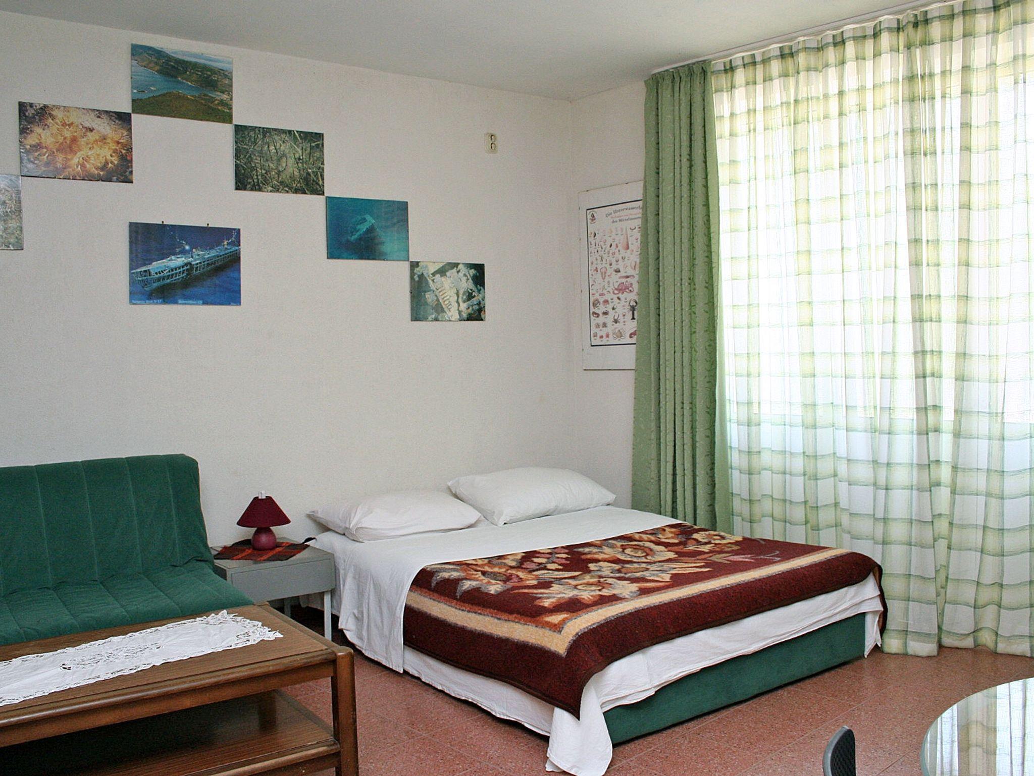 Studio bietet Platz für 4 Gäste. Die Betten sind in Schlafzimmern, die es 1 gibt, innerhalb einer Gesamtfläche von 35m2, angeordnet. Die Gäste haben eine eigene Terrasse zur Verfügung, auf der sie in warmen Sommernächten genießen können. Durch die Terrasse der gebuchten Unterkunftseinheit gehen auch andere Gäste oder Vermieter. IM PREIS INBEGRIFFEN: Kurtaxe, Endreinigung, Klimatisierung, Parkplatz, Internet. VERBINDLICHE ZUSÄTZLICHE KOSTEN: Aufzahlung für Kurzaufenthalte (prozentualer Zuschlag pro Nächtigungsanzahl: 30% - 1, 20% - 2, 10% - 3). Die Verfügbarkeit zusätzlicher Dienstleistungen in Ihrem reservierten Termin und die Preise derselben (falls nicht aufgeführt) müssen im Voraus überprüft werden. Zusätzliche Dienstleistungen die in der Zahlungsaufforderung nicht aufgeführt sind werden direkt beim Vermieter bezahlt, angenommen der Gast nutzt auch diese.