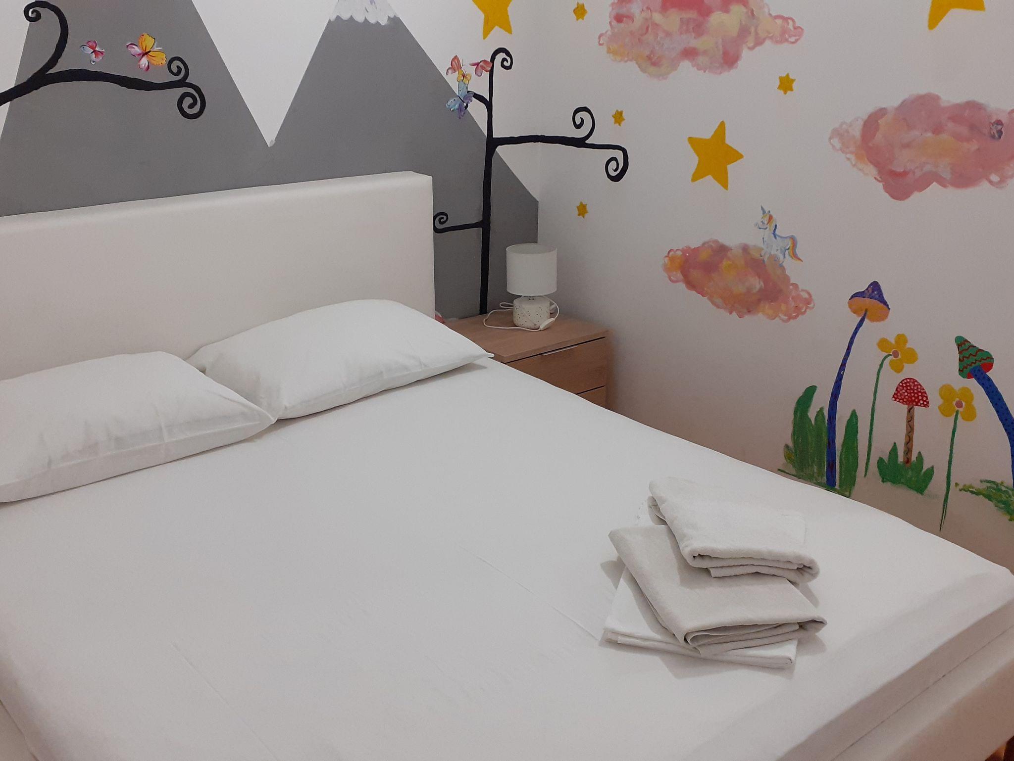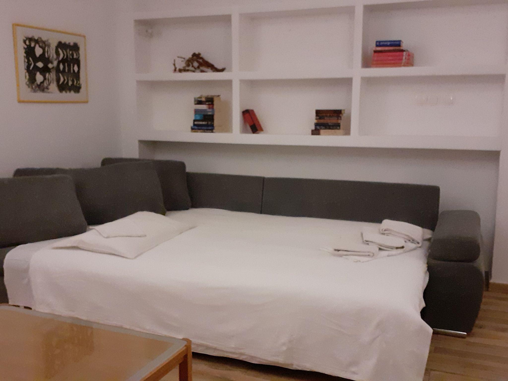 Ferienwohnung bietet Platz für 4 Gäste. Die Betten sind in Schlafzimmern, die es 2 gibt, innerhalb einer Gesamtfläche von 57m2, angeordnet. Die Gäste haben eine eigene Terrasse zur Verfügung, auf der sie in warmen Sommernächten genießen können. Es ist erlaubt, Speisen auf dem Gemeinschafts-Grill vorzubereiten. IM PREIS INBEGRIFFEN: Kurtaxe, Endreinigung, Klimatisierung, Parkplatz, Internet, Kinderbett, Bügeleisen, Bügelbrett, Föhn, tragbarer Grill. VERBINDLICHE ZUSÄTZLICHE KOSTEN: Aufzahlung für Kurzaufenthalte (prozentualer Zuschlag pro Nächtigungsanzahl: 30% - 1, 20% - 2, 10% - 3). UNVERBINDLICHE ZUSÄTZLICHE KOSTEN: Wäschewaschen (5,00 € Waschen), Bootsanlegeplatz (3,00 € pro Nacht). Die Verfügbarkeit zusätzlicher Dienstleistungen in Ihrem reservierten Termin und die Preise derselben (falls nicht aufgeführt) müssen im Voraus überprüft werden. Zusätzliche Dienstleistungen die in der Zahlungsaufforderung nicht aufgeführt sind werden direkt beim Vermieter bezahlt, angenommen der Gast nutzt auch diese.