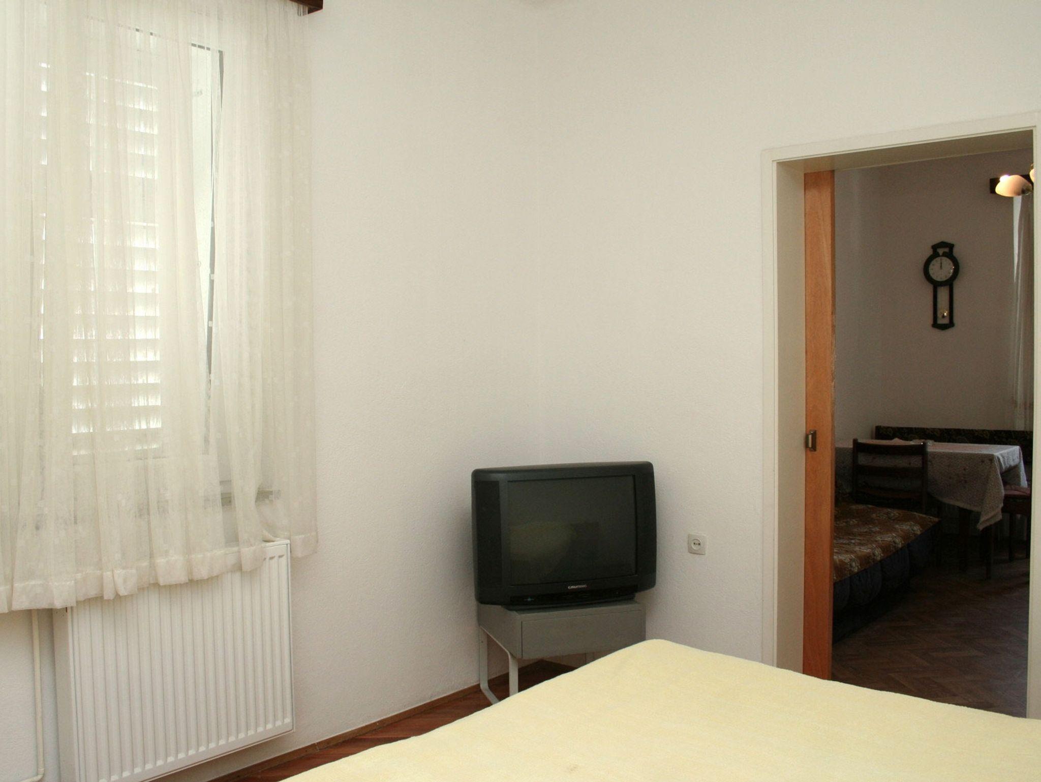 Ferienwohnung bietet Platz für 4 Gäste. Die Betten sind in Schlafzimmern, die es 1 gibt, und in Esszimmer, innerhalb einer Gesamtfläche von 28m2, angeordnet. Die Gäste haben einen eigenen Balkon zur Verfügung, auf der sie in warmen Sommernächten genießen können. Das Apartment bietet Meerblick. Es ist erlaubt, Speisen auf dem Gemeinschafts-Grill vorzubereiten. IM PREIS INBEGRIFFEN: Kurtaxe, Endreinigung, Klimatisierung, Zentralheizung, Parkplatz, Internet, Kinderbett, Föhn, tragbarer Grill. VERBINDLICHE ZUSÄTZLICHE KOSTEN: Aufzahlung für Kurzaufenthalte (prozentualer Zuschlag pro Nächtigungsanzahl: 30% - 1, 20% - 2, 10% - 3). UNVERBINDLICHE ZUSÄTZLICHE KOSTEN: Wäschewaschen (5,00 € Waschen), Boot (50,00 € pro Nacht), Fahrrad (20,00 € täglich (pro Stück)). Die Verfügbarkeit zusätzlicher Dienstleistungen in Ihrem reservierten Termin und die Preise derselben (falls nicht aufgeführt) müssen im Voraus überprüft werden. Zusätzliche Dienstleistungen die in der Zahlungsaufforderung nicht aufgeführt sind werden direkt beim Vermieter bezahlt, angenommen der Gast nutzt auch diese.