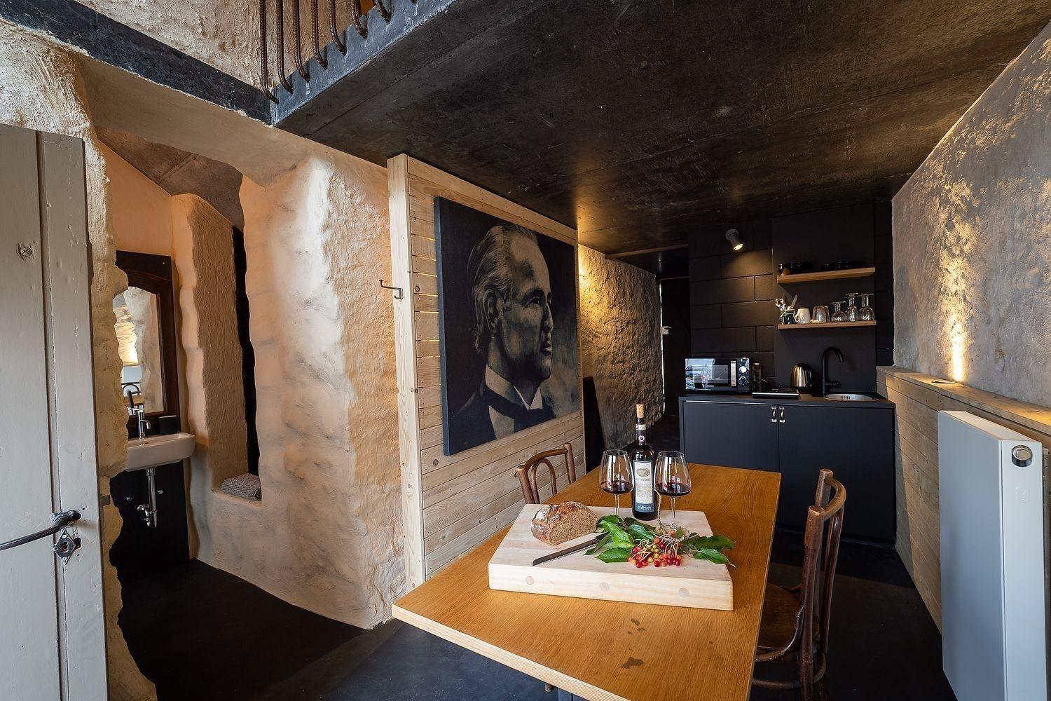 Der Raum 'Op der Gänn' bezieht sich auf die oberen Räume der regionalen Scheunen. Die eklektische Einrichtung entspricht nicht einem traditionellen Hotel: