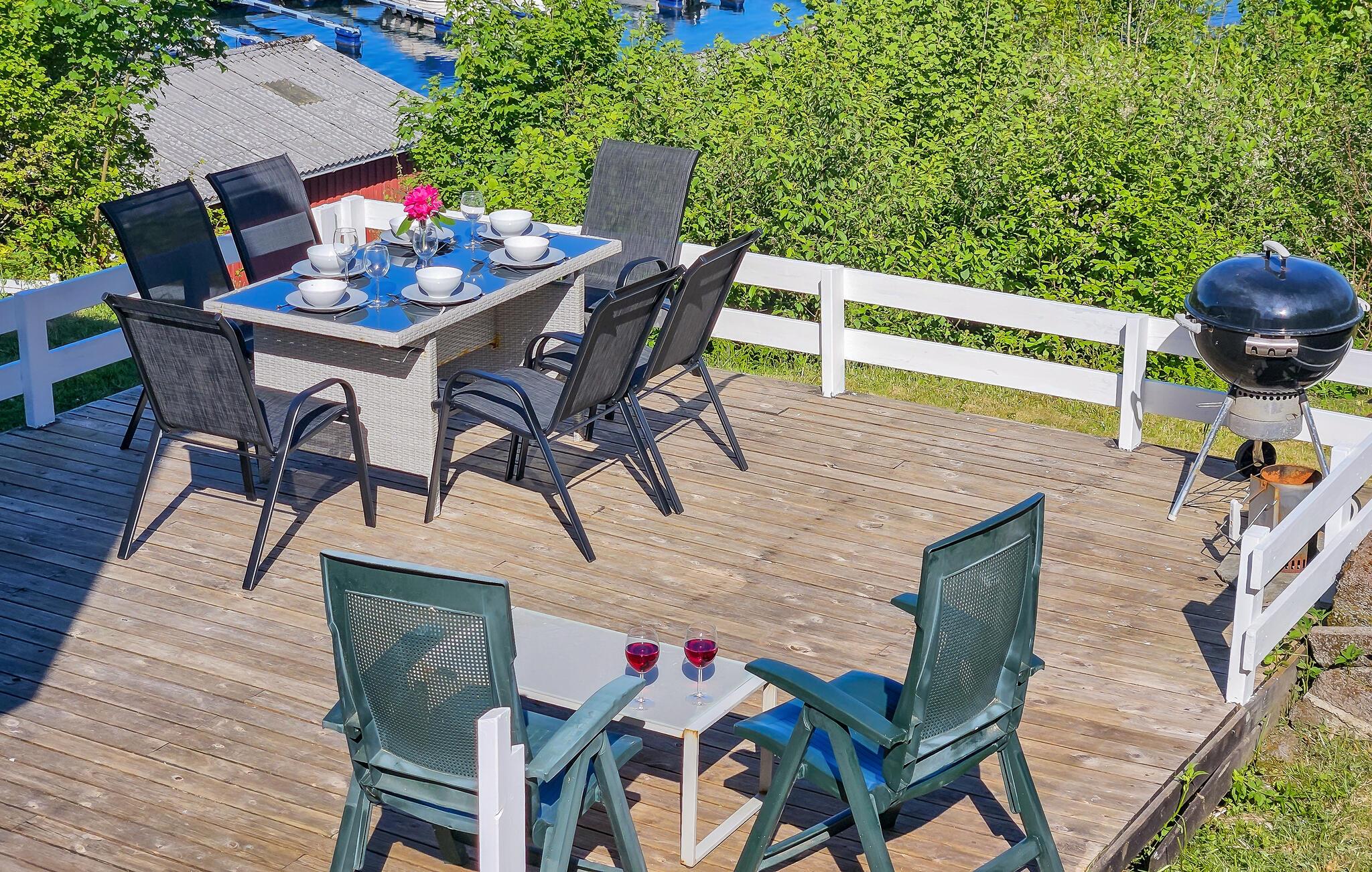 Huset ligger på en stor grund med både have og terrasse, som indbyder til mange skønne timer i solen. Find jer godt til rette med en god bog, mens børnene løber rundt i haven. Om aftenen kan I tænde op i grillen og runde af med saftige bøffer og lægge planer for de kommende dage.