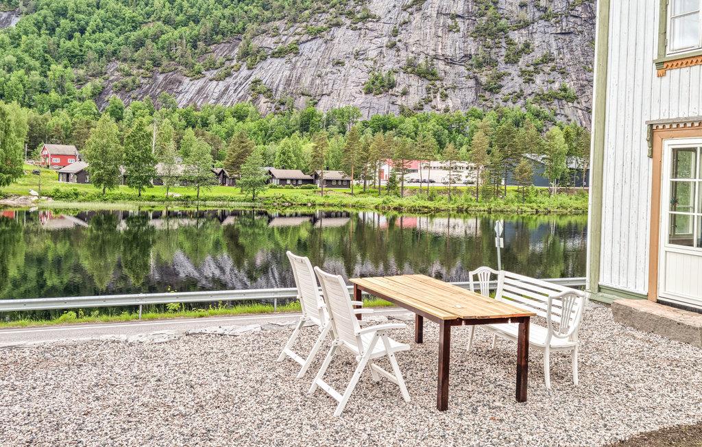 I stueetagen af dette skønne feriehus fra 1800-tallet, lige ved Nidelva-floden, finder I en meget hyggelig ferielejlighed, der byder på en fantastisk udsigt over vandet, fjeldene og den smukke norske natur. Her kan I hygge jer, varme jer ved brændeovnen i stuen og diskutere de kommende dages udflugter, mens aftensmaden trylles frem i det åbne køkken. Lejligheden imponerer med sine rå naturstensvægge, som giver lejligheden en hulelignende atmosfære. Samtidig sikrer den hyggelige indretning og de farverigt malede vægge, at I føler jer rigtig godt tilpas her.