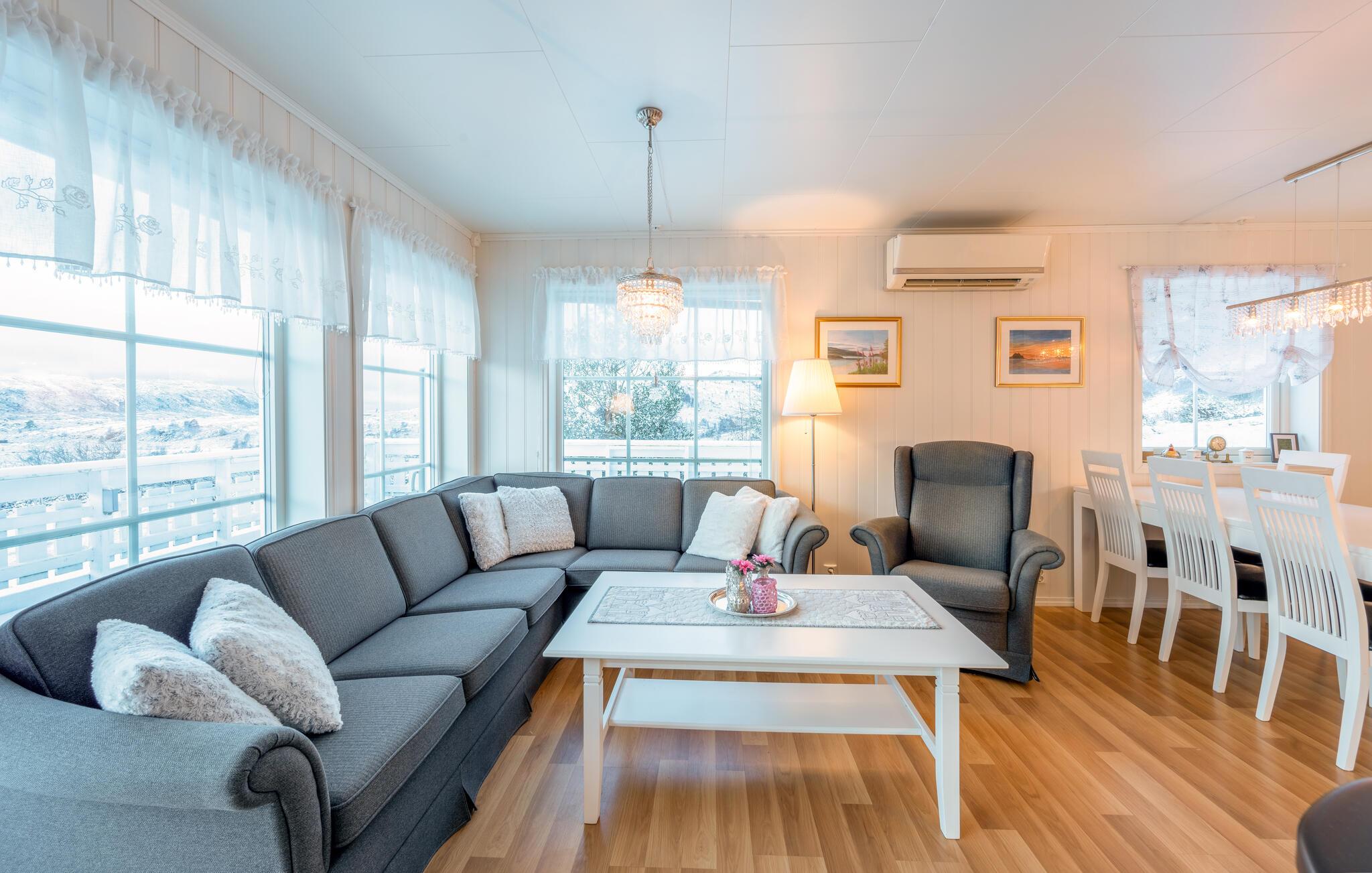 Velkommen til dette flotte feriehus, der ligger i et smukt kystlandskab på øen Sandøyna