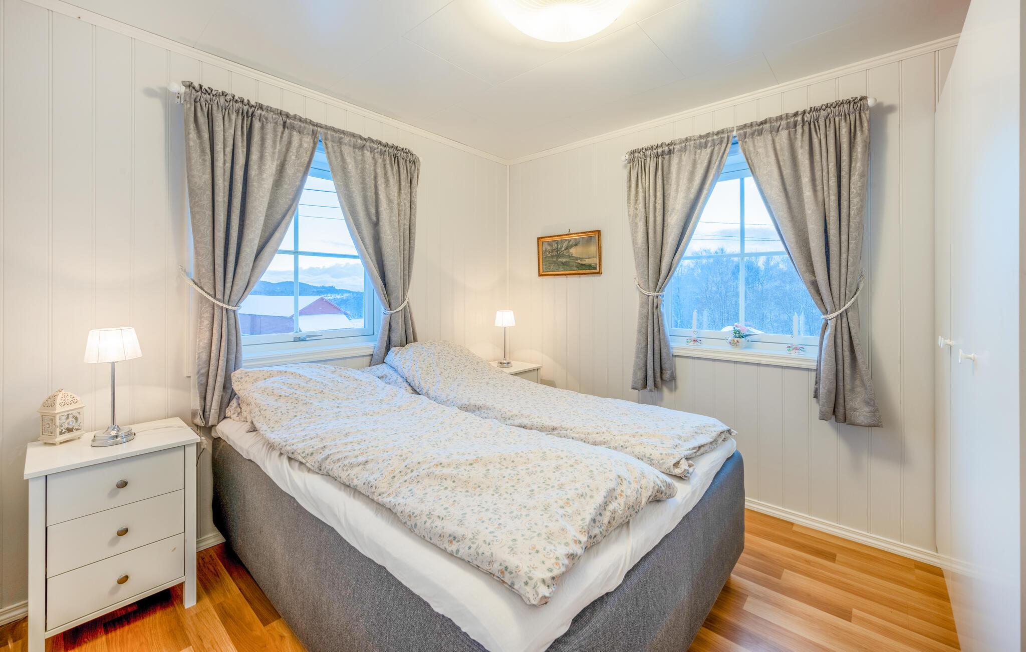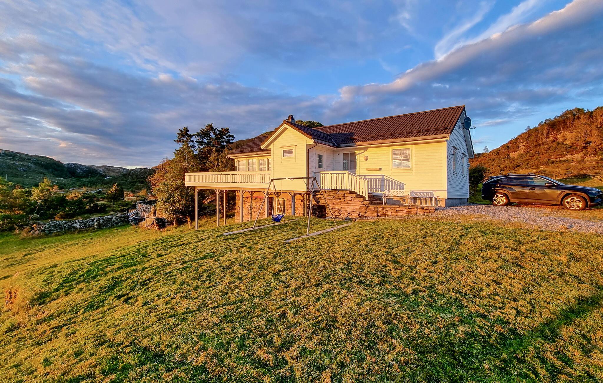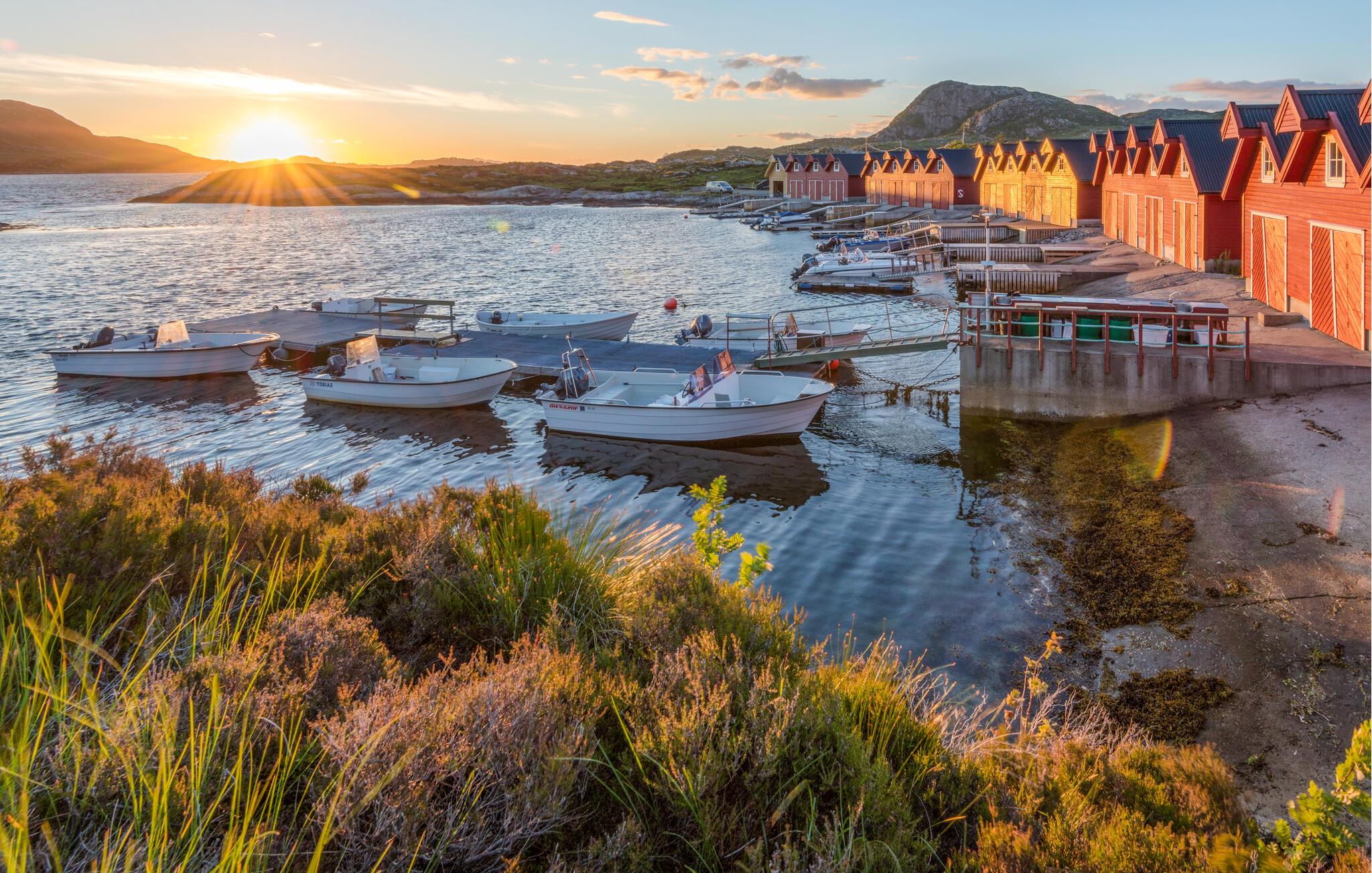 Der er gode bade- og fiskemuligheder i den nærmeste sø, som I sagtens kan nå til fods, og generelt anbefales det at gå på opdagelse i den smukke natur på øen og udnytte de mange gode spots til lystfiskeri. På den nordlige spids af øen ligger den idylliske, gamle handelsby Skjerjehamn ved Sognefjordens udmunding, hvor I kan dykke ned i dens lange historie som et vigtigt centrum for fiskeri, handel og industri.