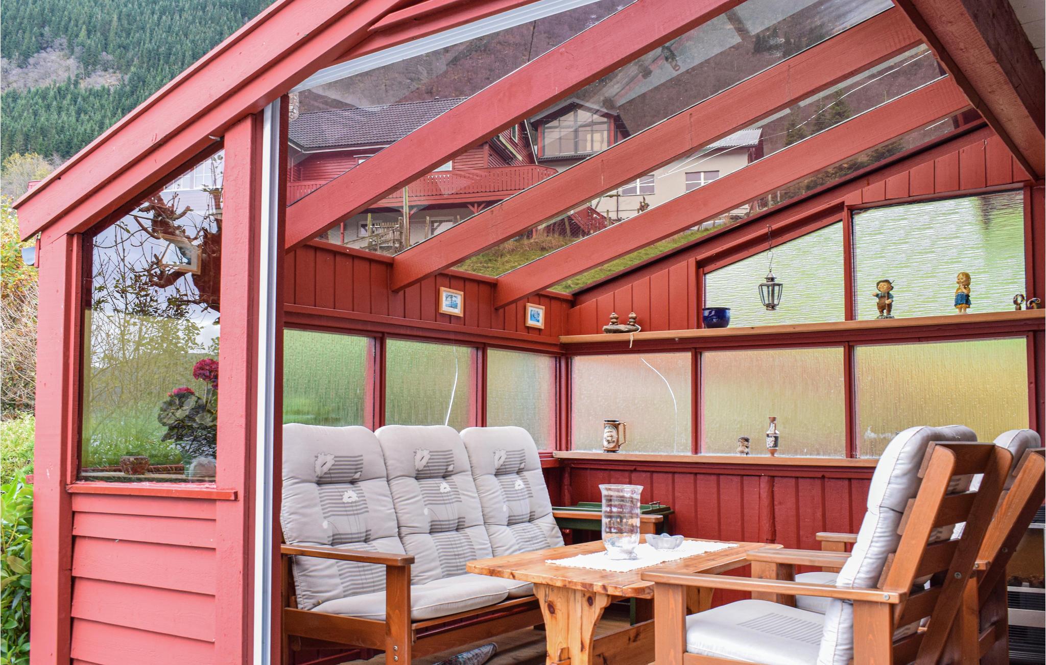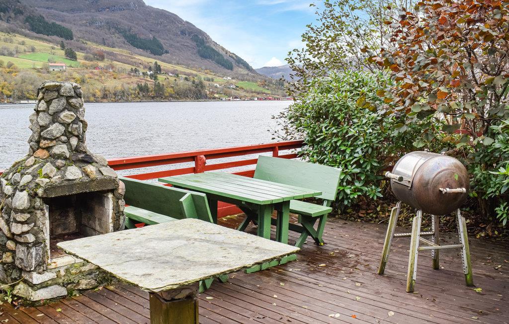 Dette skønne hus ligger lige ved Vindafjorden, så her er boligen i sig selv en del af oplevelsen. Den rummelige udestue ligger i forlængelse af terrassen med grill og siddepladser, hvor I får første parket til at nyde den fantastiske natur ved fjorden. Her kan I tilbringe lange sommeraftener, og hvis vejret svigter, kan I trække jer tilbage til den hyggelige stue med klassisk pejs og bruge jeres tid på at læse, spille brætspil eller fordybe jer i gode samtaler.