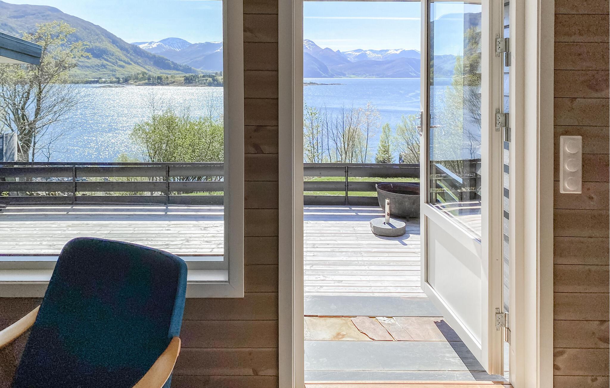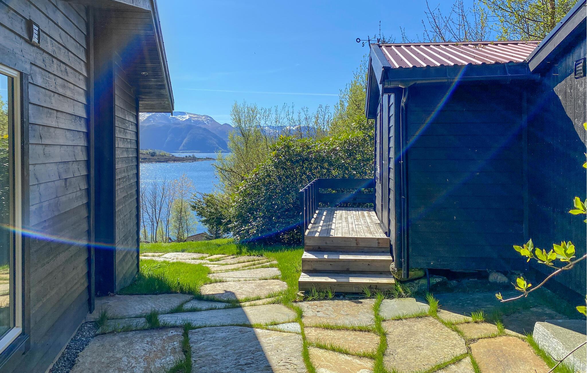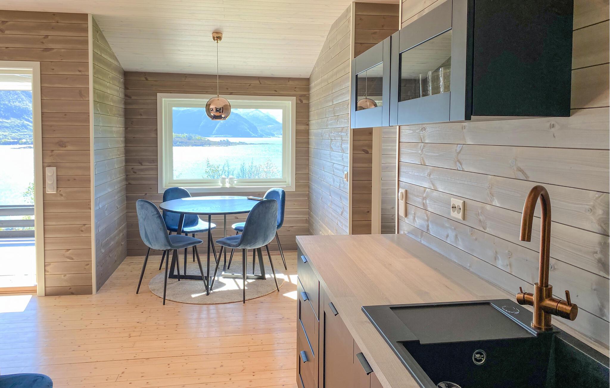 Nyd fjordpanoramaet i dette komfortable feriehus med sauna.