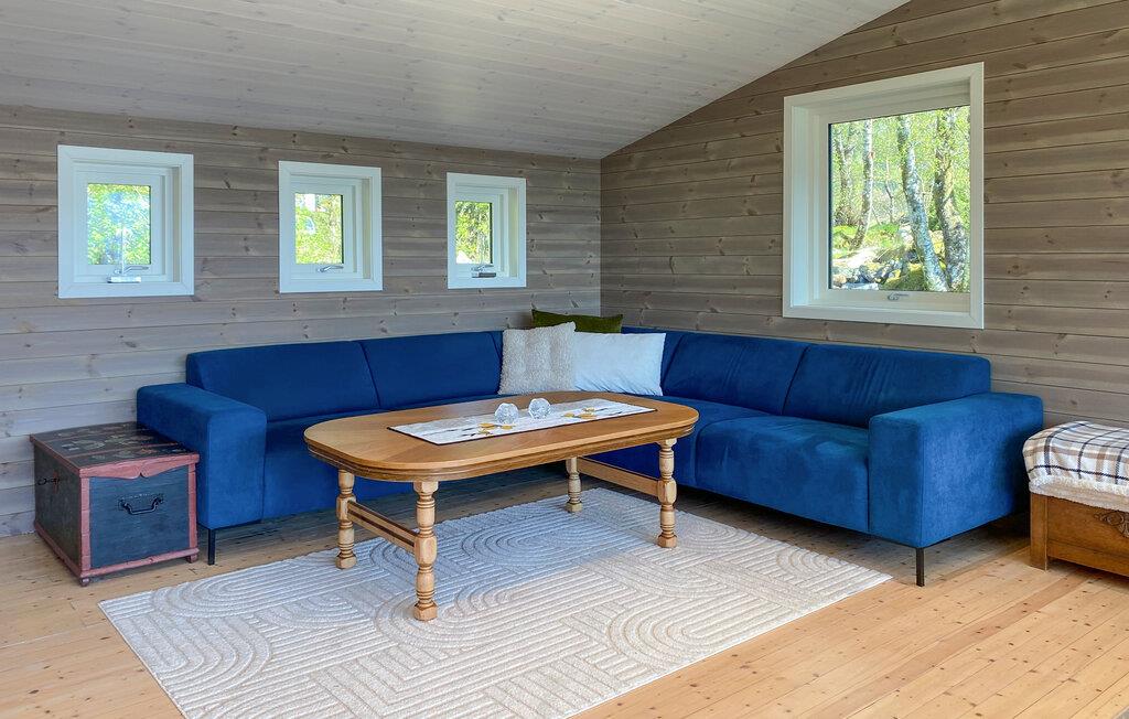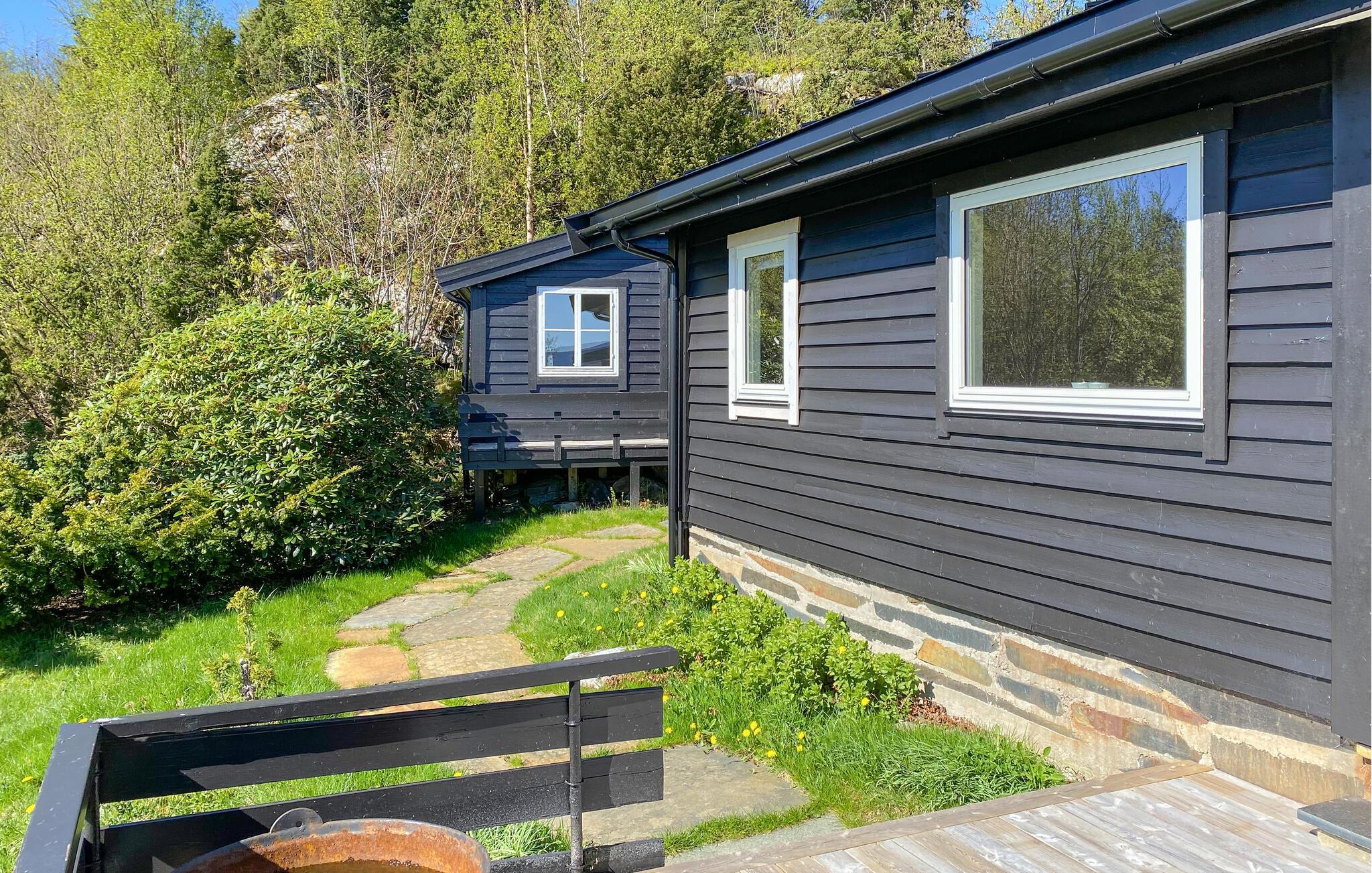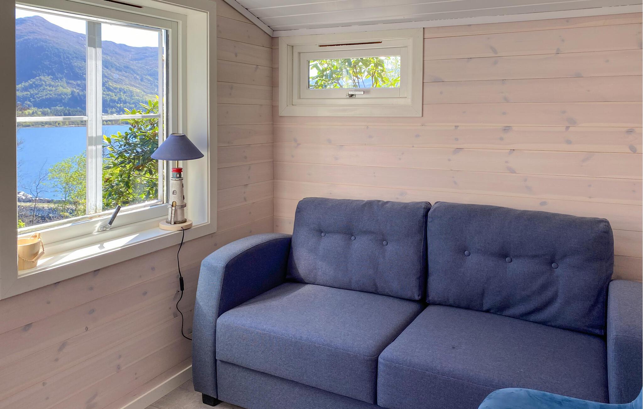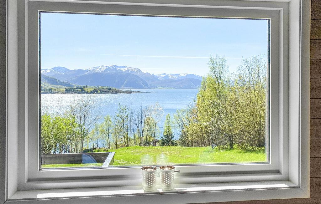 Nyd fjordpanoramaet i dette komfortable feriehus med sauna.