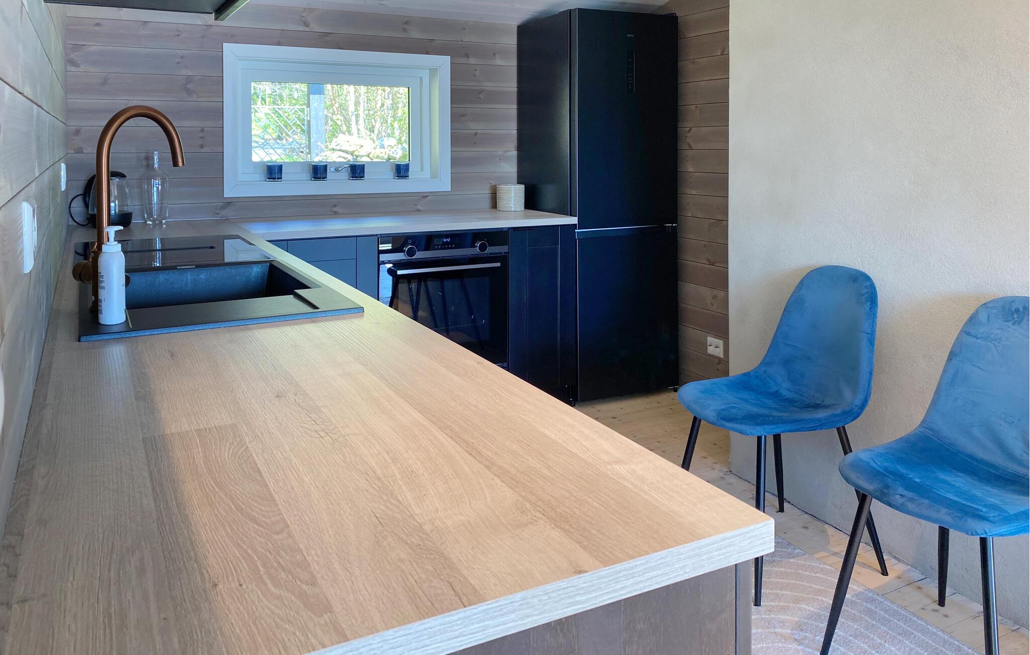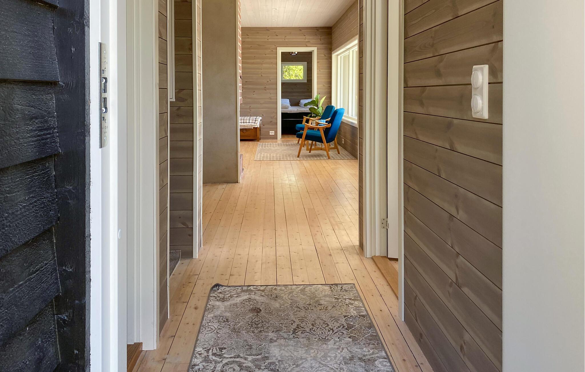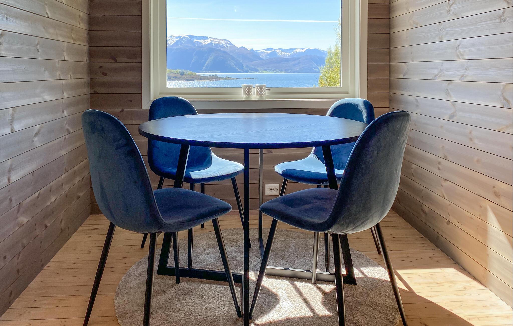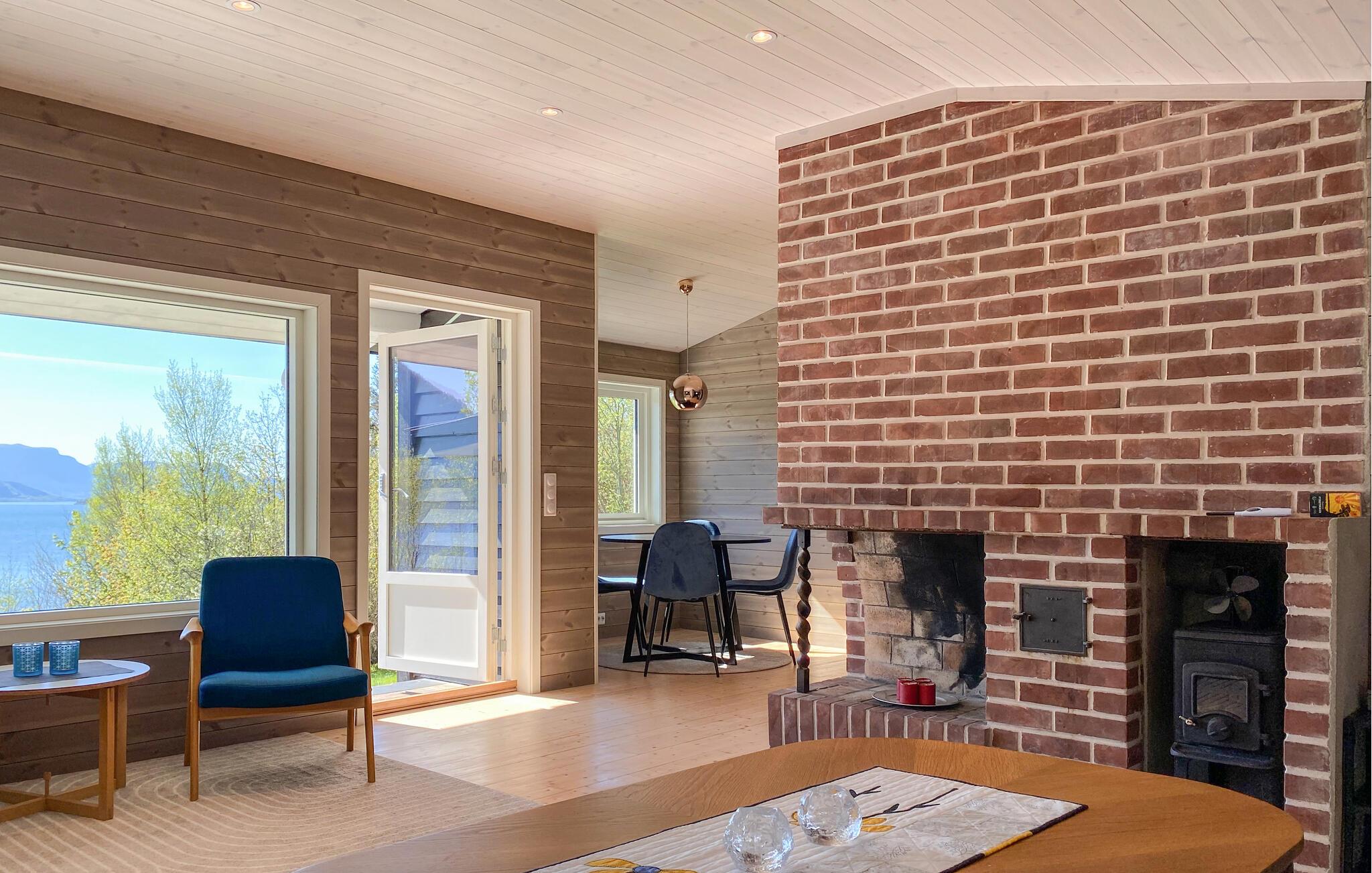 Med en fantastisk udsigt over fjorden byder huset jer velkommen på en fantastisk beliggenhed ved fjorden. Huset er moderne og indbydende, hvor I kan gøre jer komfortable med familien efter dagens aktviteter, slappe af i saunaen og skabe en særlig hyggelig atmosfære med ild i pejsen. Fra stuen er der en smuk udsigt over fjorden.