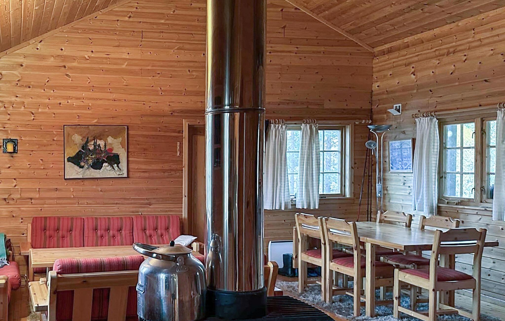 Ægte komfort og en rolig atmosfære, omgivet af uspoleret natur, venter jer i dette charmerende træhus ved søen. Nyd hyggelige måltider i en varm, rustik atmosfære, læn jer tilbage med en god bog ved den norske pejs efter en lang dag i den friske luft eller tilbring kvalitetstid med familien under en spilleaften i den indbydende stue.