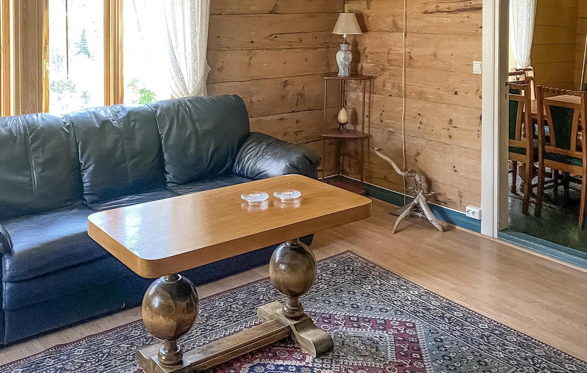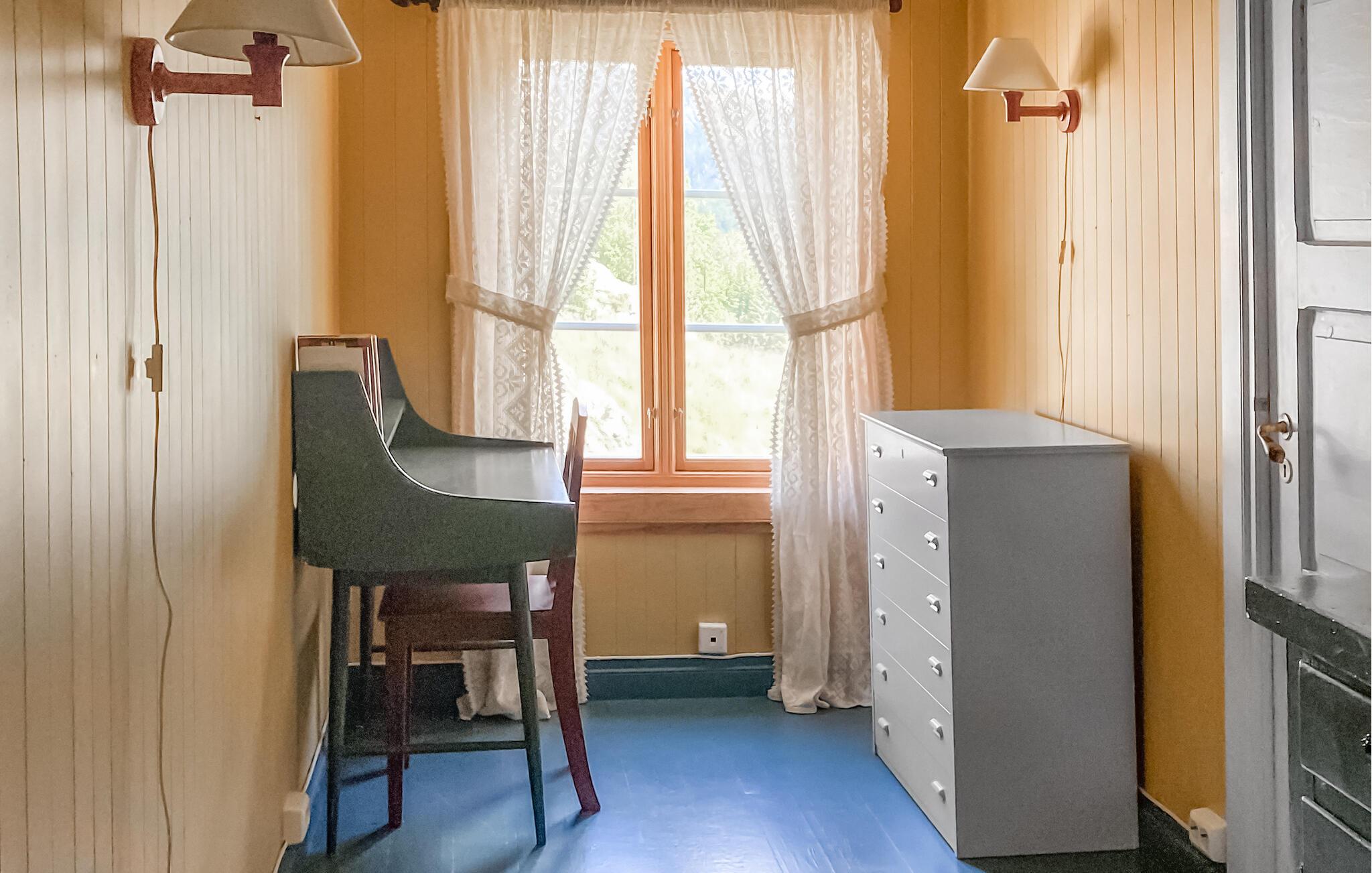 Huset ligger på en høj i Øvre Sirdal og tilbyder jer en fantastisk udsigt over dalen og floden. Tilbring afslappende timer på det flade udendørsområde omkring huset og lad jer fortrylle af flodens sagte brusen og det vidtstrakte landskab. Indenfor kan I glæde jer til en hyggelig og rustik indretning. Gør det komfortabelt i stuen på sofaen og nyd den behagelige varme fra brændeovnen. De massive trævægge giver rummet en unik og behagelig atmosfære, der indbyder til at blive hængende. Ved det smukke spisebord kan I nyde jeres måltider sammen og starte dagen i ro og mag.