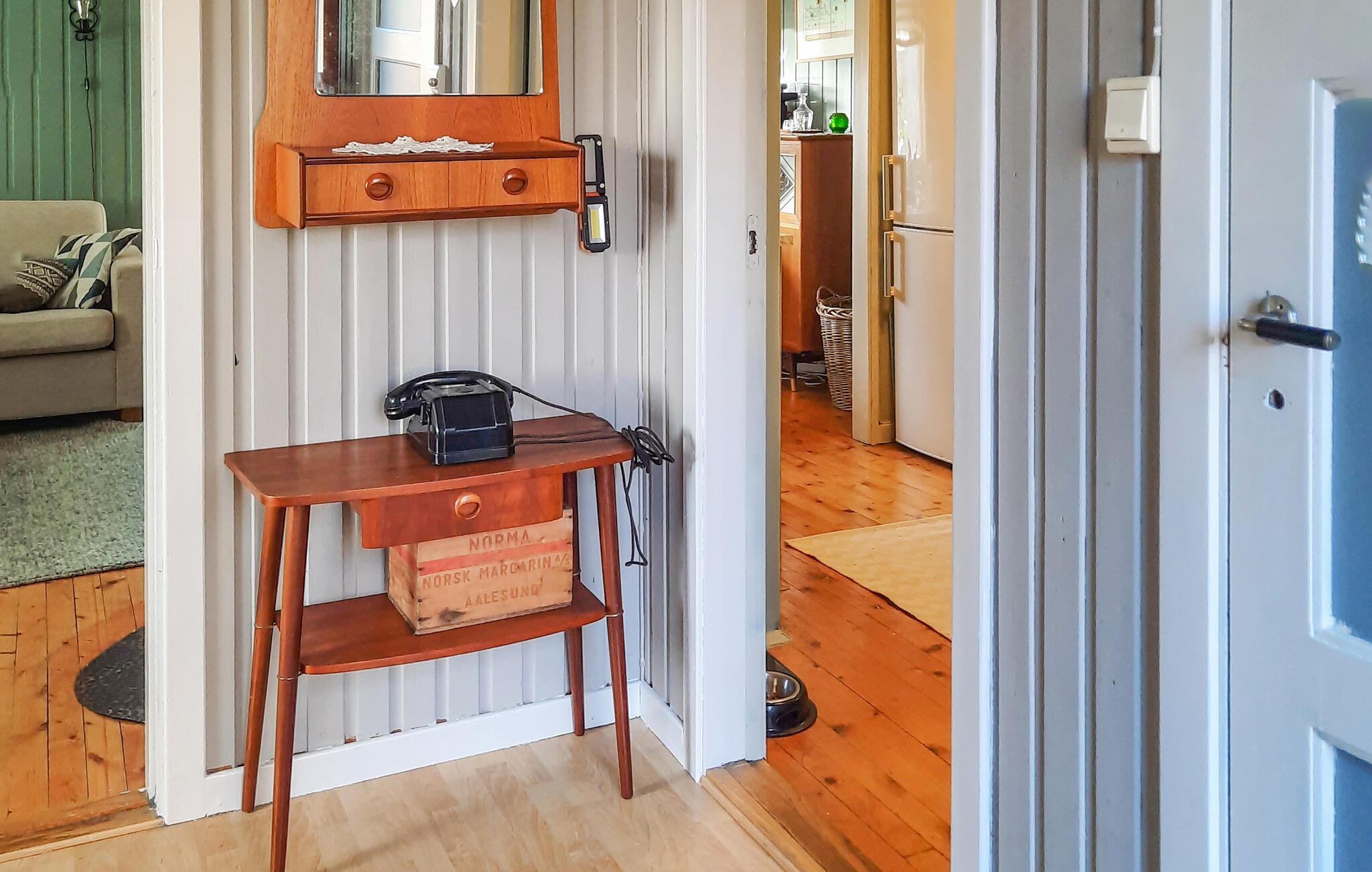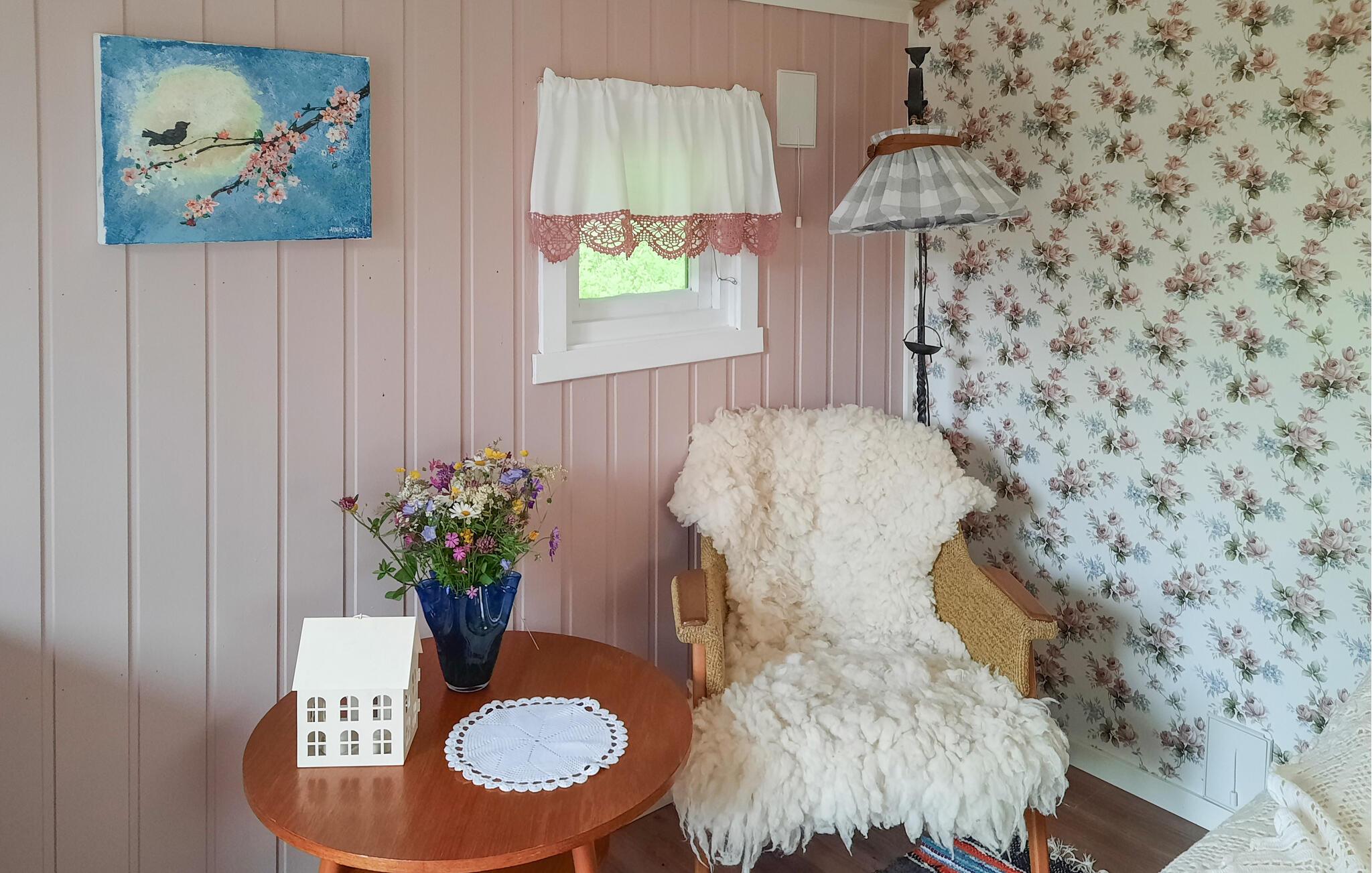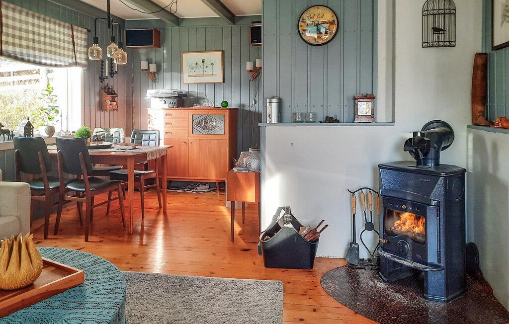 Kom ind og lad jer fortrylle af den lyse, hyggelige atmosfære i dette traditionelle træhus. Slap af i den kærligt møblerede stue med komfortable møbler og harmoniske detaljer. Nyd den knitrende brændeovns hyggelige varme med en god bog eller lad blikket vandre gennem de store vinduespartier, der bringer den betagende natur ind i huset.